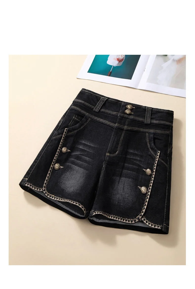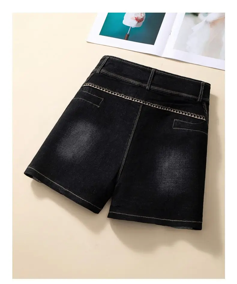 Stretch Denim Shorts Women's New Summer Thin Korean High Waist Straight Tube A-line Hot Pants Black Blue Casual Female Shorts