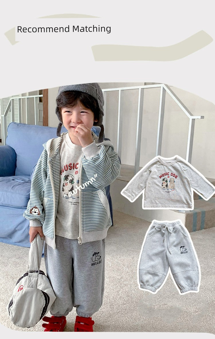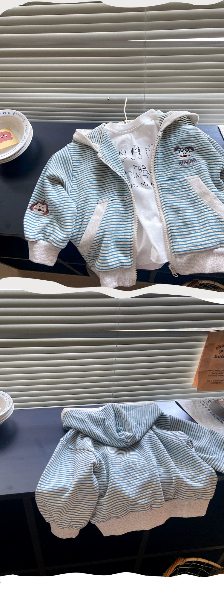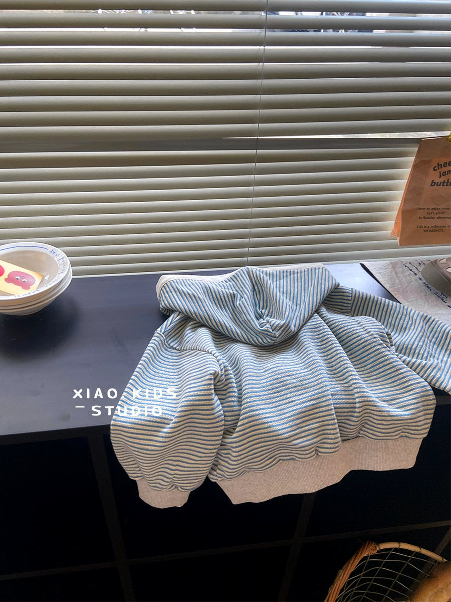 Stripes Knitting Hooded Spring and Autumn Pure Cotton Zipper Outwear