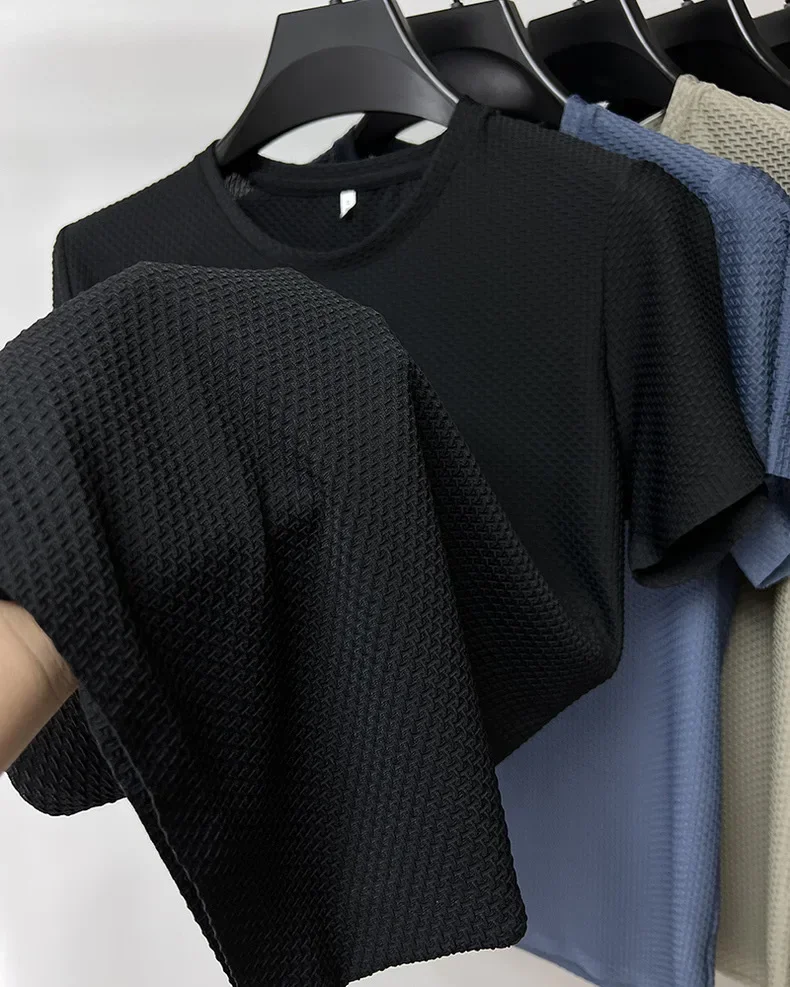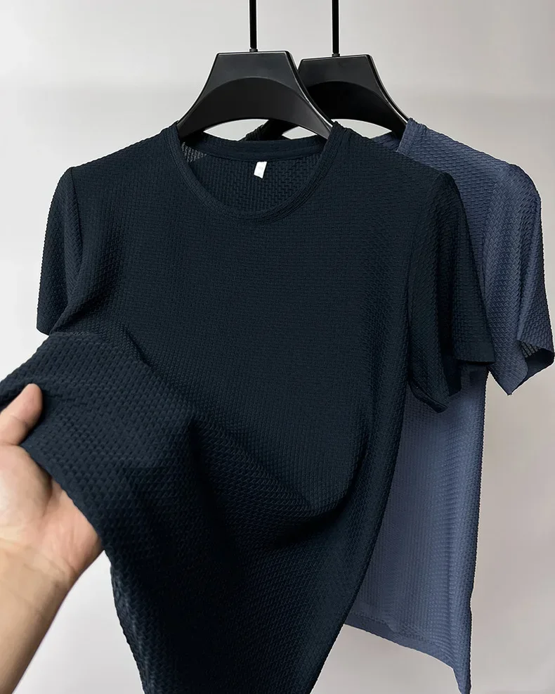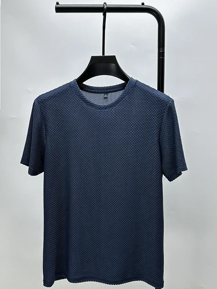 Summer Ice Silk High-End Solid Color High Quality Short Sleeve T Shirts Men's Breathable Fashion T-Shirt Male Brand Clothes 4XL