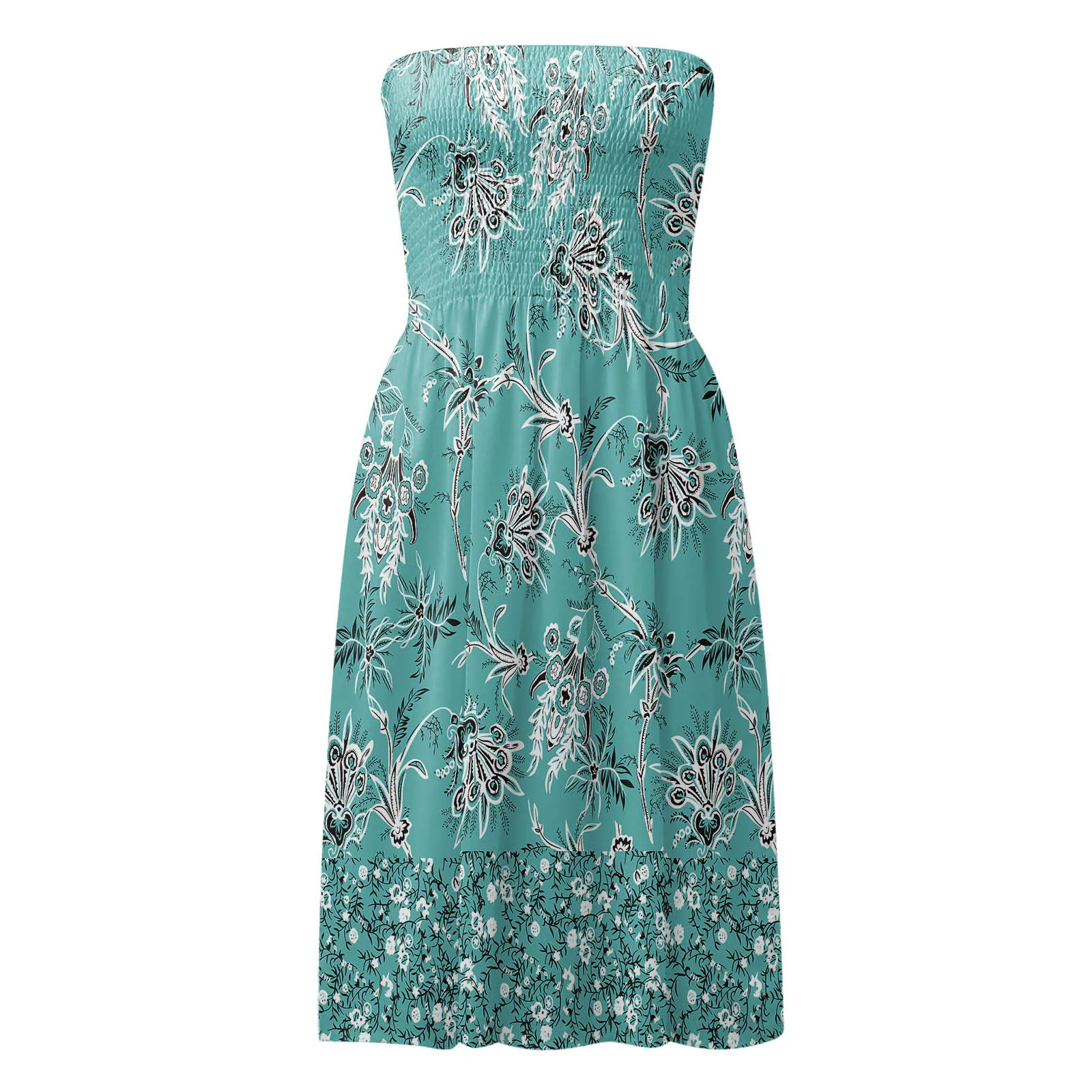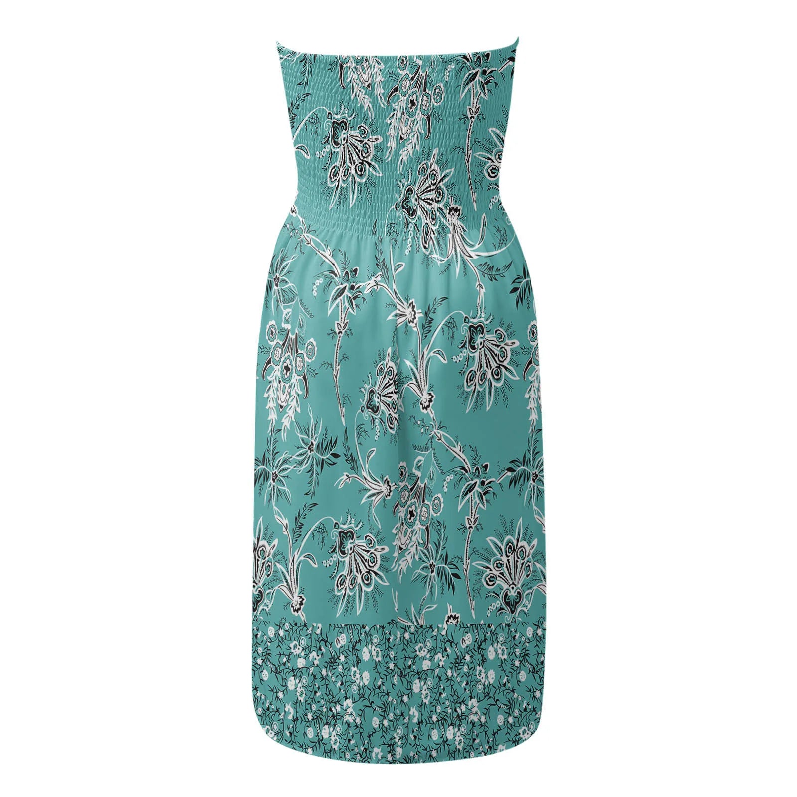 Women Summer Strapless Chest Wrap Floral Print Bohemian Casual Beach Dress