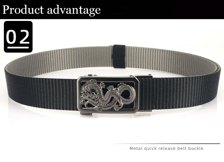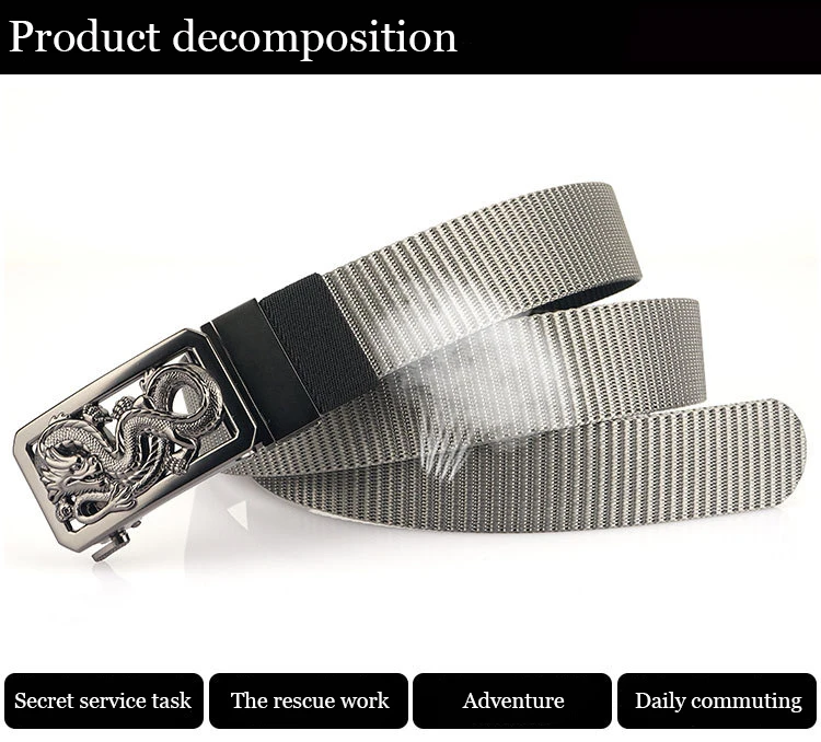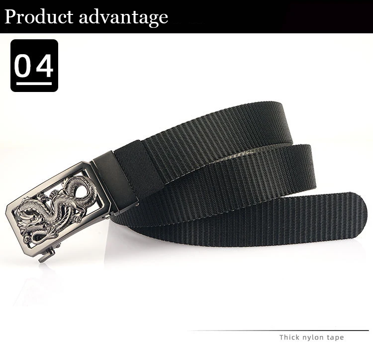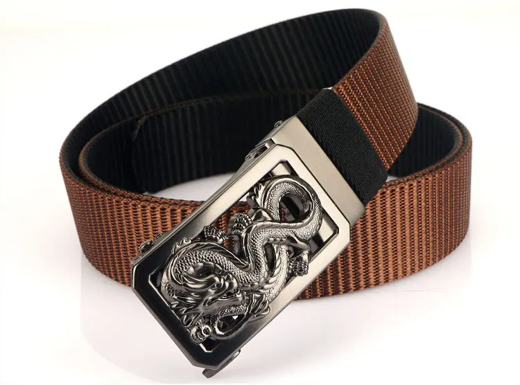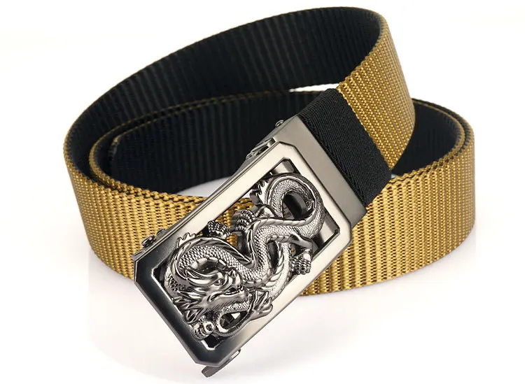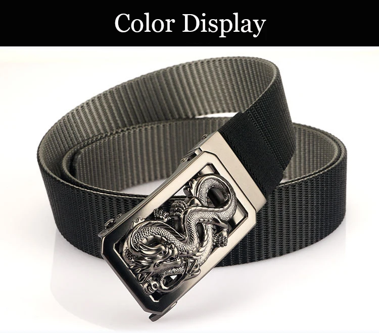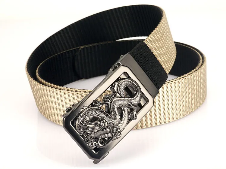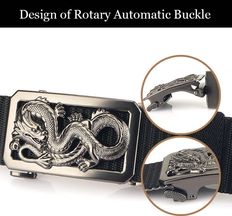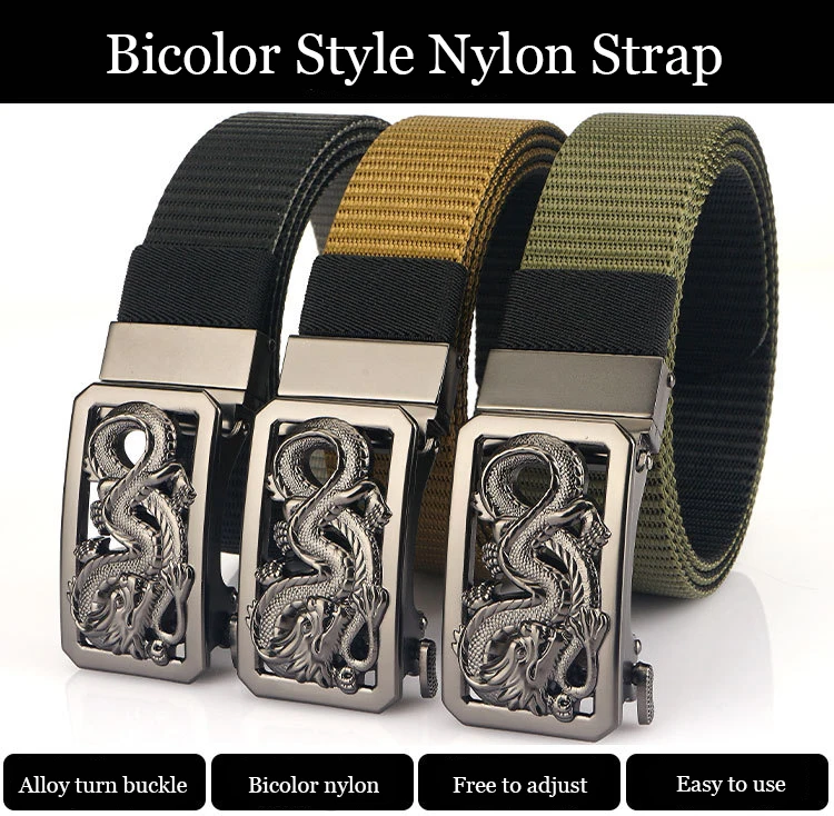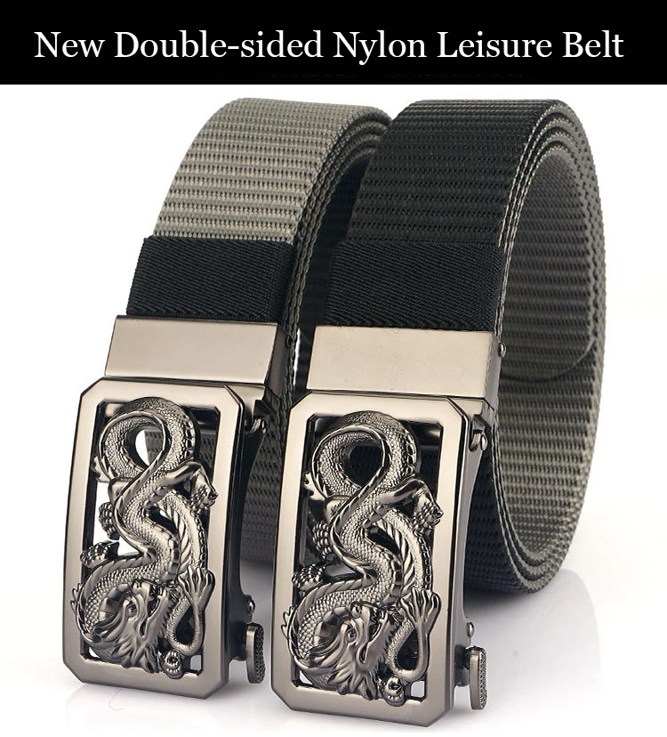 SupSindy New Man Double-sided Nylon Belt Dragon Rotate Metal Automatic Buckle Canvas Belts for Men Jeans Waistband Bicolor Strap