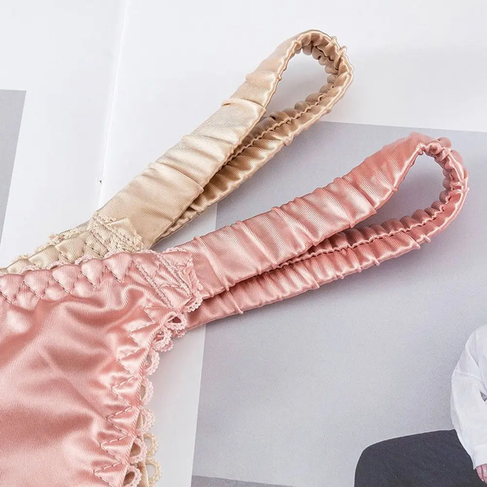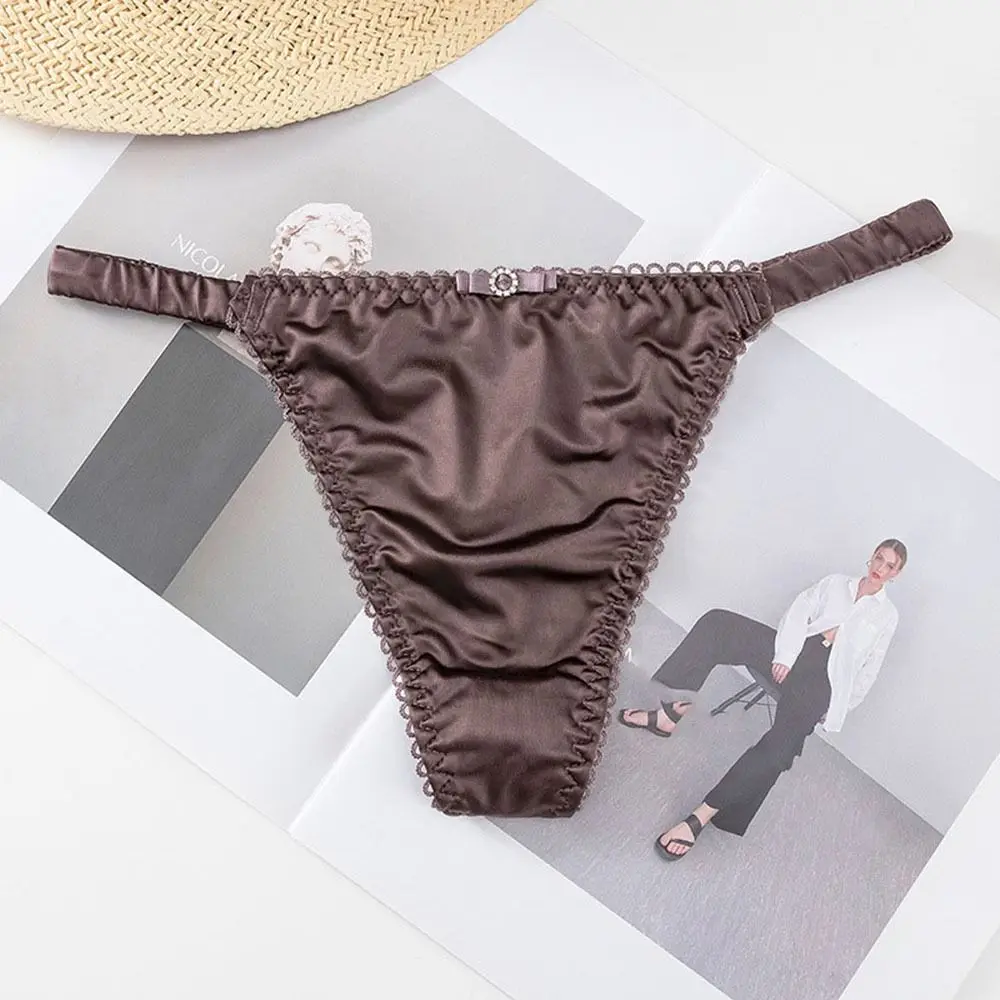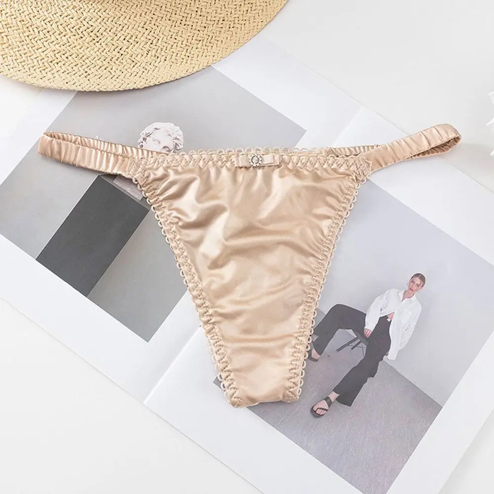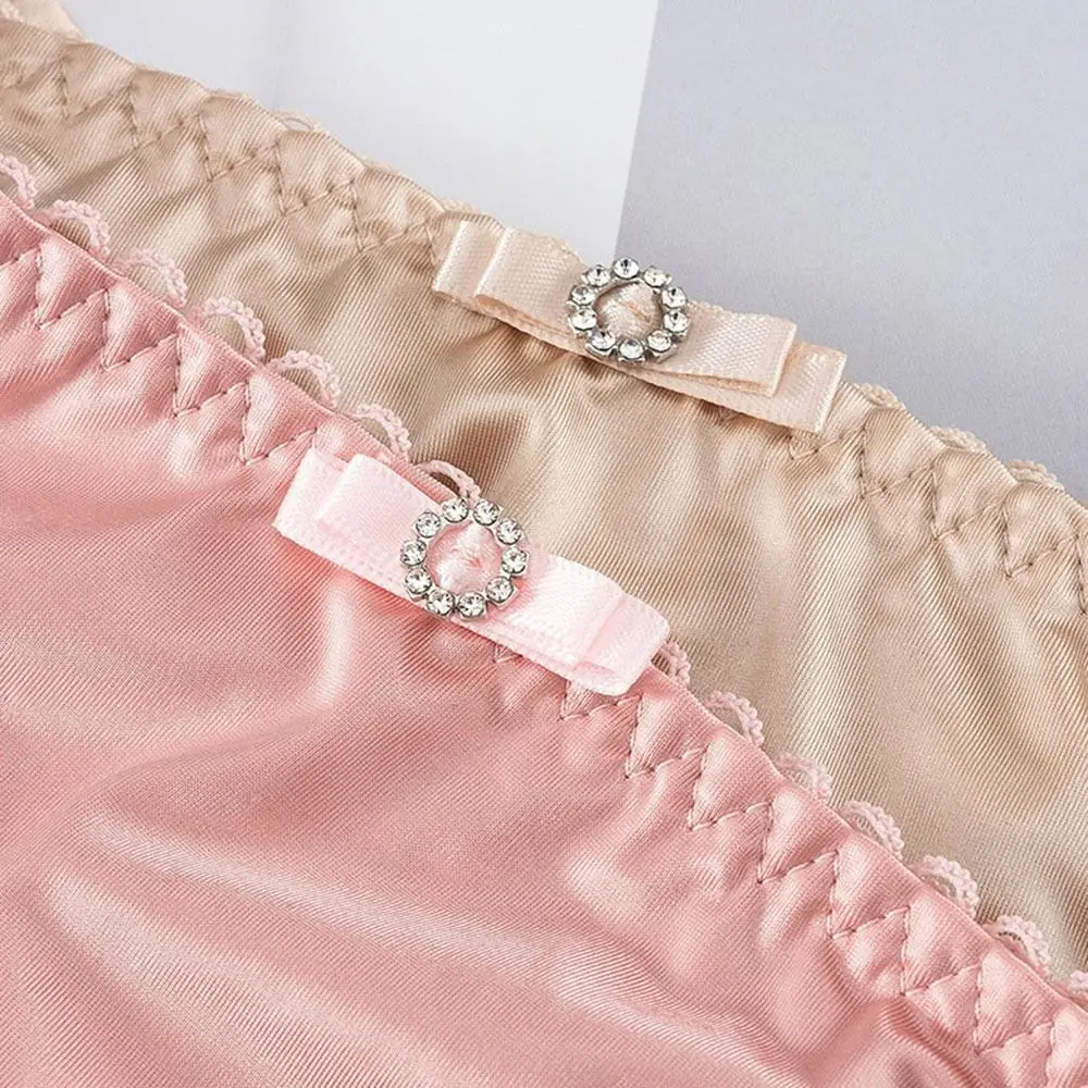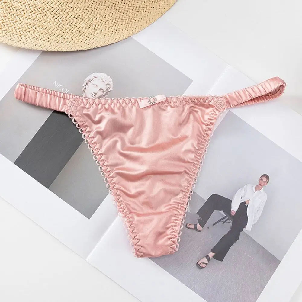 Sweet Thin Belt Bow Underwear For Women Girl Sport Panties Thong Low Waist Seamless Soft Satin Briefs Female Lingerie