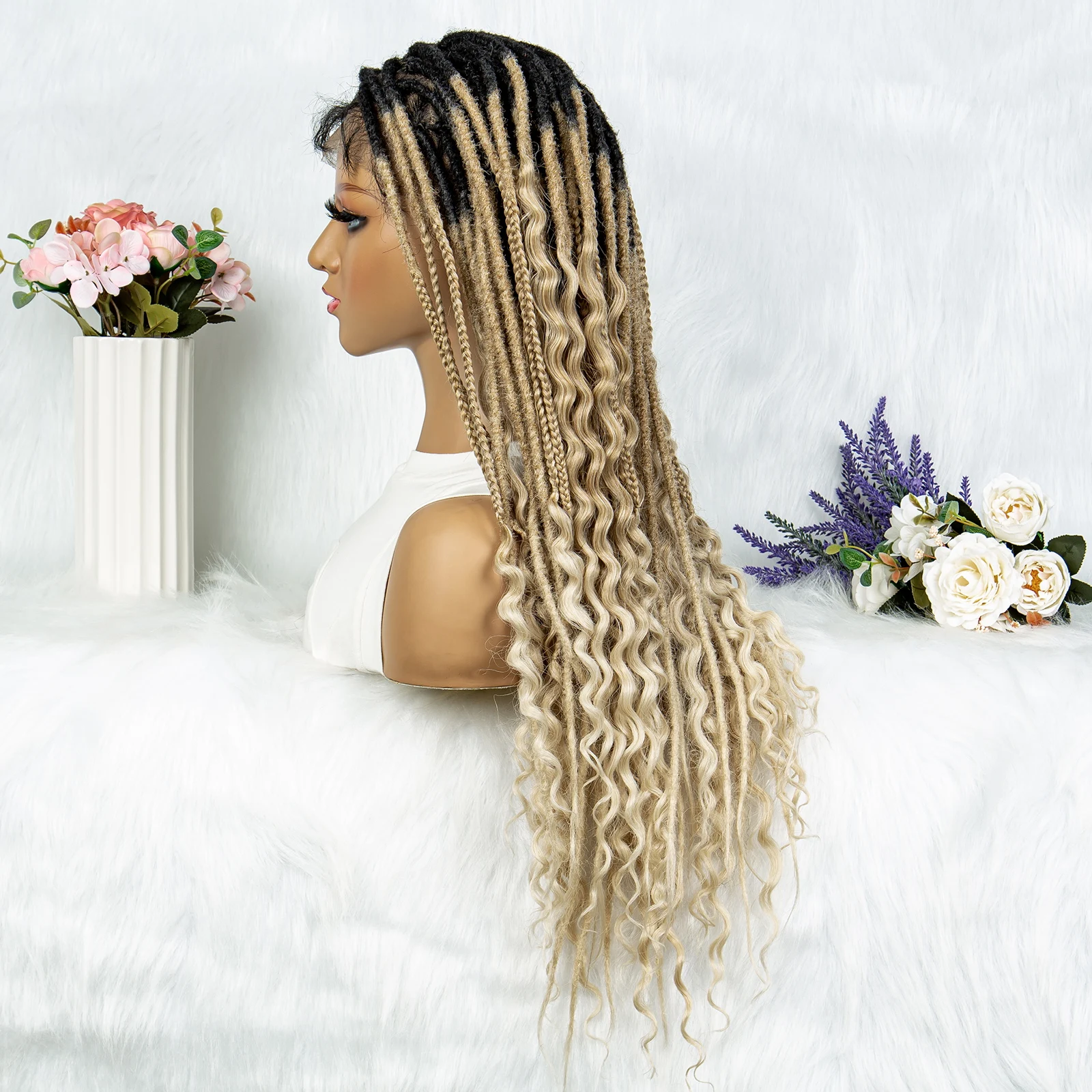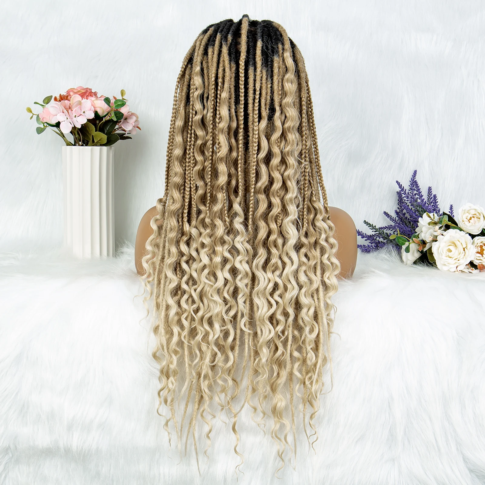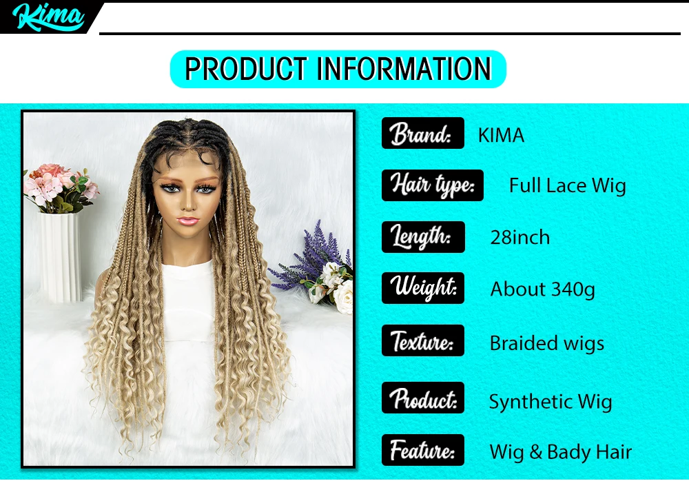 Synthetic Full Lace Wig Braided Wig 28 inch Curly Synthetic Wig Knotless Box Braids Wigs With Baby Hair for Black Women