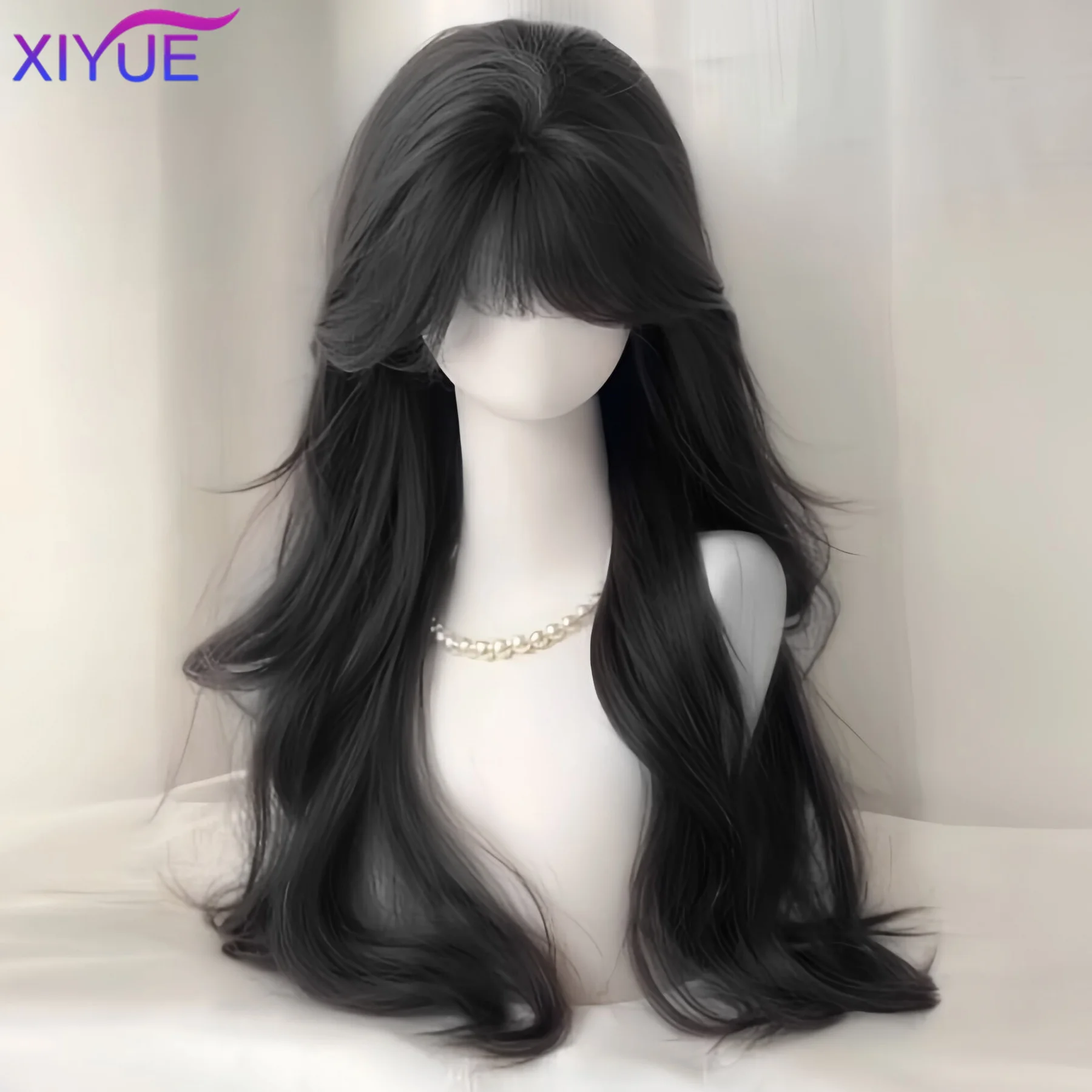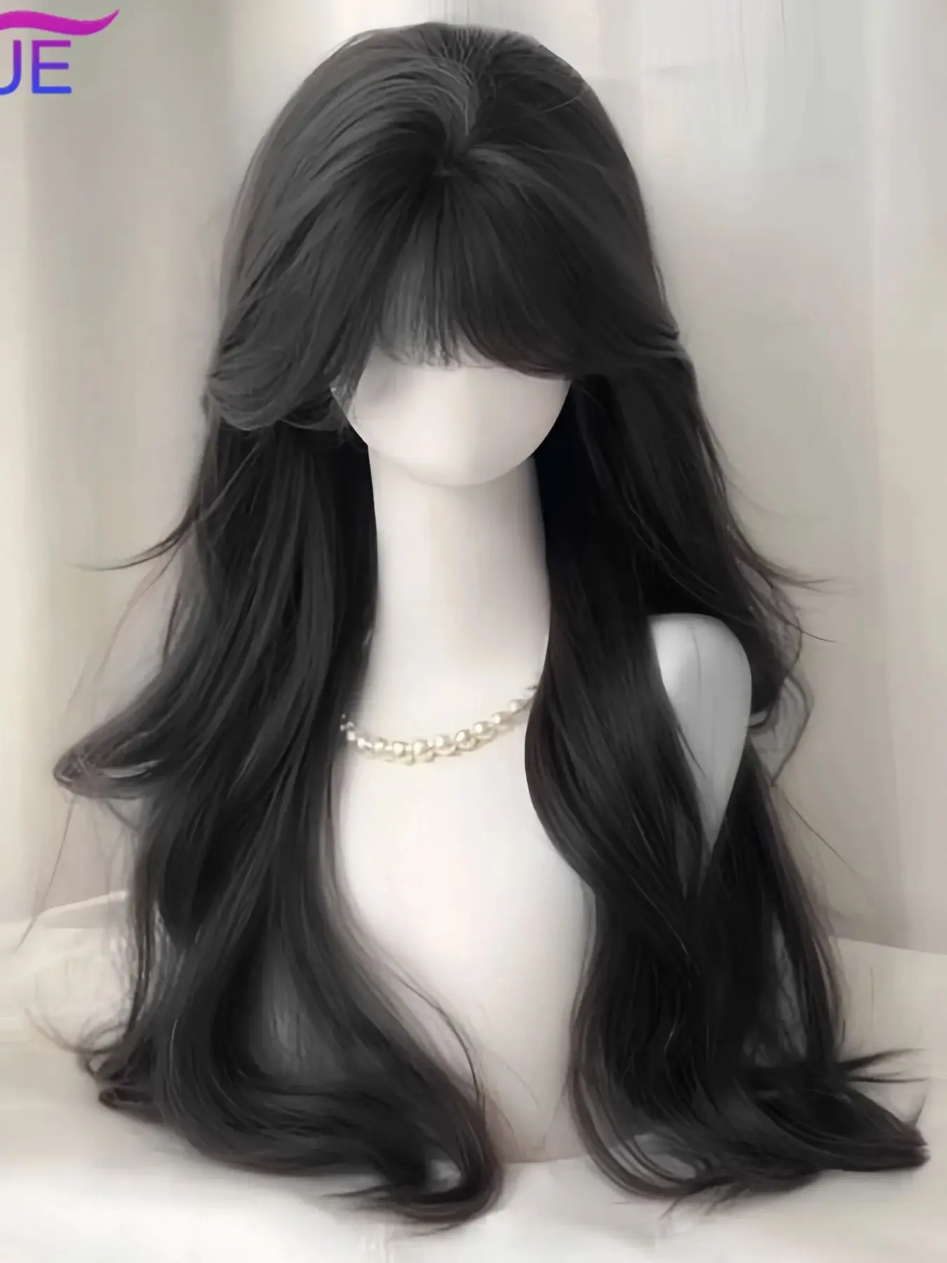 Synthetic Popular Brown Ash Long Deep Wave Hair Lolita Wigs With Bangs Synthetic Wig For Women Fashion Thick Curls Wigs Girl