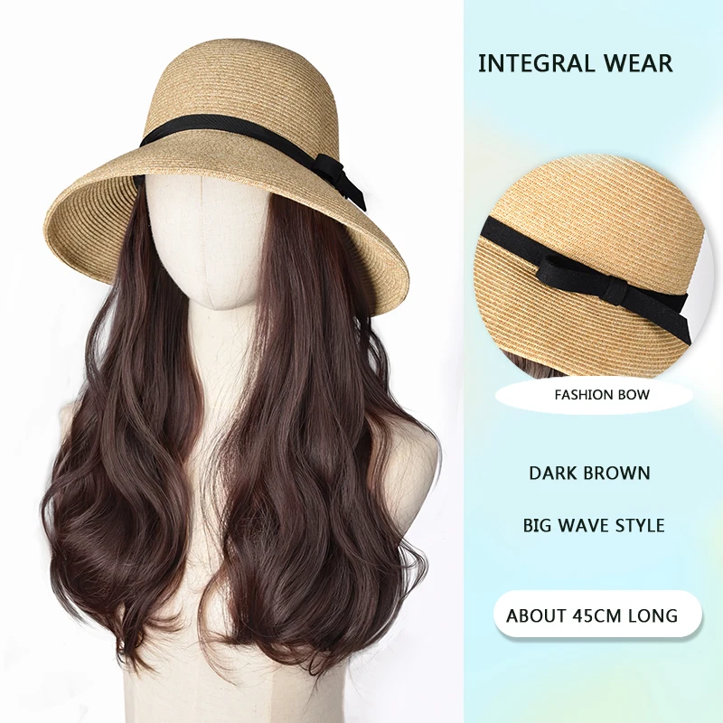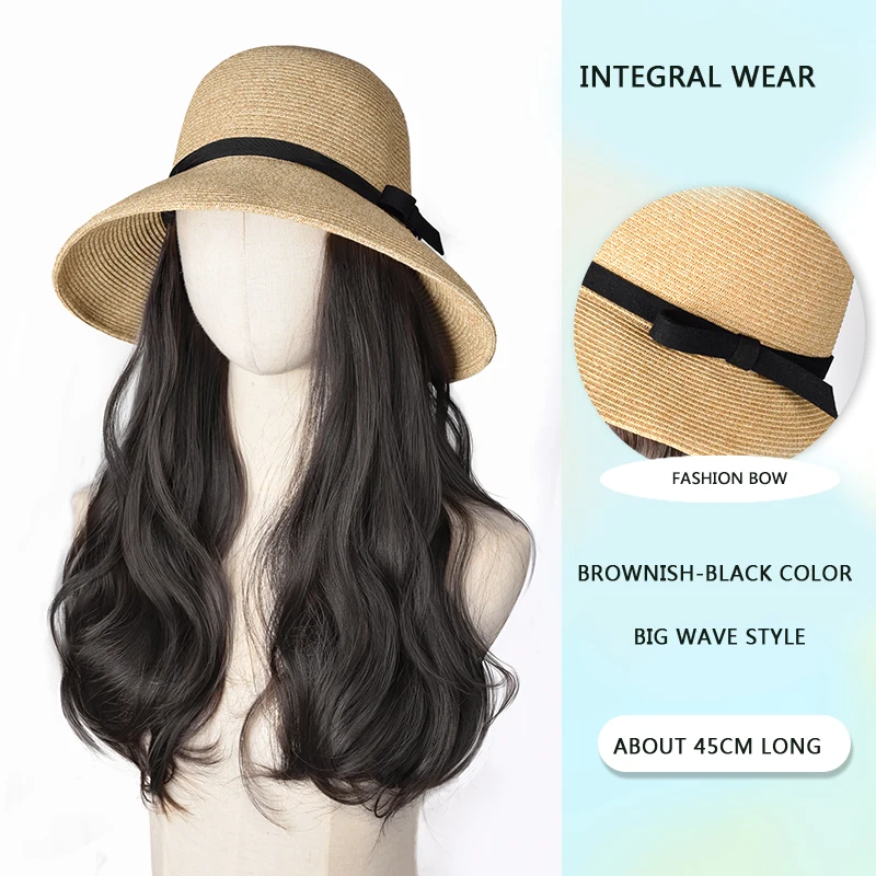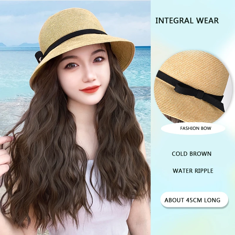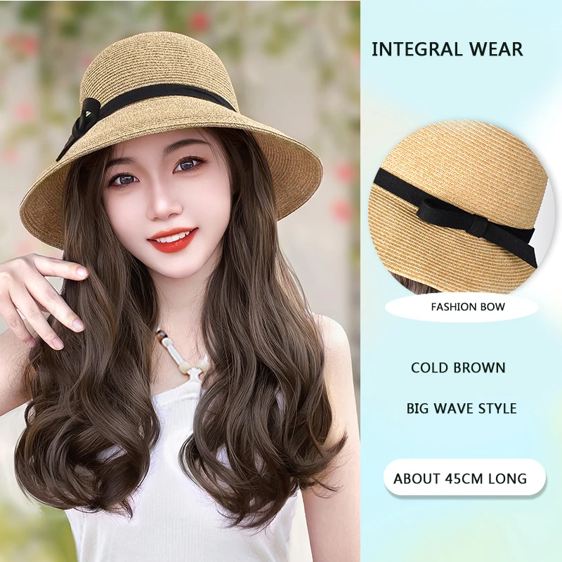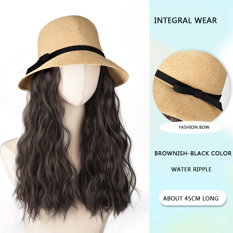 Synthetic Wig Hat One Female Summer New Braided Fisherman's Hat Ripple Full Head Fashion Sunshade Lafite Hat