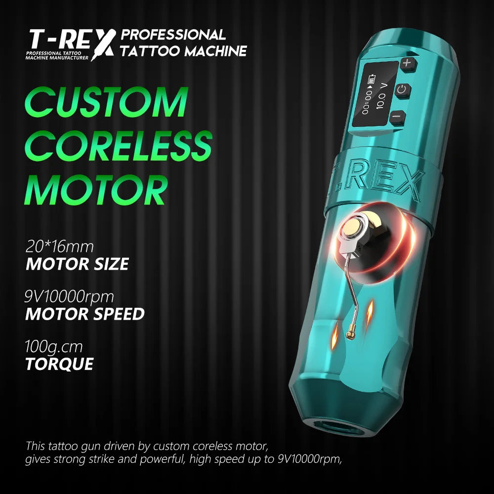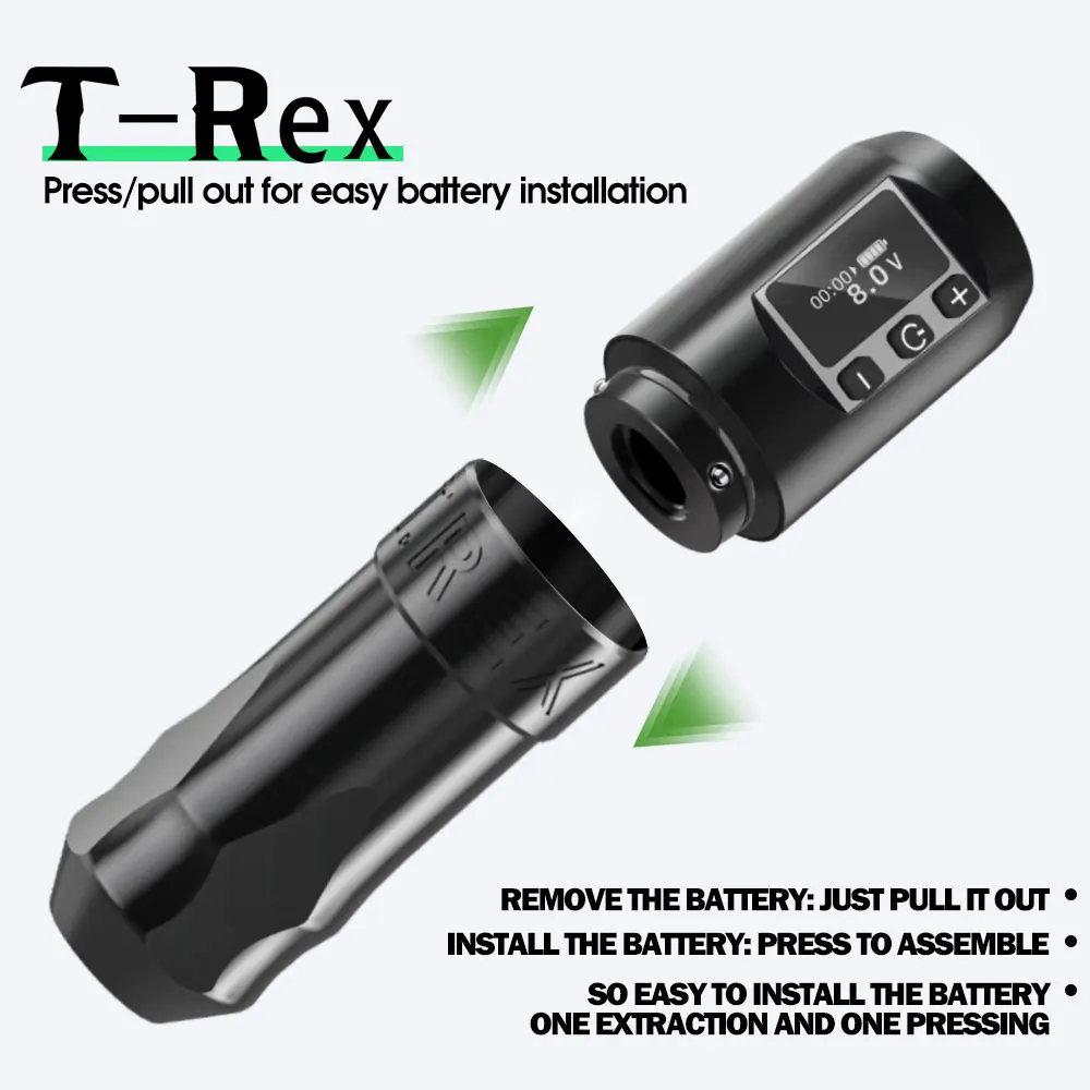 T-Rex Wireless Tattoo Machine Rotaty Battery Pen With Portable Power Pack 2400mAh LCD Digital Display For Body Art Makeup