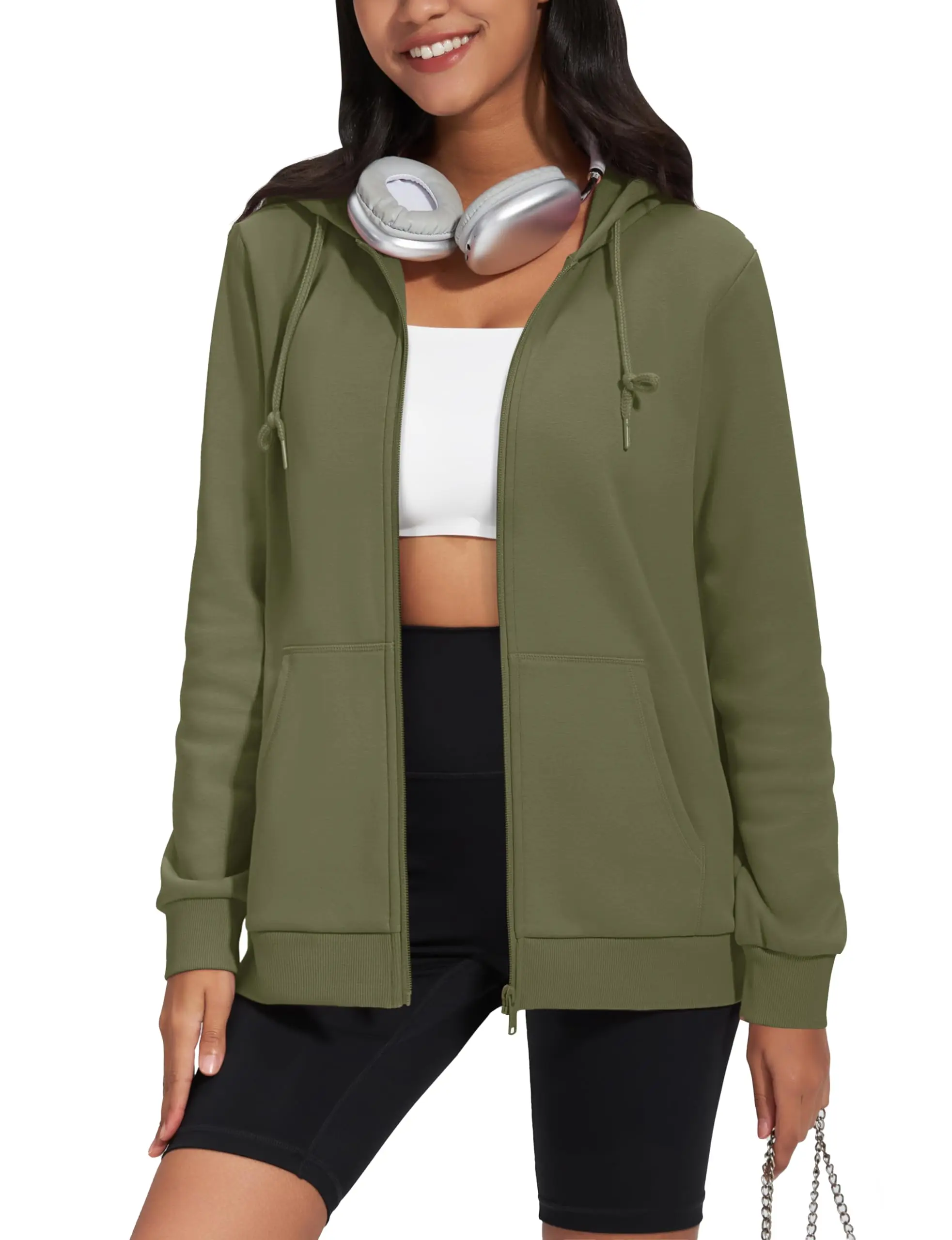 TACVASEN Fleece Lining Jogging Sweatshirts Womens Long Sleeve Hoodies Full Zip Up Jacket Workout Running Sportswear Casual Coats