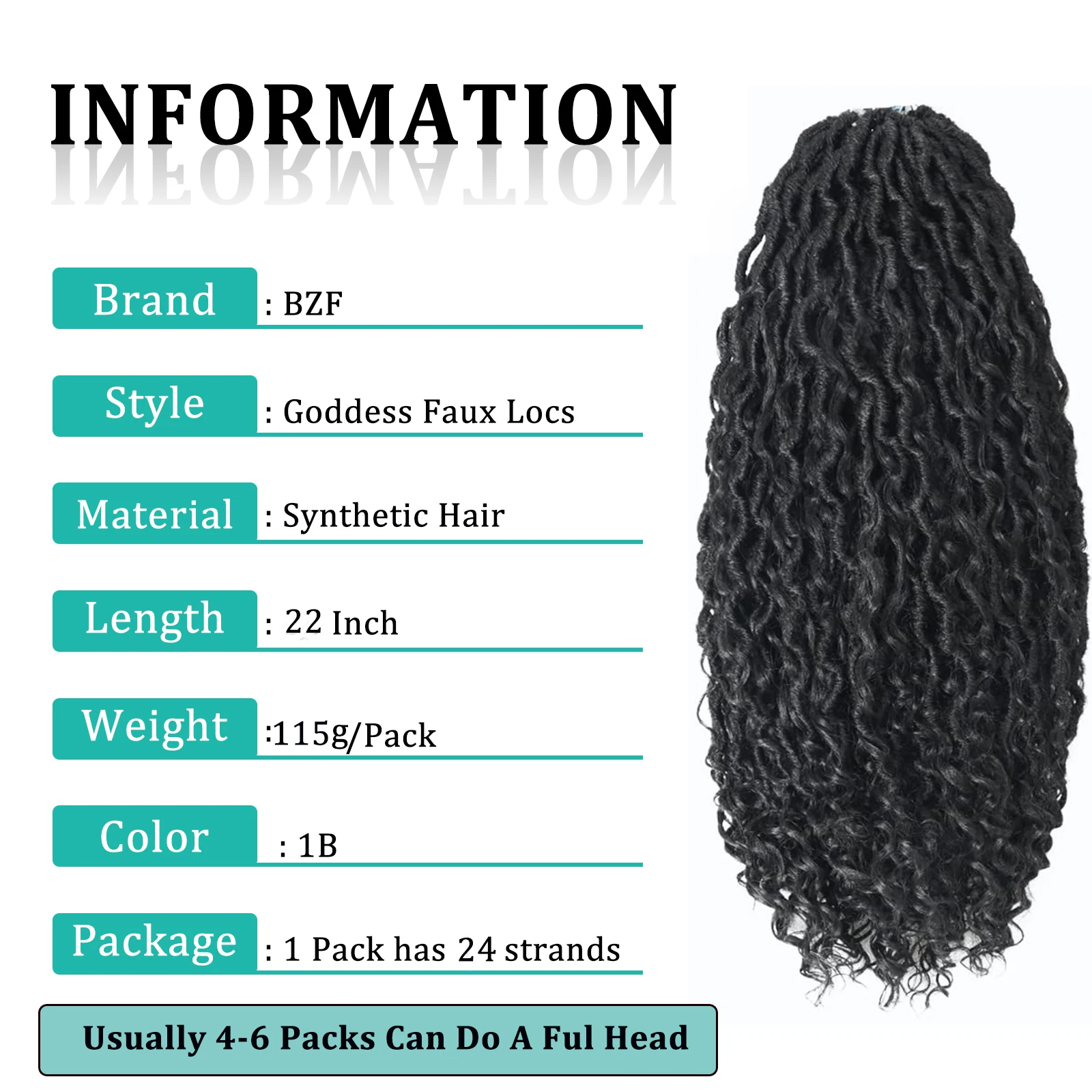 TBUG Goddess Faux Locs Crochet Hair 22 Inch 1B River Locs Braid Curly Hair Faux Locs Synthetic Braiding Hair Extension For Women