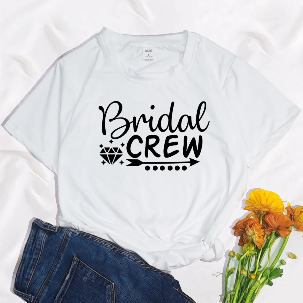 Team Bride Bachelorette Wedding Party Women Evjf Tee Shirt Casual ladies basic O-collar Pink Short Sleeved T-shirt Girl