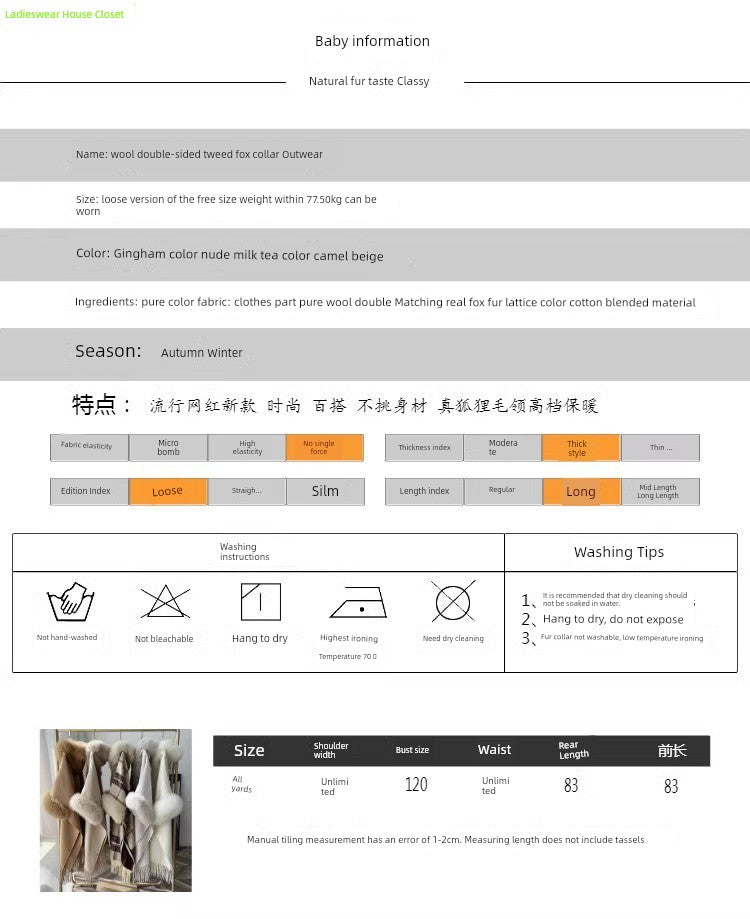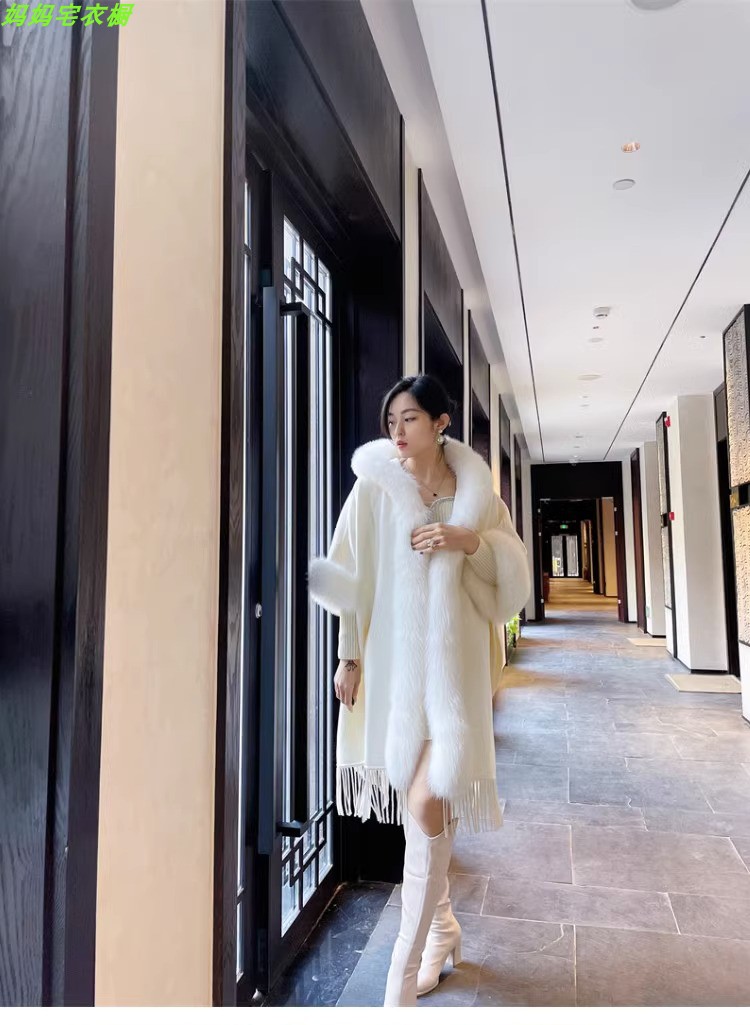 Thickened All-Matching Double-Sided Hooded Large Fur Collar Cape and Shawl