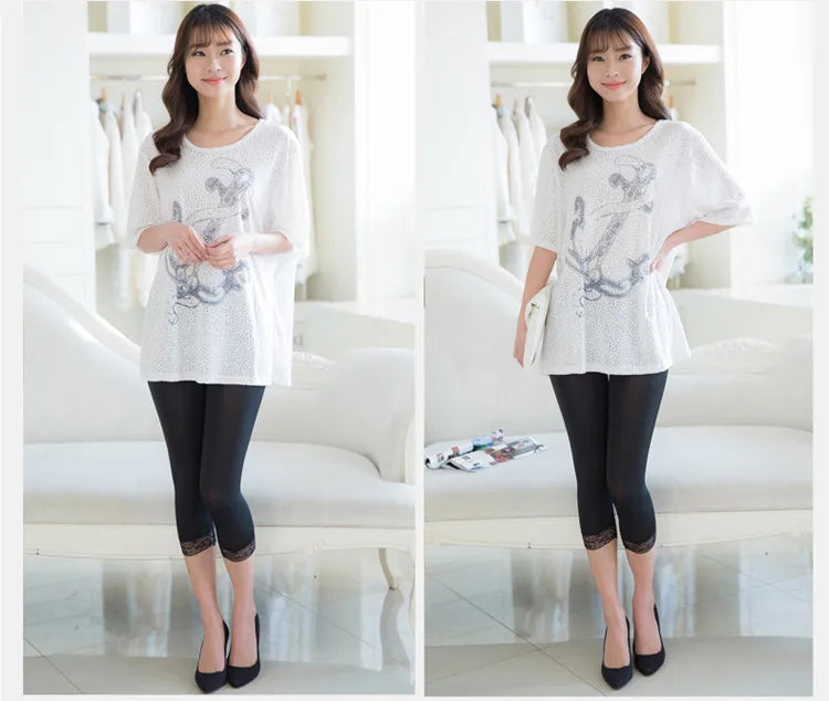 plus size petite pants: Ice silk lace seven Leggings