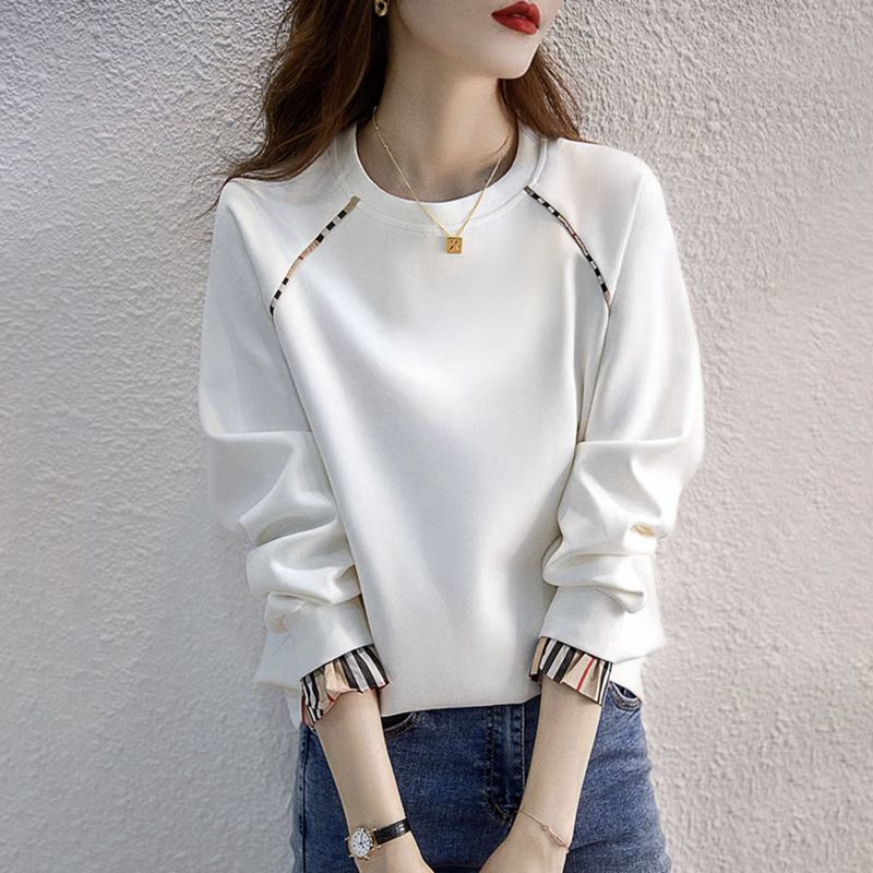 Thin Pure Cotton Sweatshirt Women Spring Autumn Korean Version Hatless Pullover Long Sleeve Round Neck Fake Two Piece Top