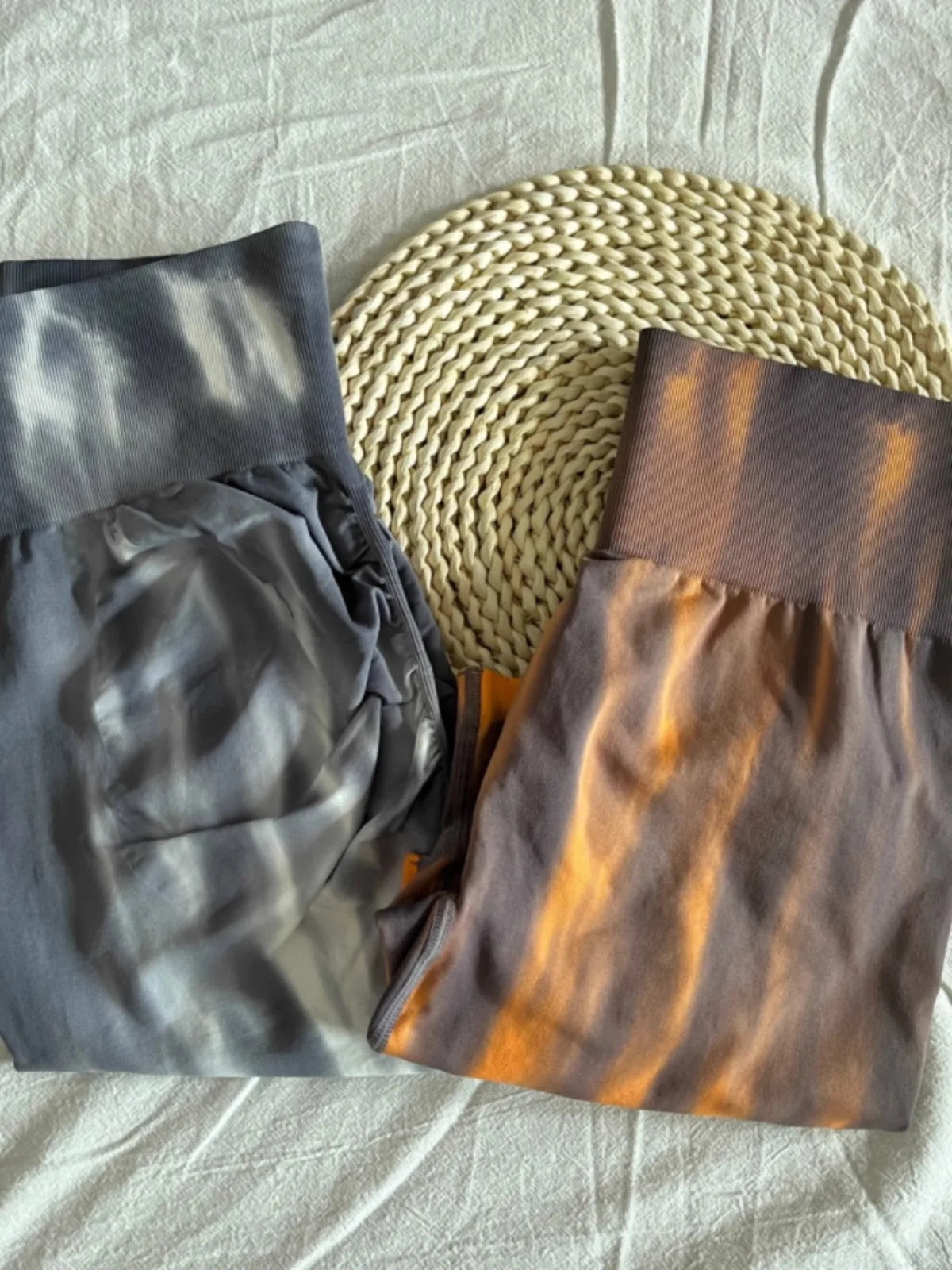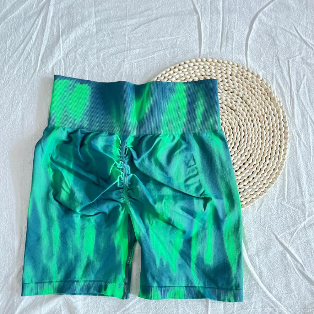 Tie Dye Aurora Shorts Female Seamless Slim Leggings Gym Running Cycling Stretchy Leggings High Waist Hip Liftting Yoga Shorts