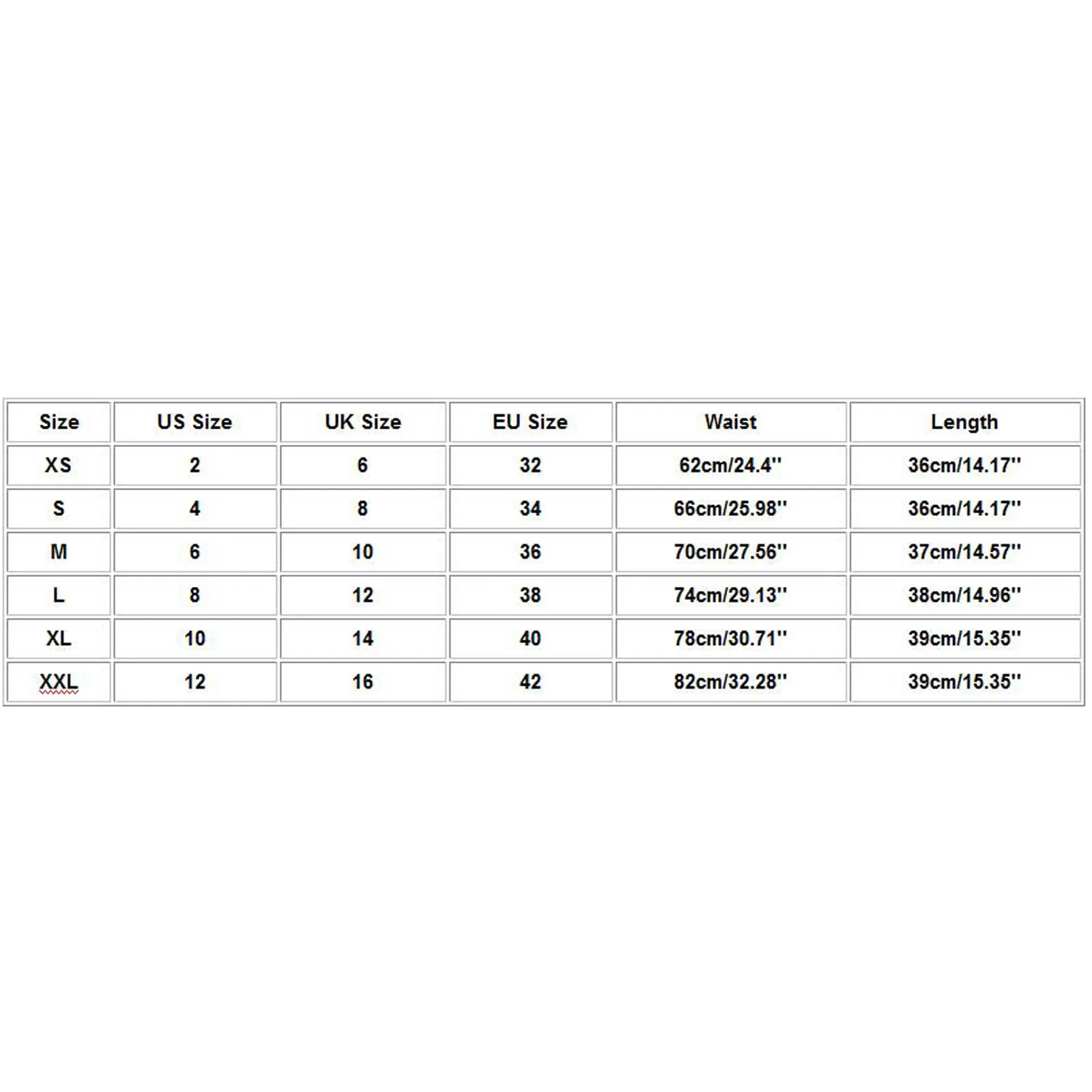 | Size:M | US Size:6 | UK Size:10 | EU Size:36 | Waist:70cm/27.56'' | Length:37cm/14.57'' |