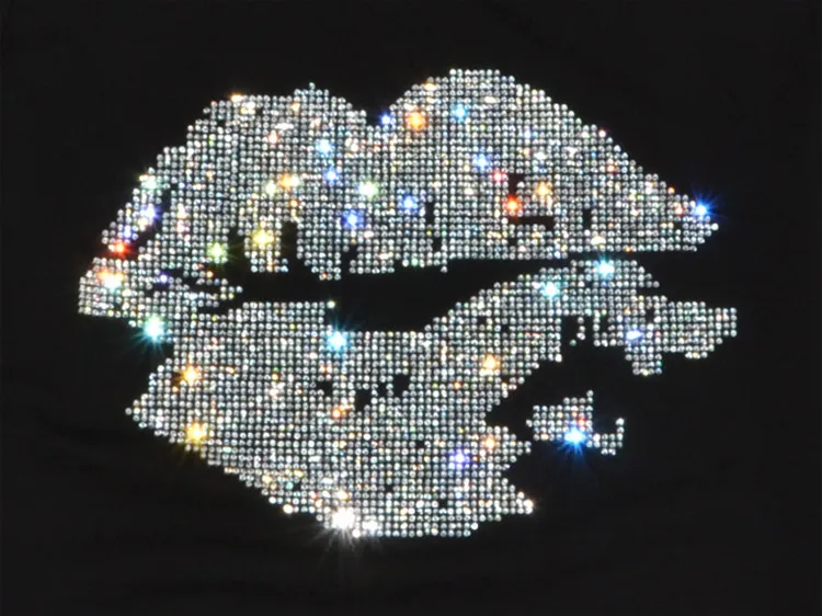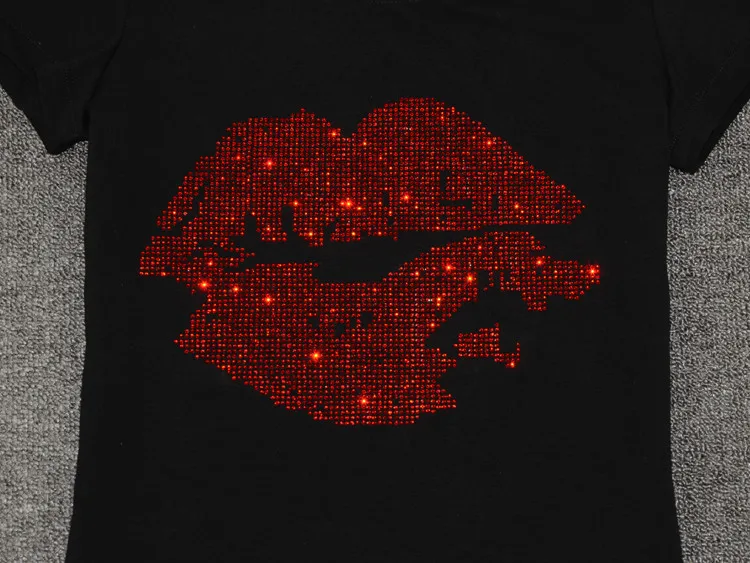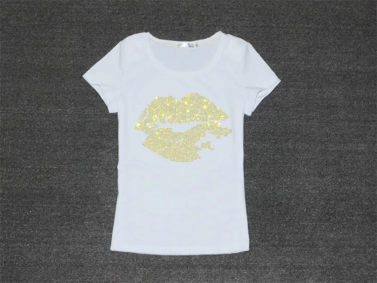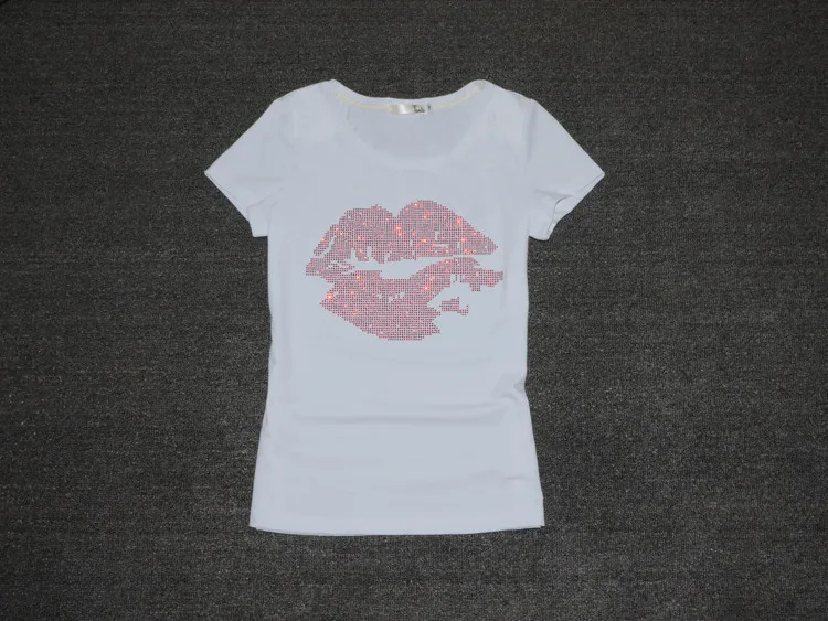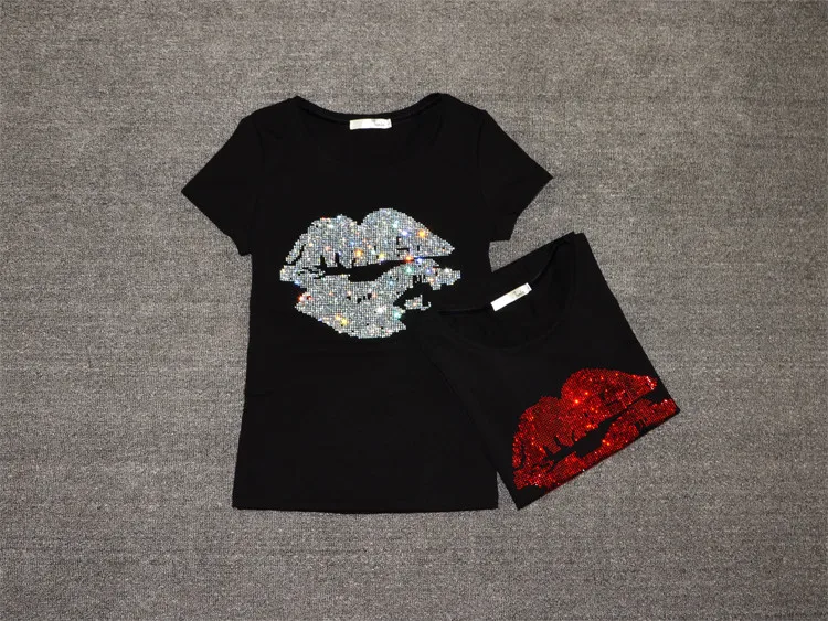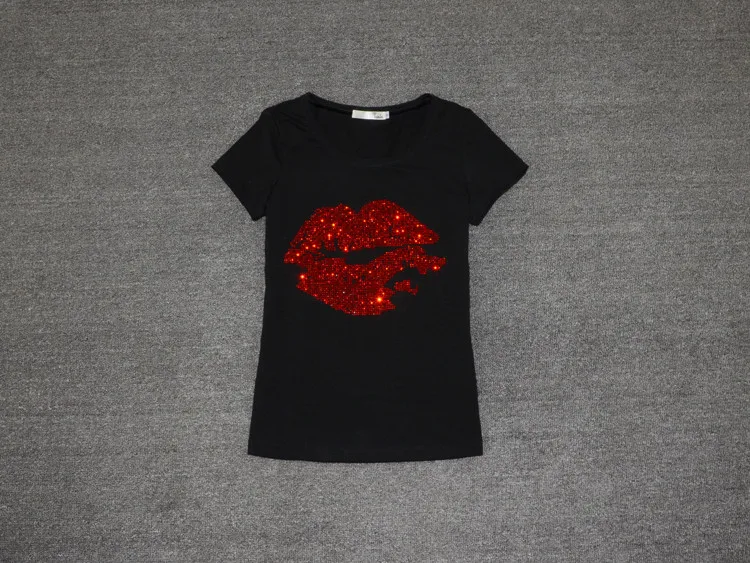 Top Selling t shirt women Summer Short Sleeve Feminine Fashion Sexy Lip Crystal T-shirt O Neck Soft Cotton Ladies Tee shirt