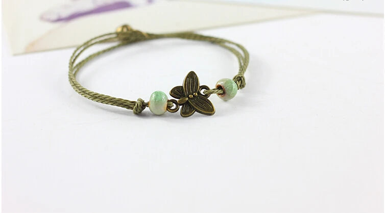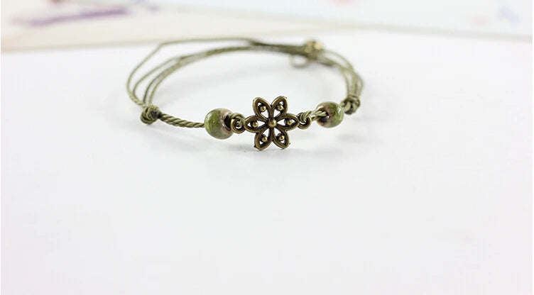 Traditional Boondoggle Hand Woven Colored Glaze Ceramic Bracelets Beads Folk Style Women's Fashion Jewelry Dropshipping #1506