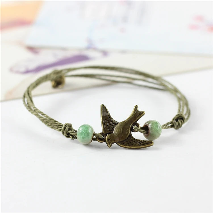 Traditional Boondoggle Hand Woven Colored Glaze Ceramic Bracelets Beads Folk Style Women's Fashion Jewelry Free Shipping