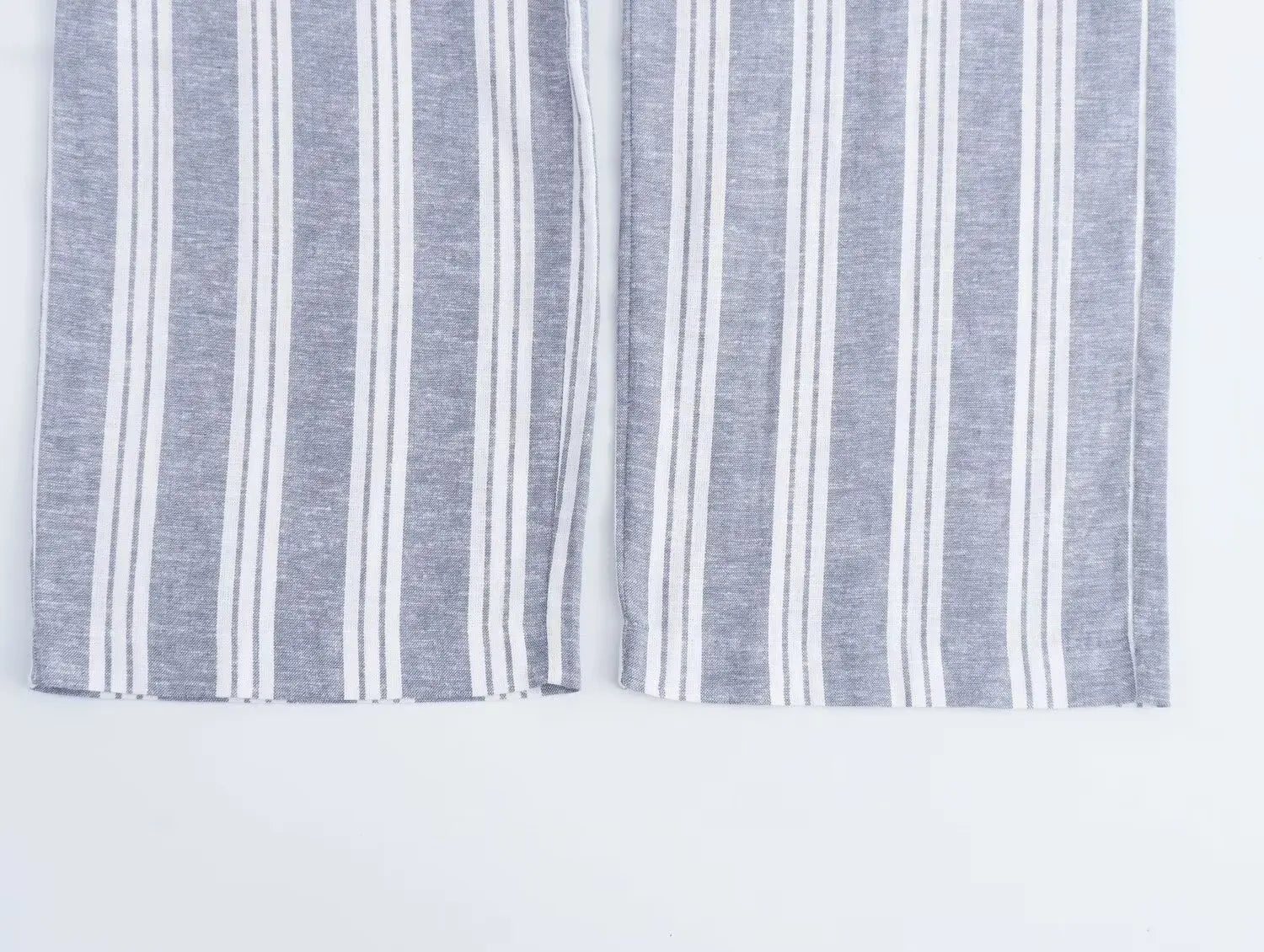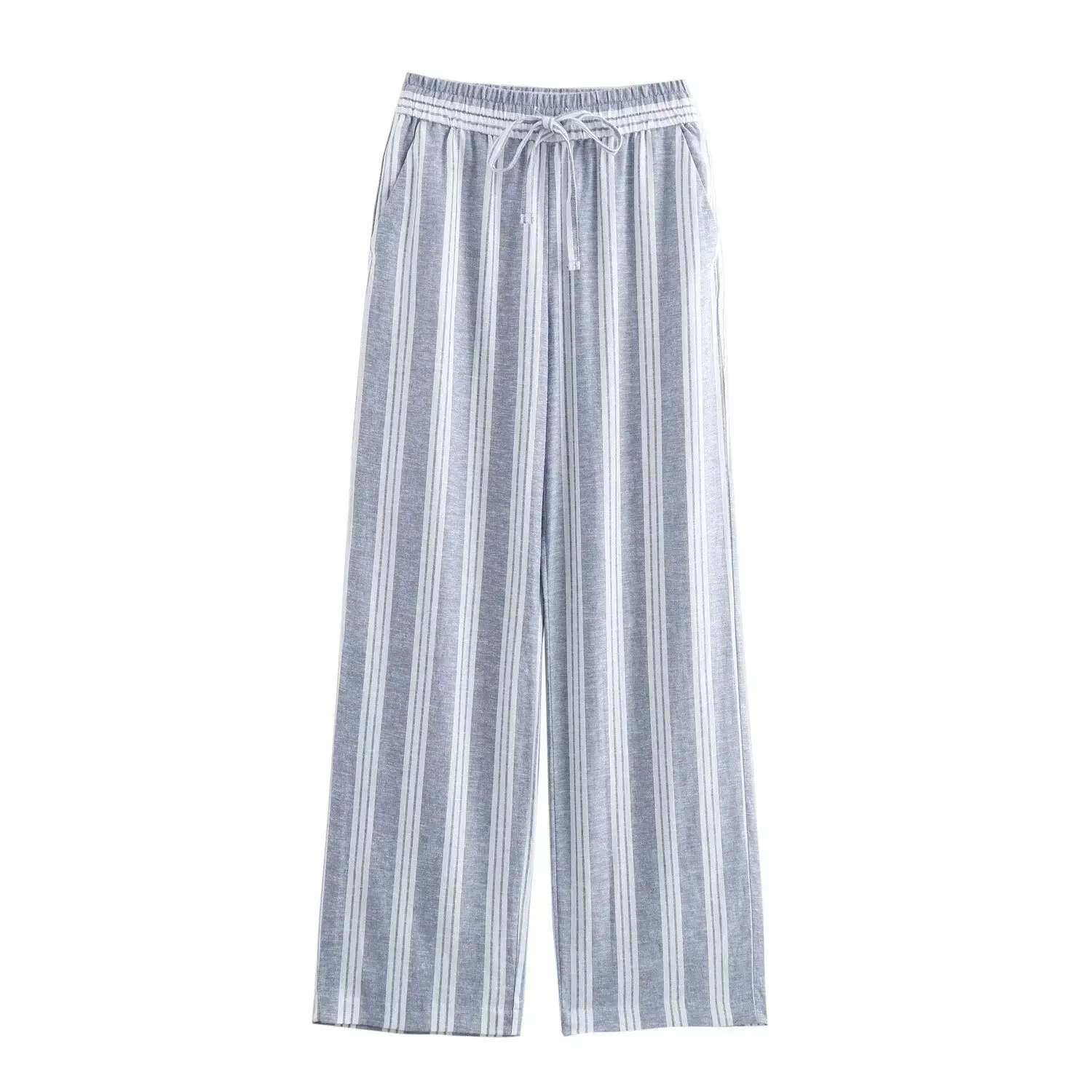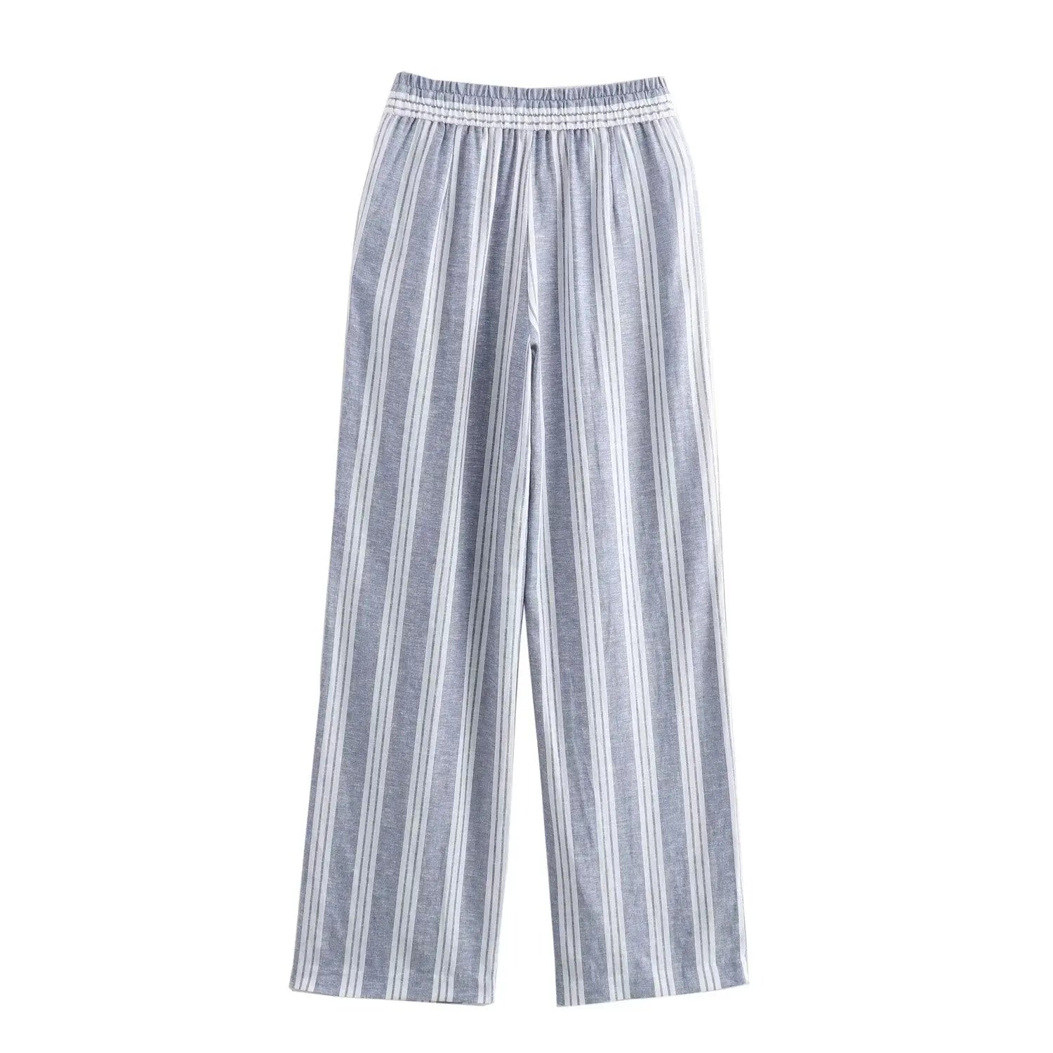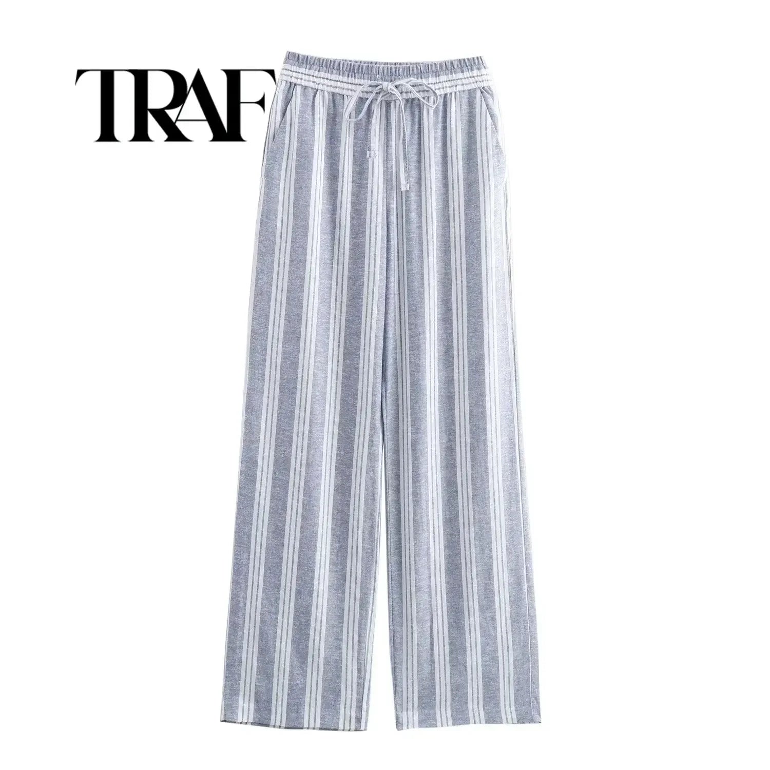 TRAF 2024 Women's Linen Blend Striped Casual Pants Dress Baggy Woman High Waist Cargo Clothes Promotion Official Store