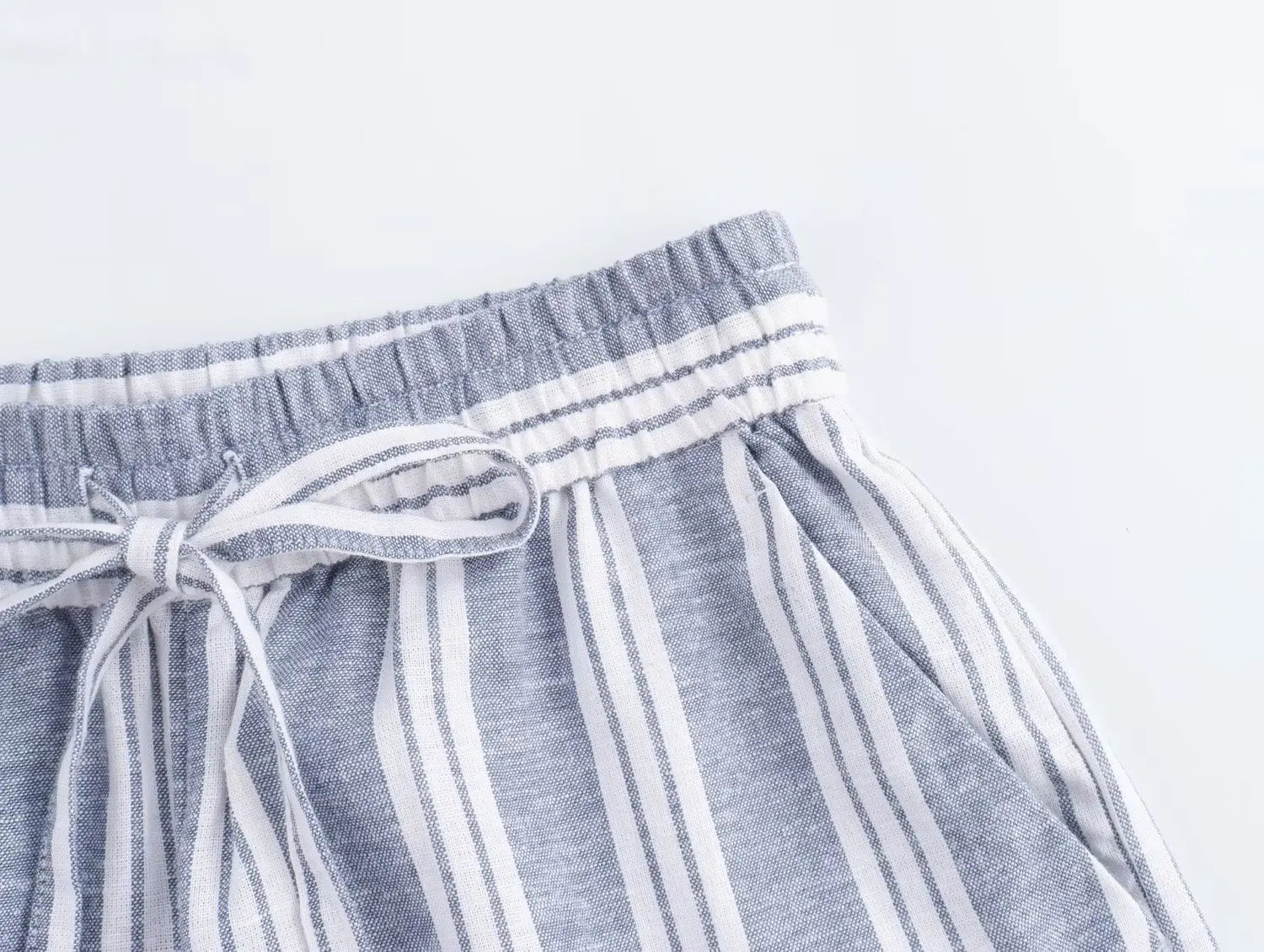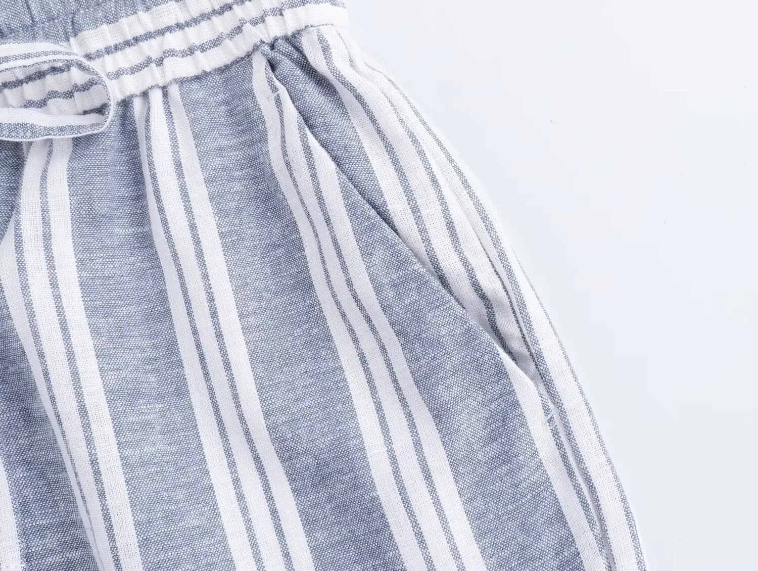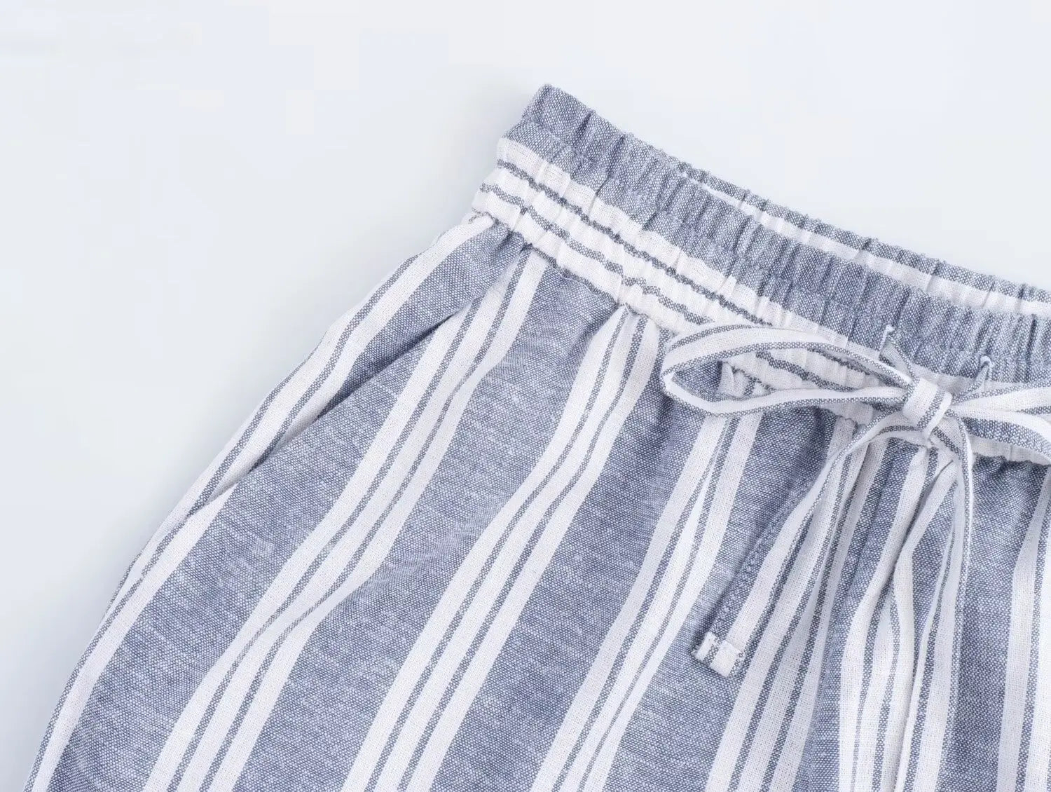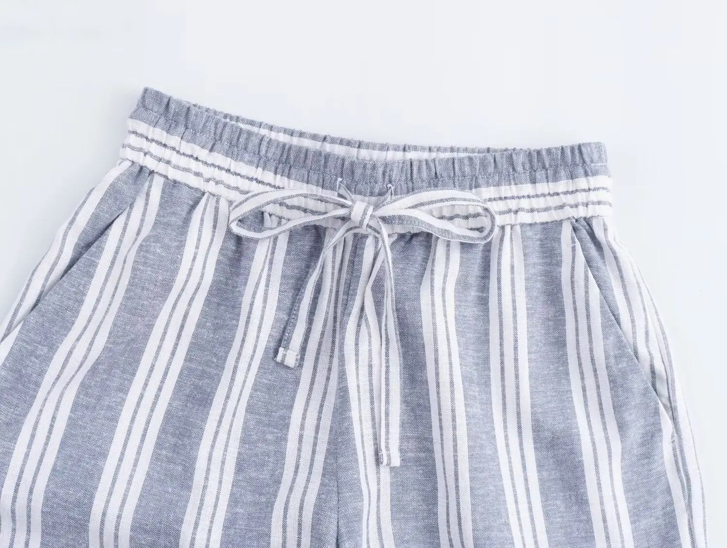 TRAF 2024 Women's Linen Blend Striped Casual Pants Dress Baggy Woman High Waist Cargo Clothes Promotion Official Store