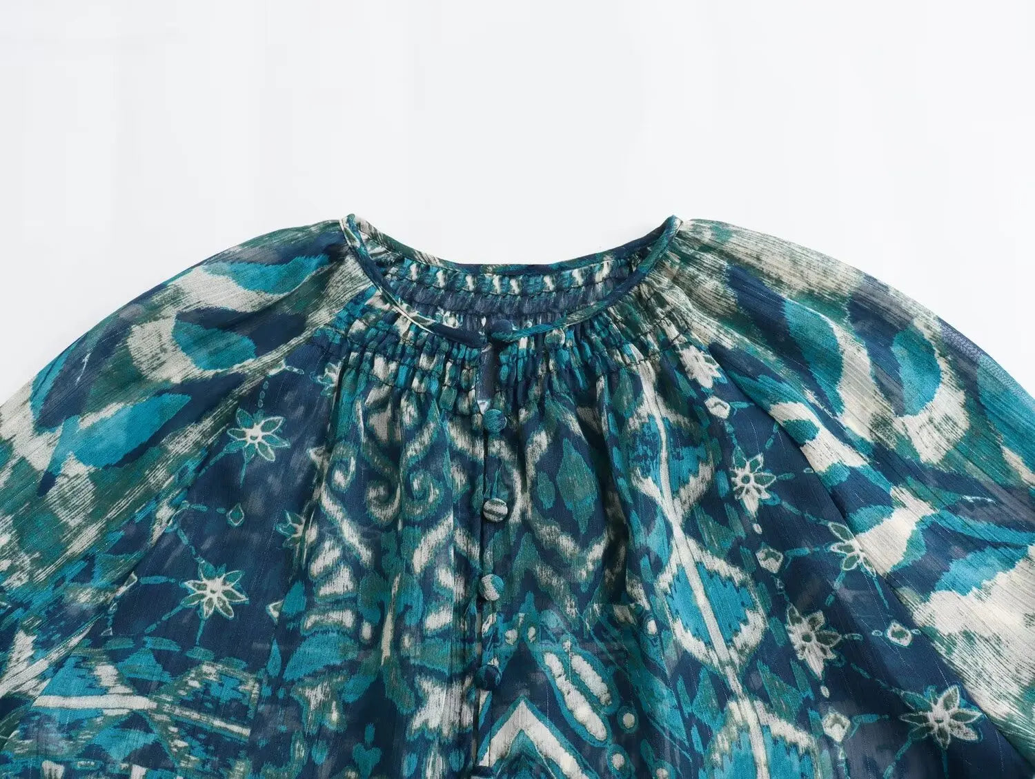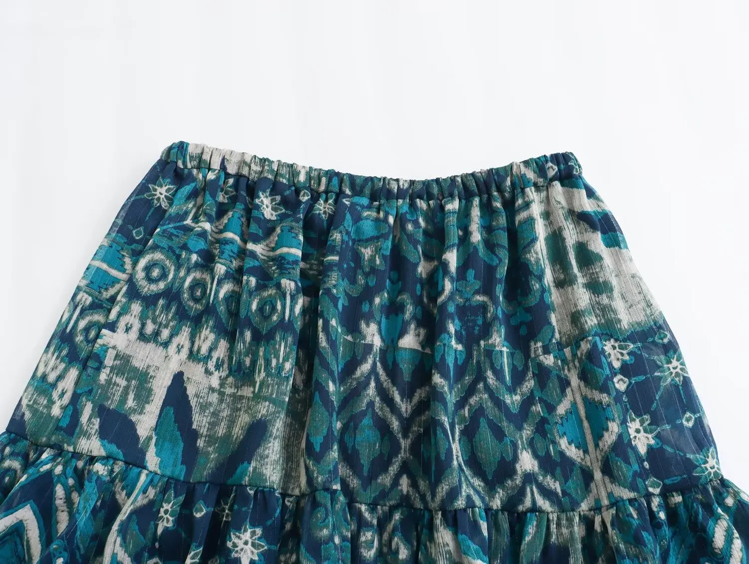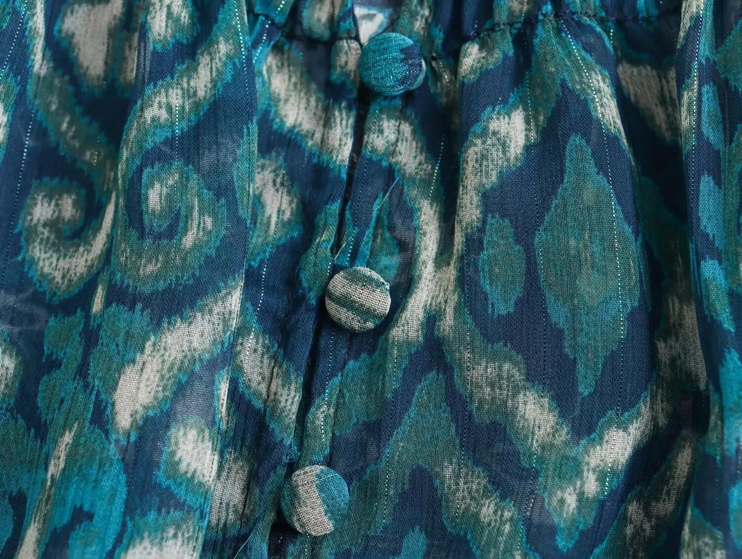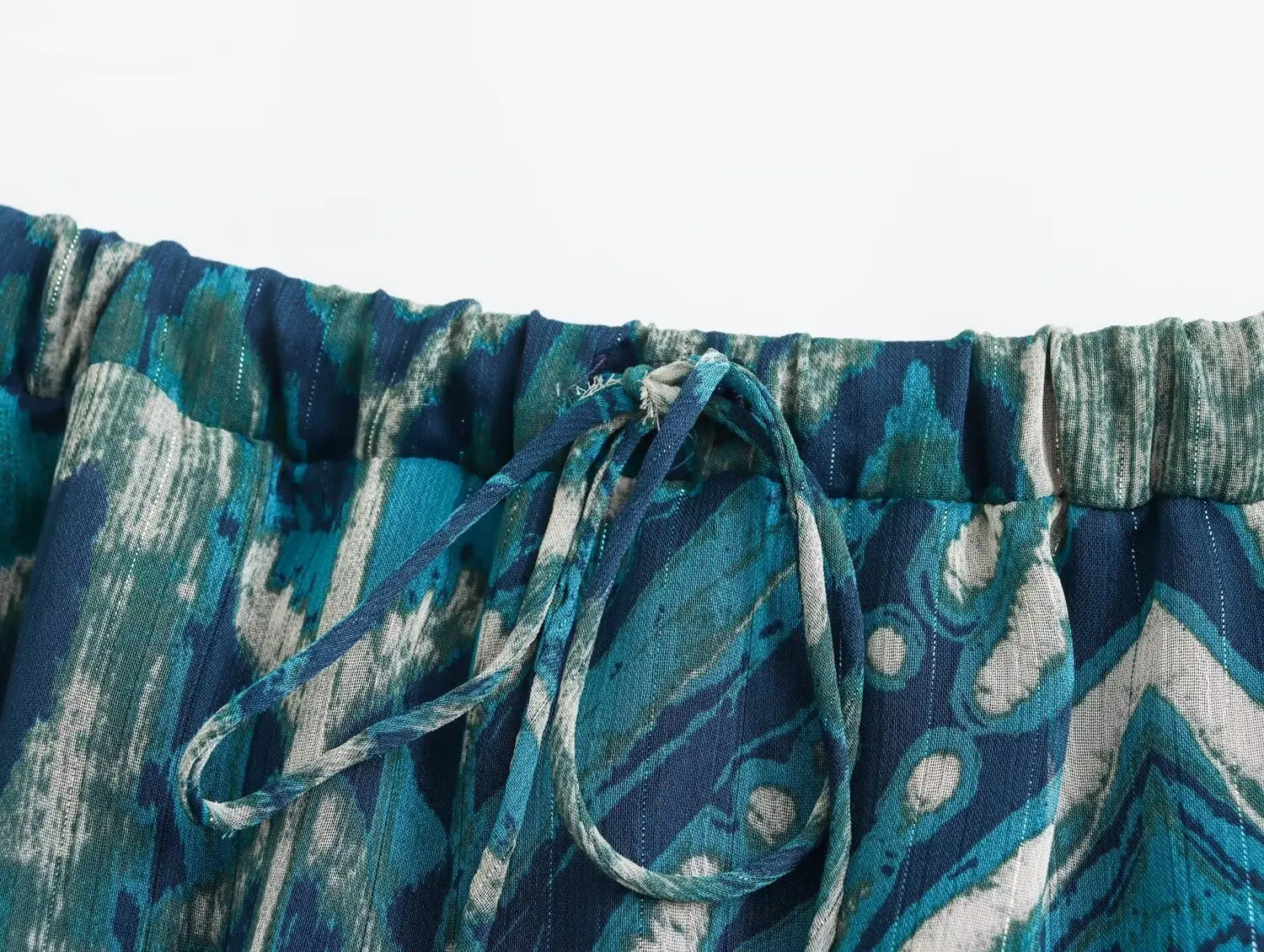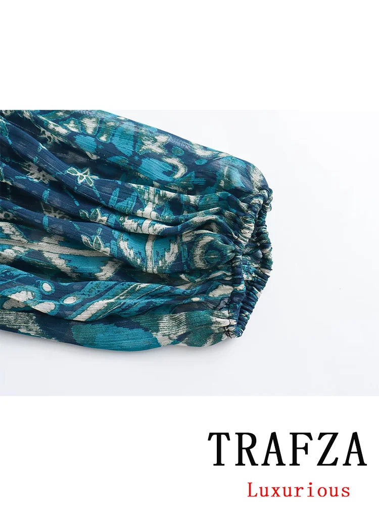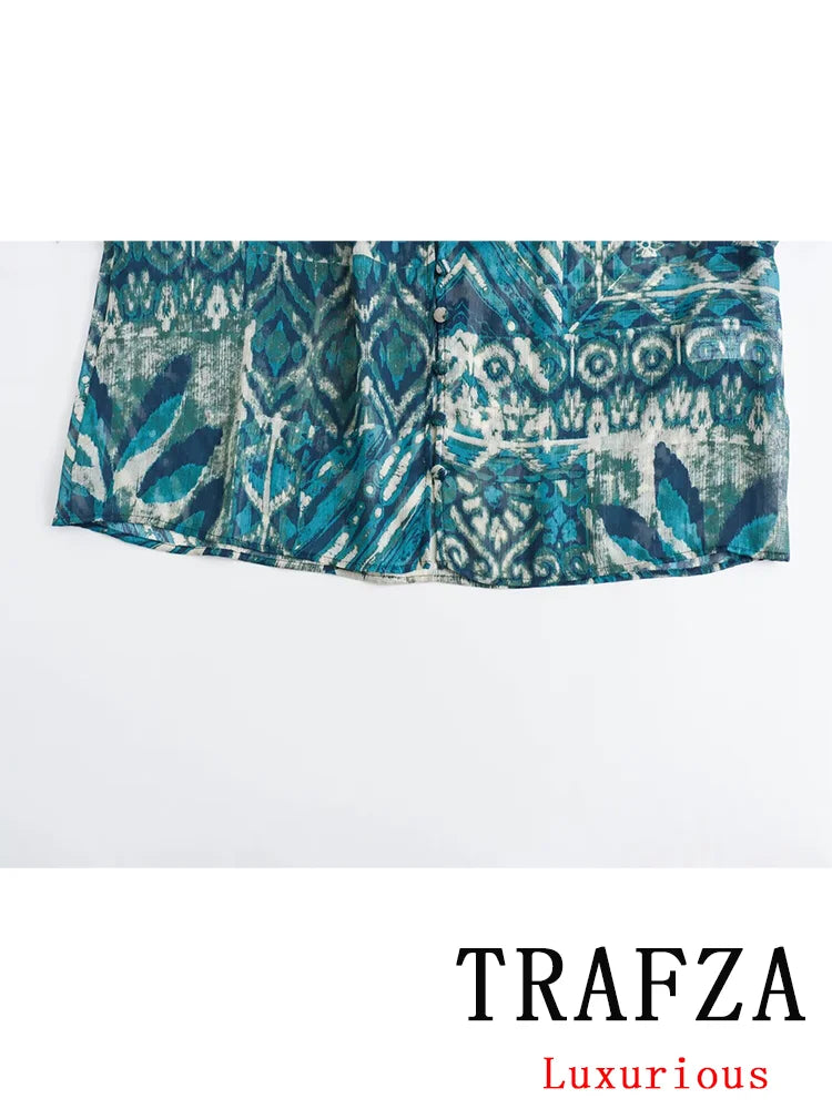 TRAFZA Vintage Casual Chic Print Women Suit O-Neck Single Breasted Blouse Loose Long Straight Skirt Fashion 2024 Boho Set