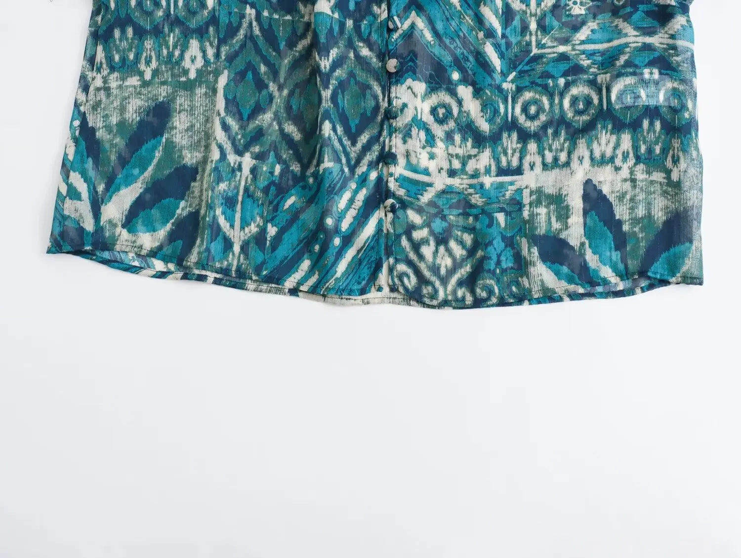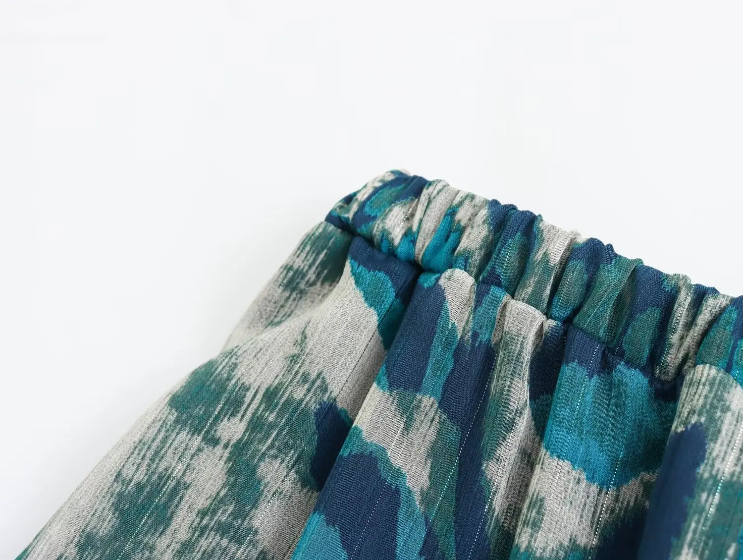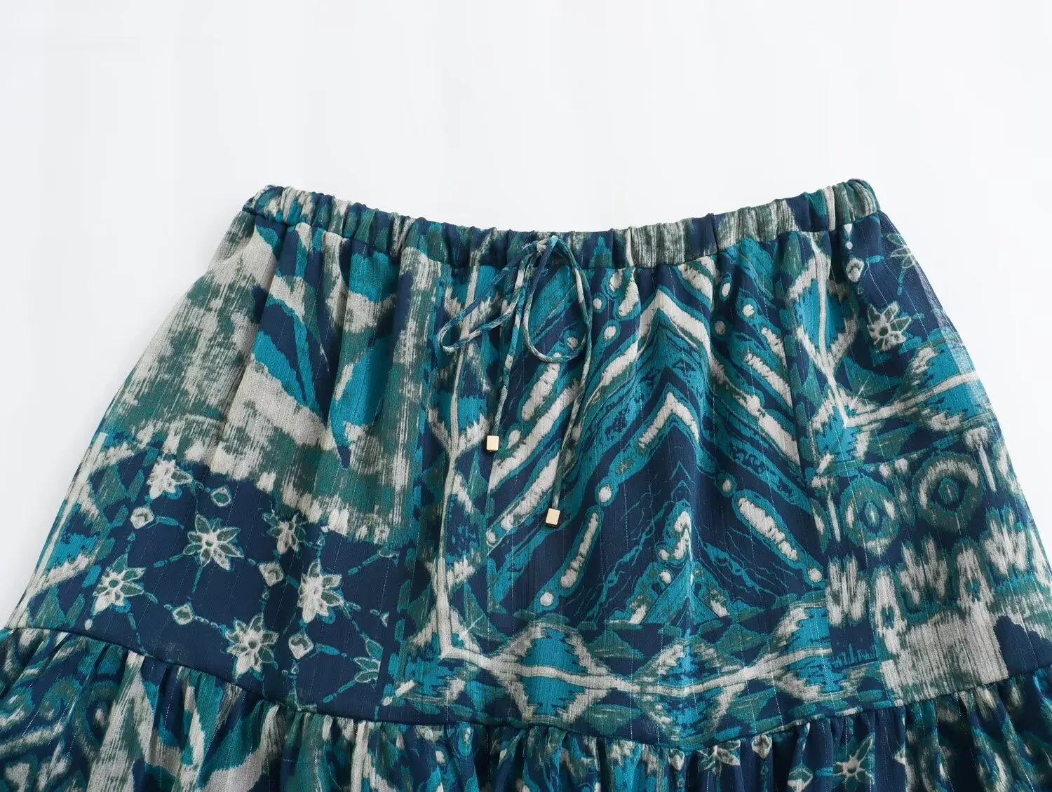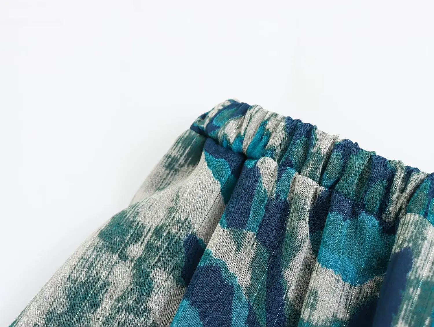 TRAFZA Vintage Casual Chic Print Women Suit O-Neck Single Breasted Blouse Loose Long Straight Skirt Fashion 2024 Boho Set