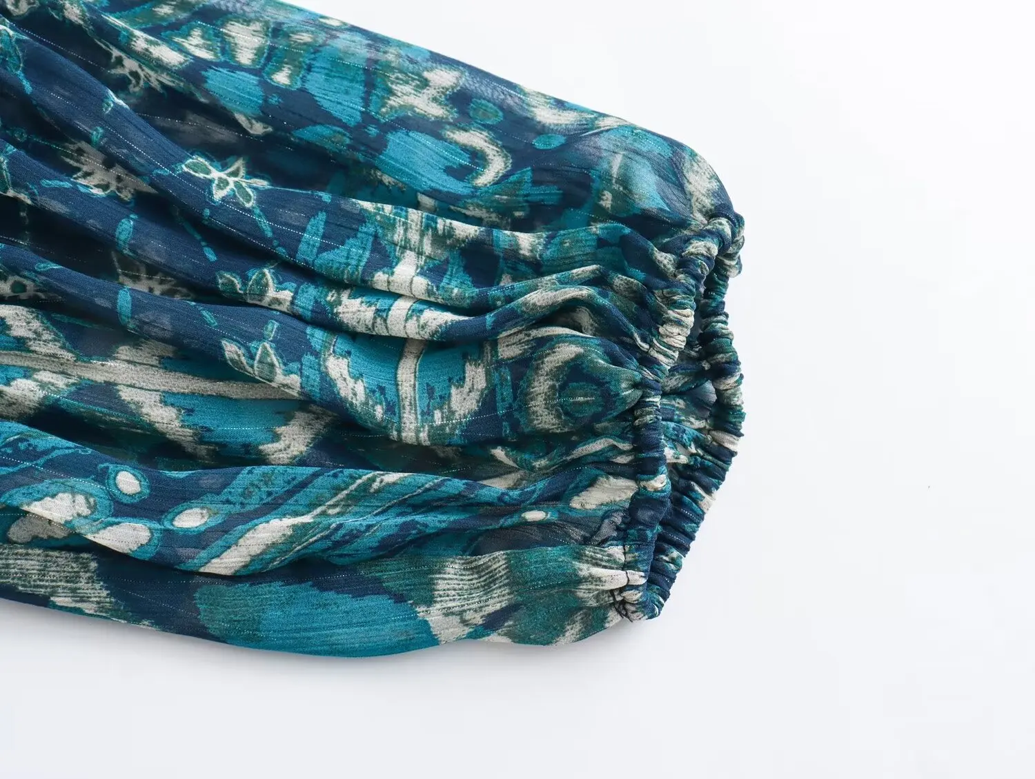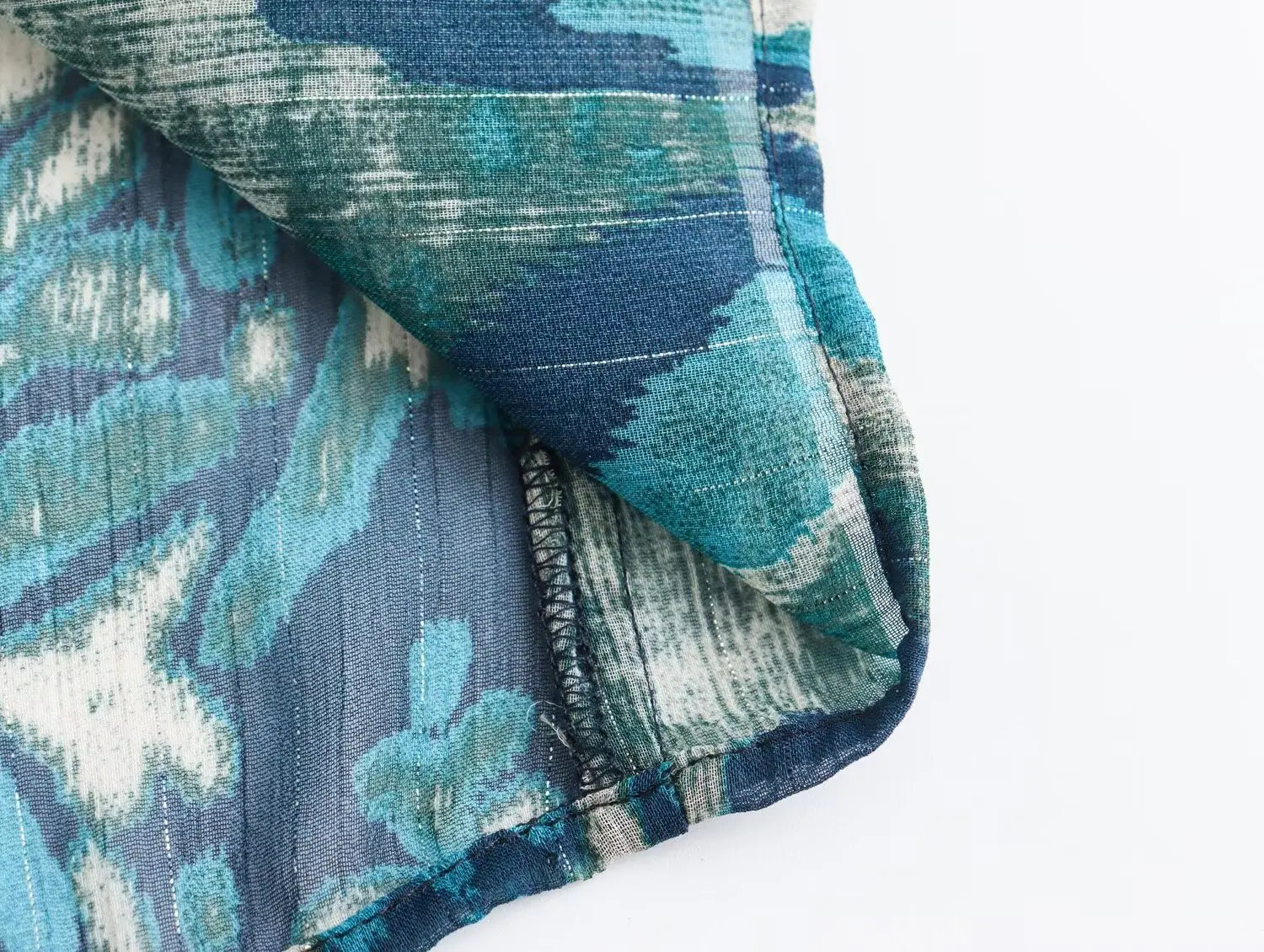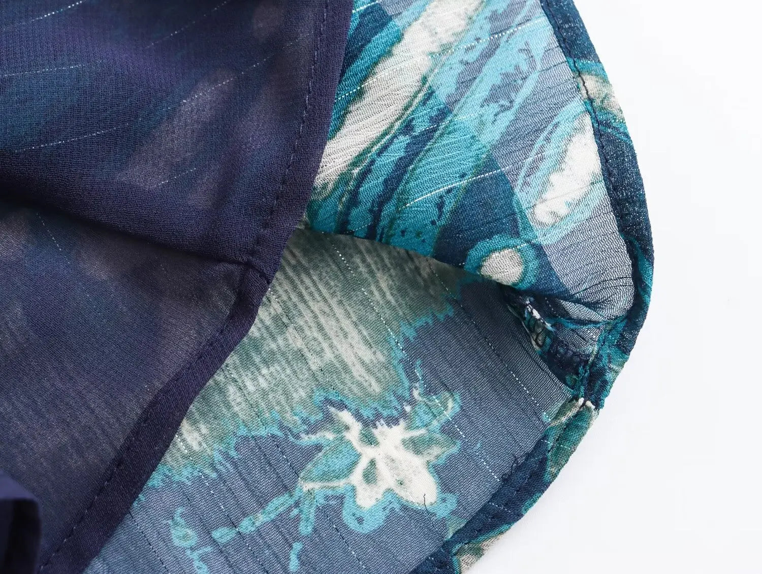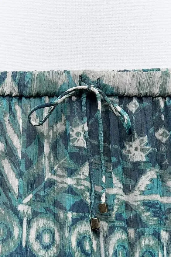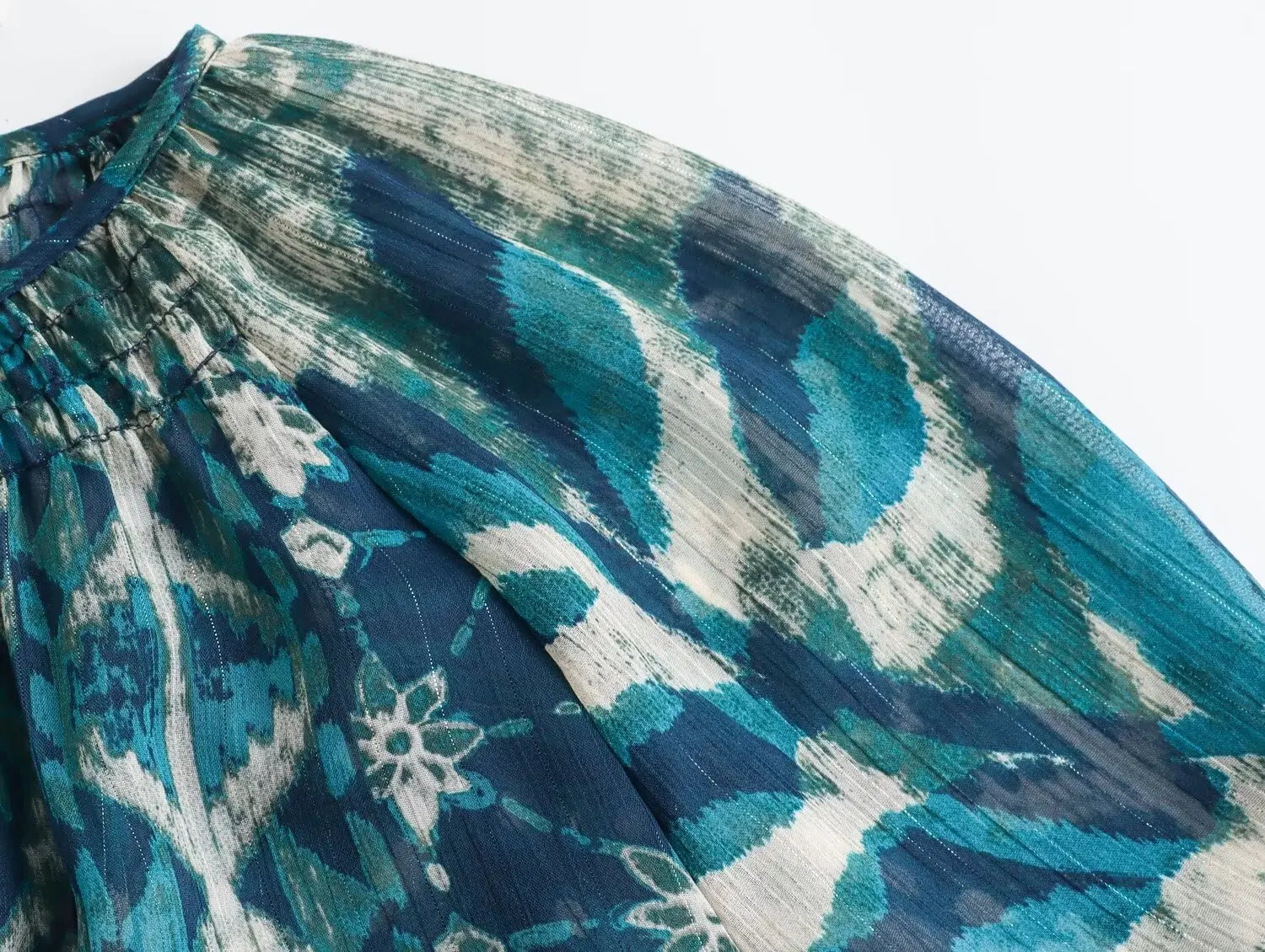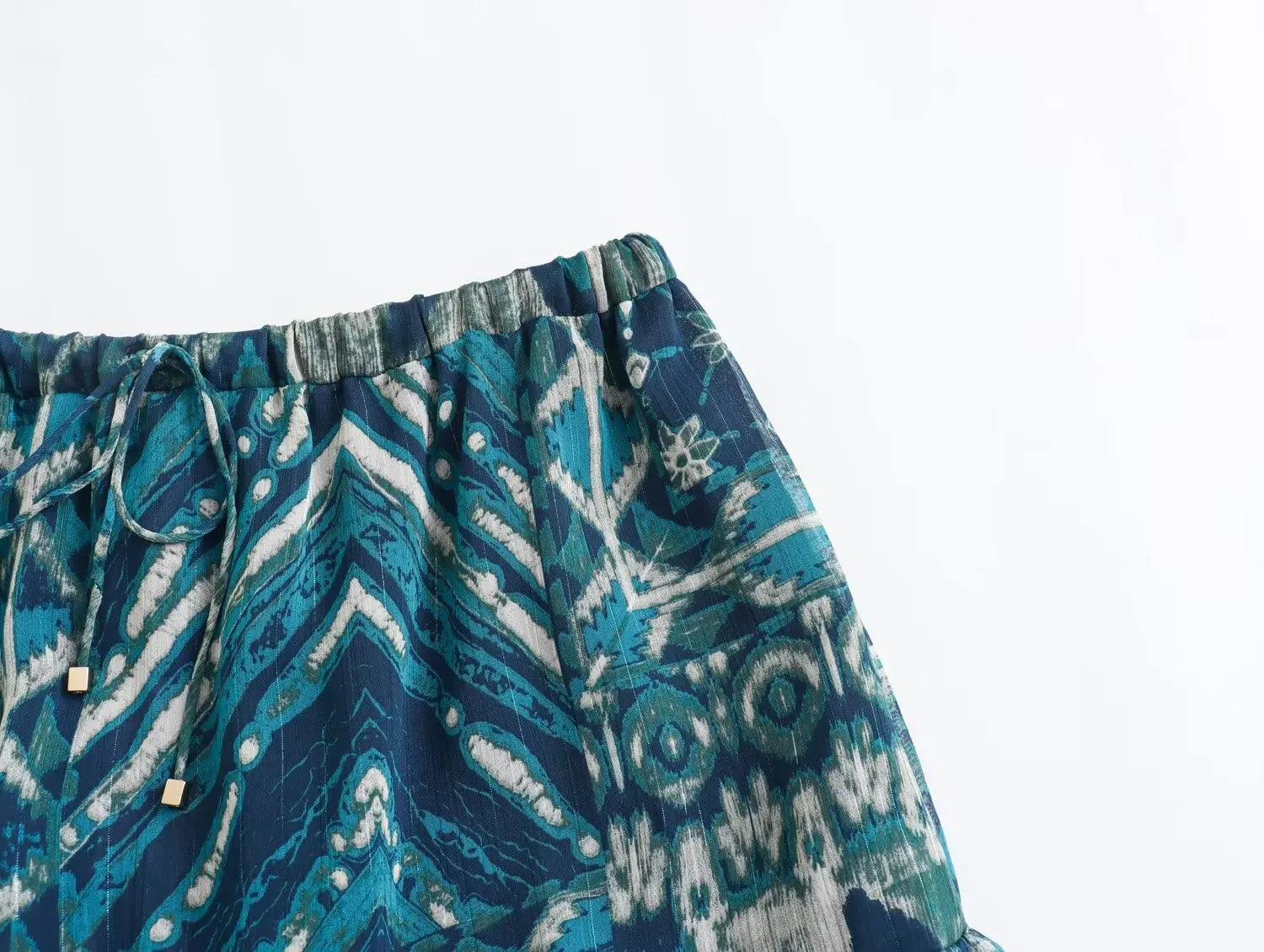 TRAFZA Vintage Casual Chic Print Women Suit O-Neck Single Breasted Blouse Loose Long Straight Skirt Fashion 2024 Boho Set