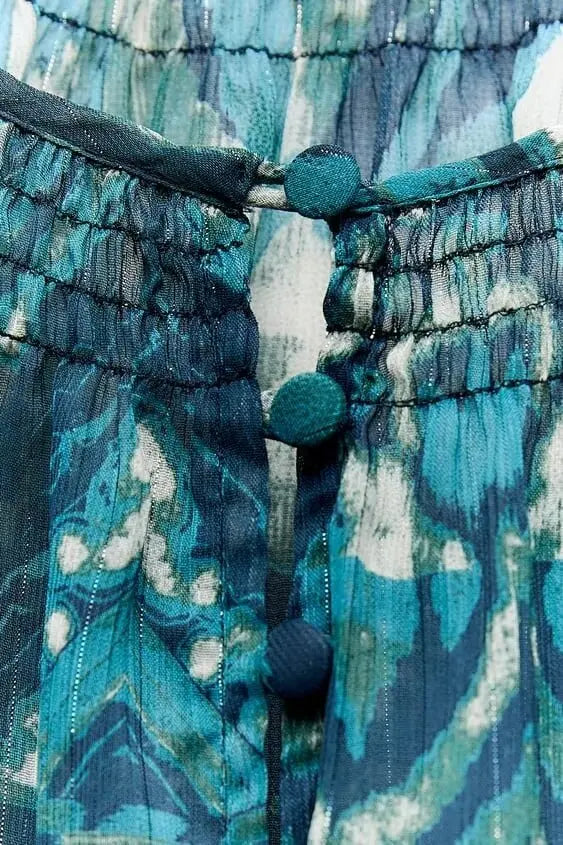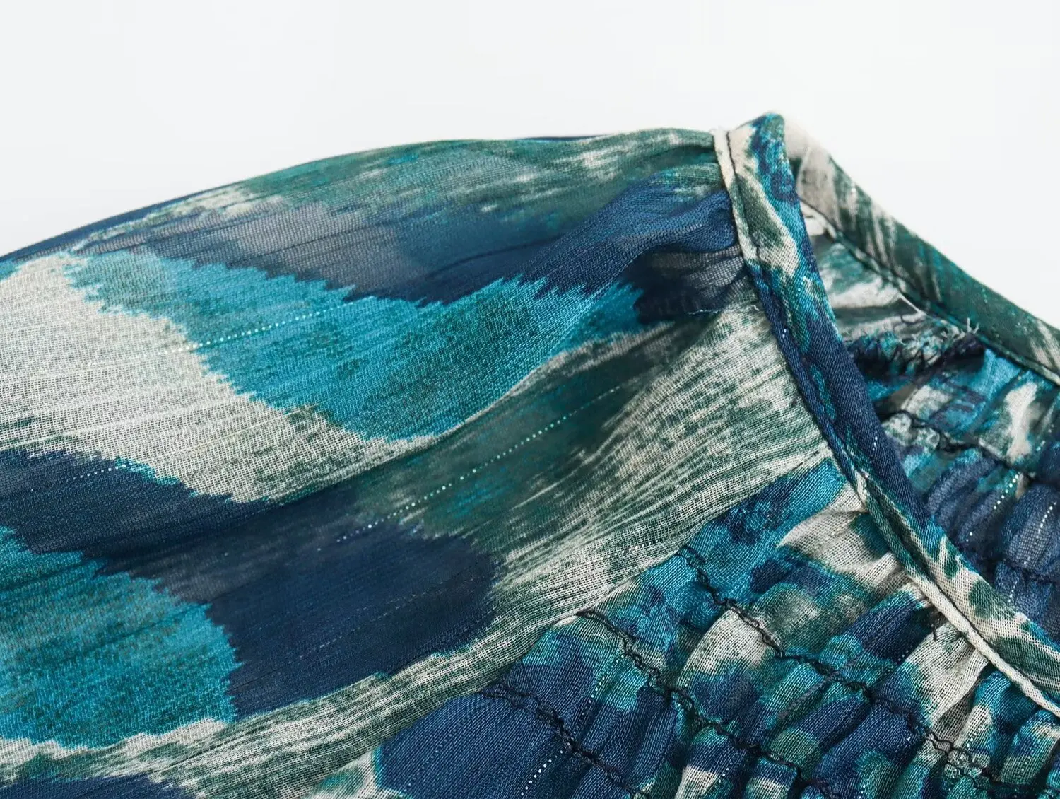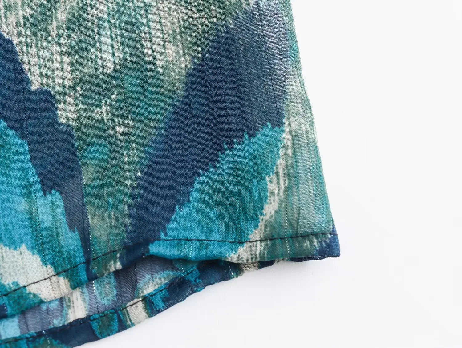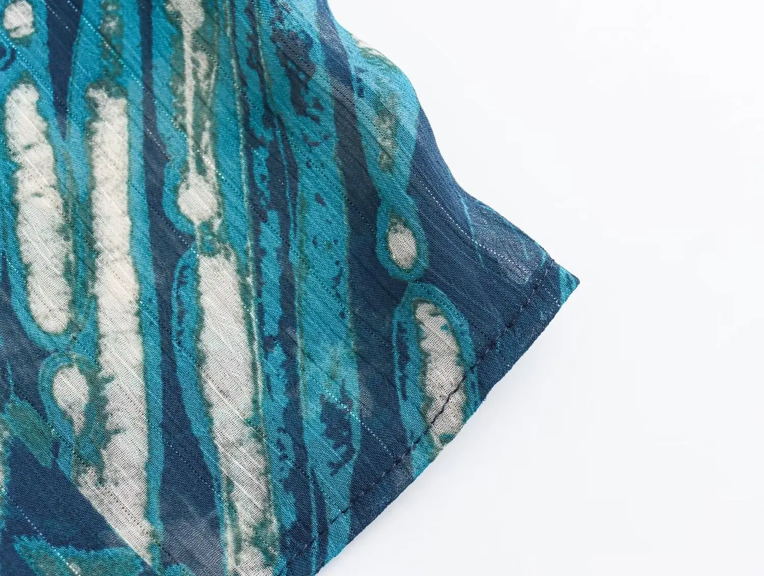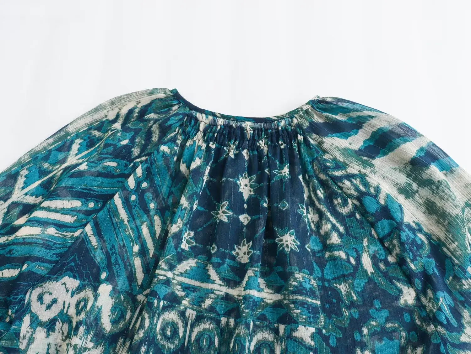 TRAFZA Vintage Casual Chic Print Women Suit O-Neck Single Breasted Blouse Loose Long Straight Skirt Fashion 2024 Boho Set