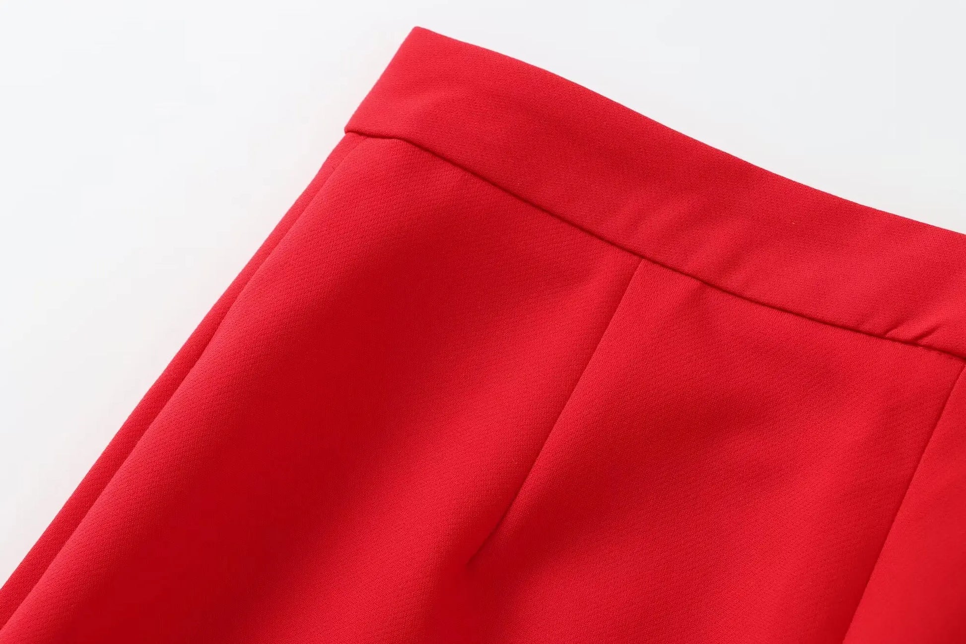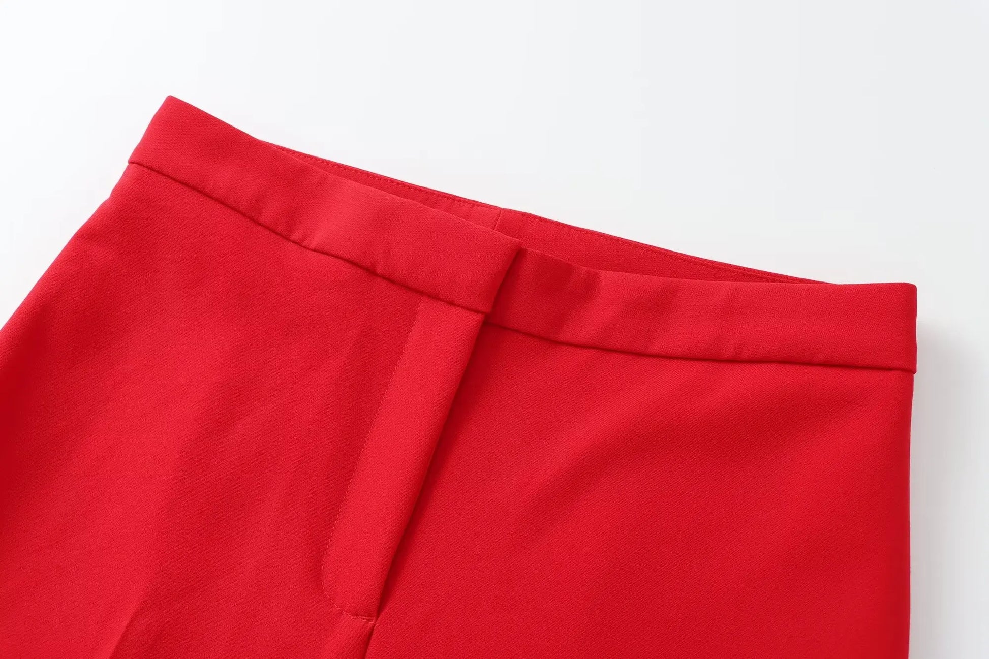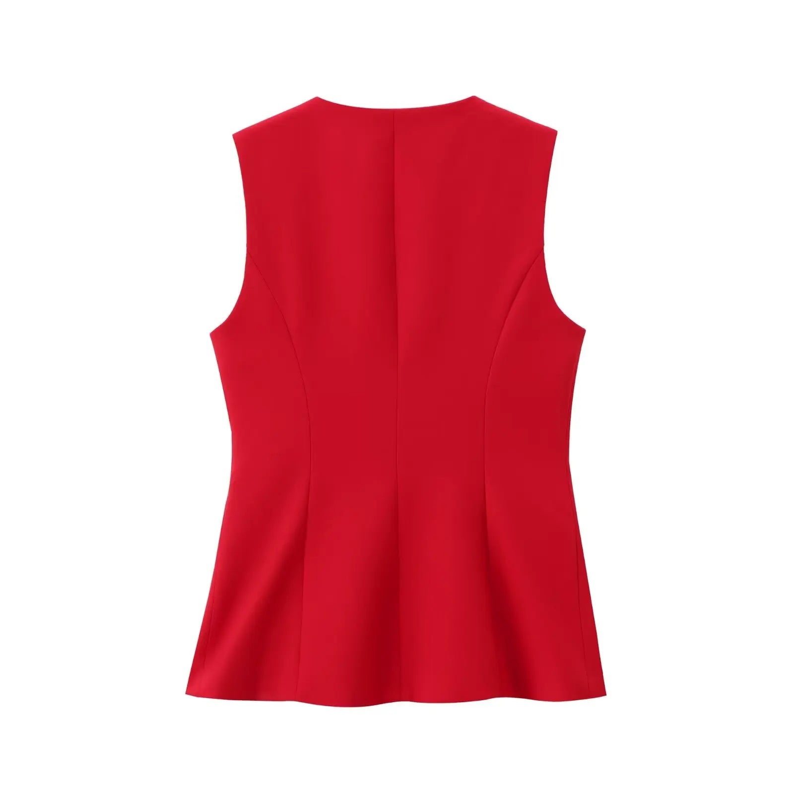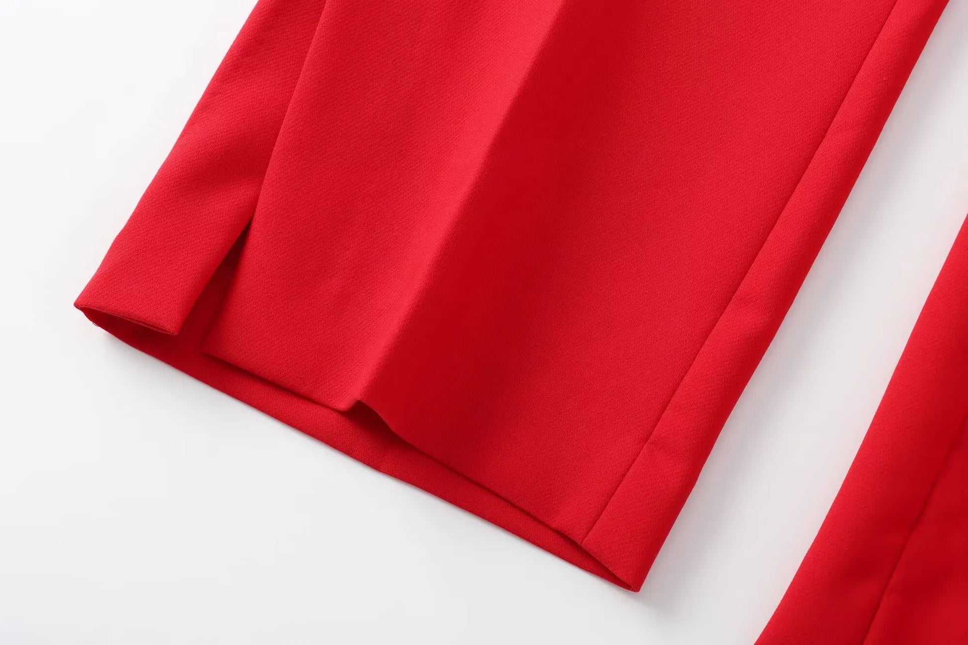 TRAFZA Women Fashion Suits Square Neck Sleeveless Double Breasted Waistcoat Top+Mid-Waist Slit Stralght Pants Female Summer Sets