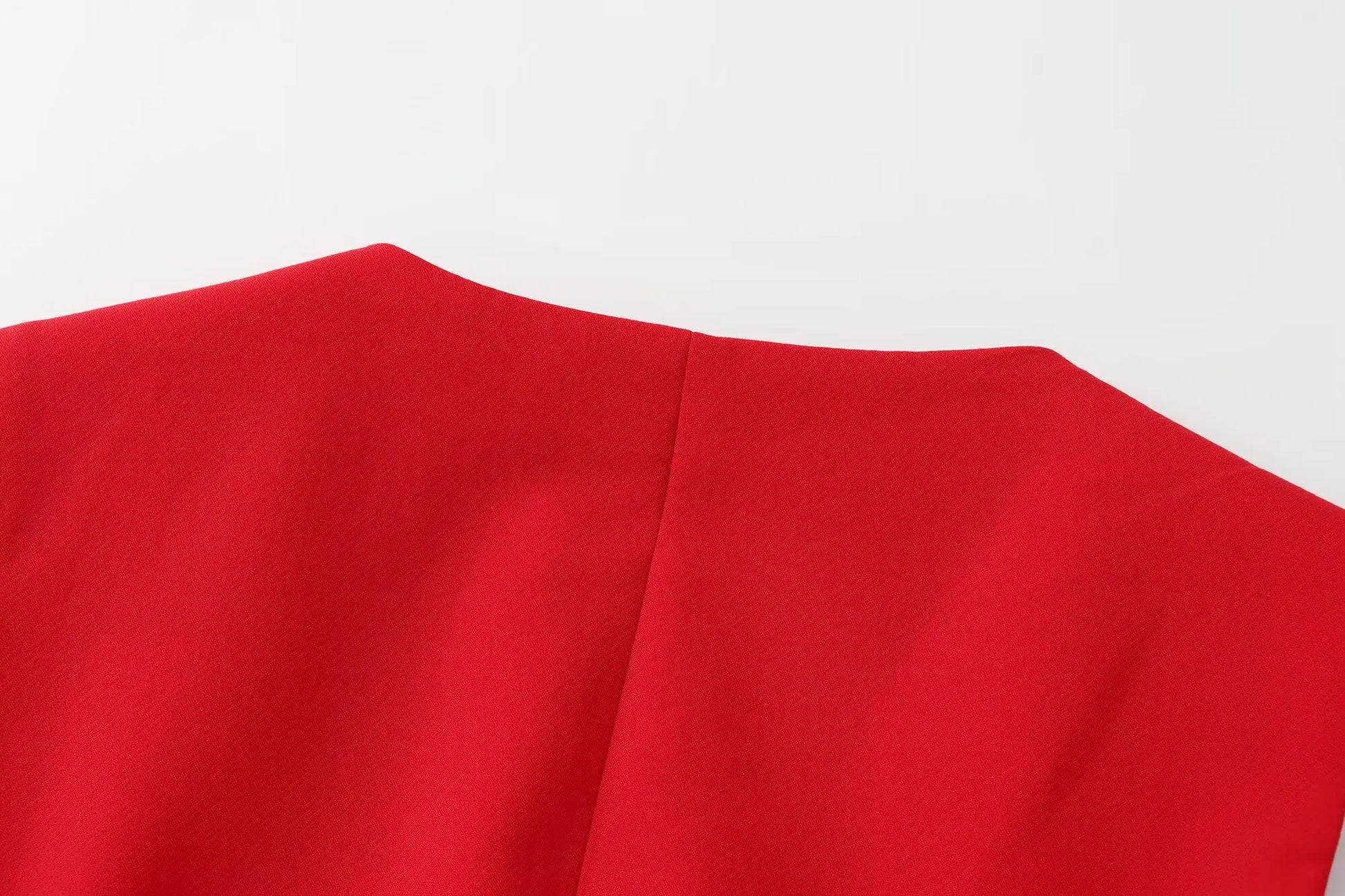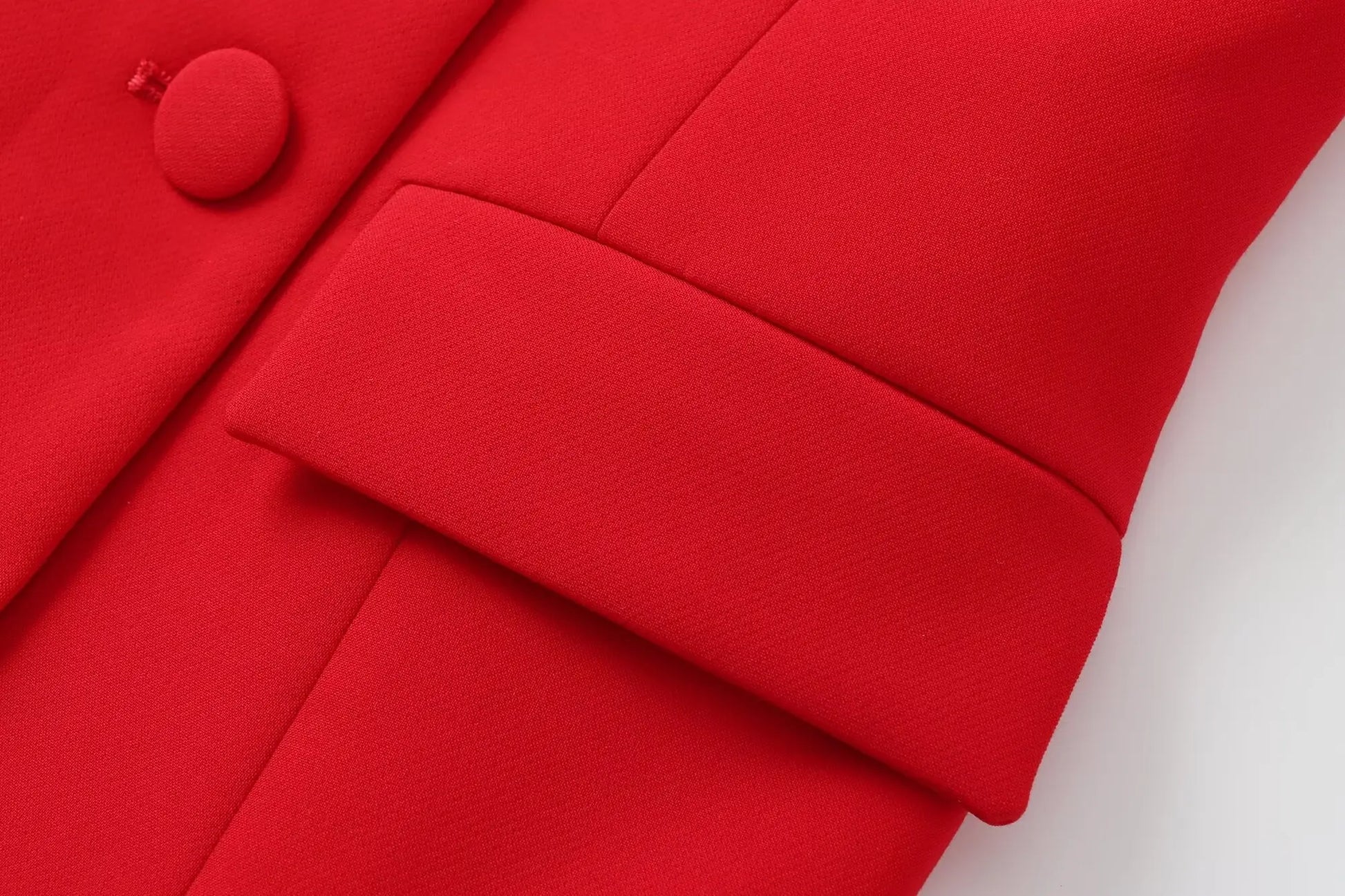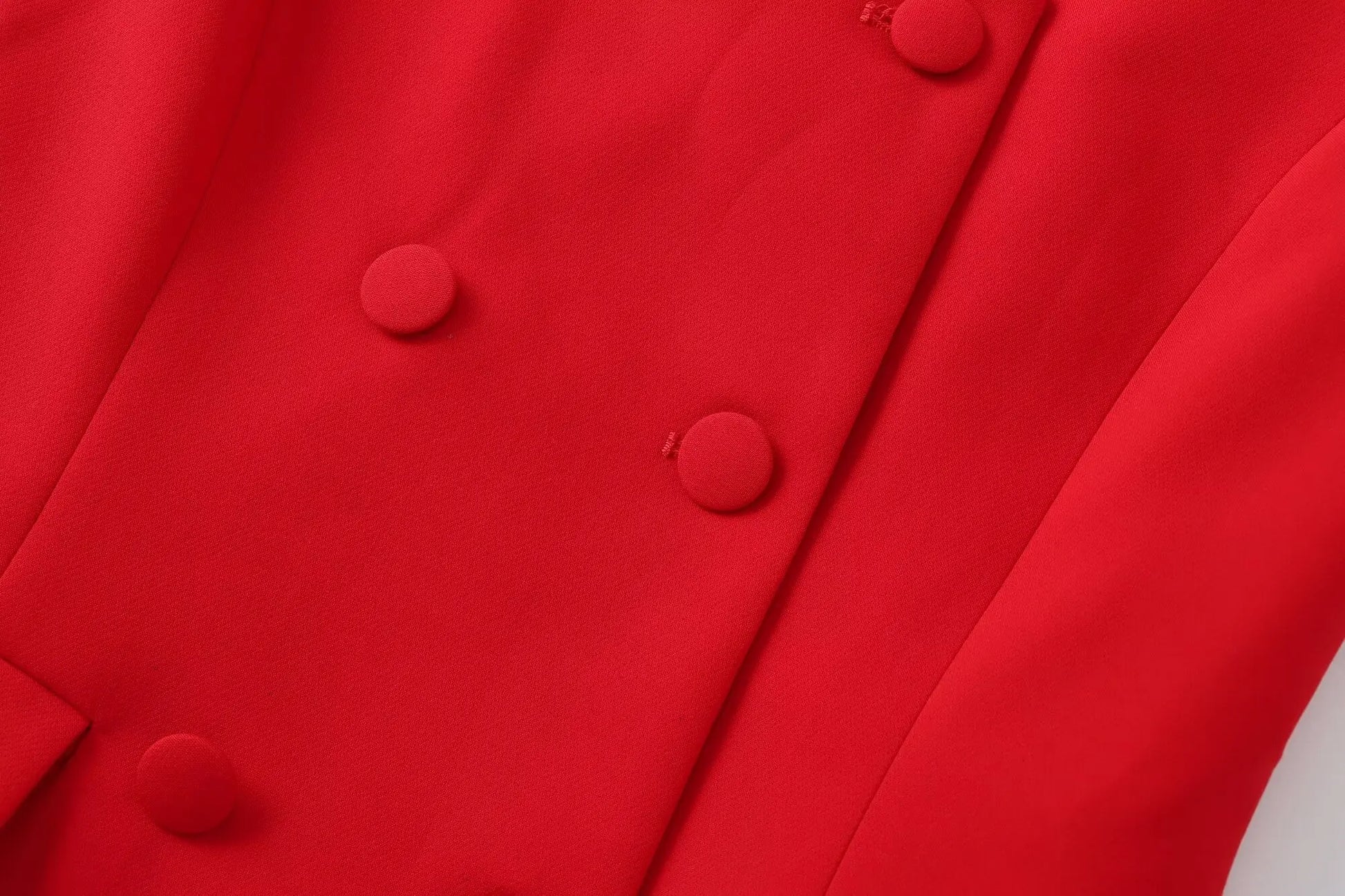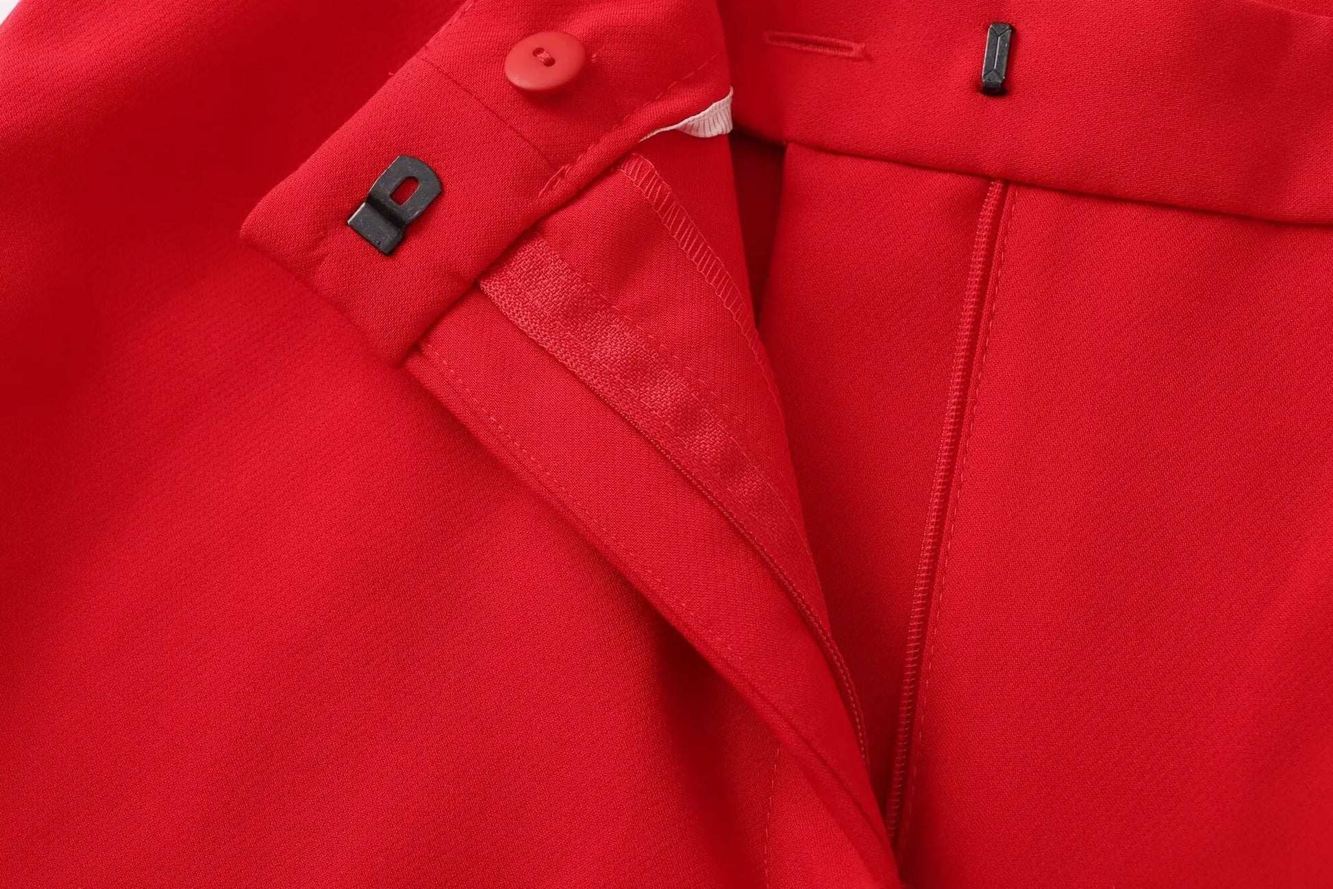 TRAFZA Women Fashion Suits Square Neck Sleeveless Double Breasted Waistcoat Top+Mid-Waist Slit Stralght Pants Female Summer Sets