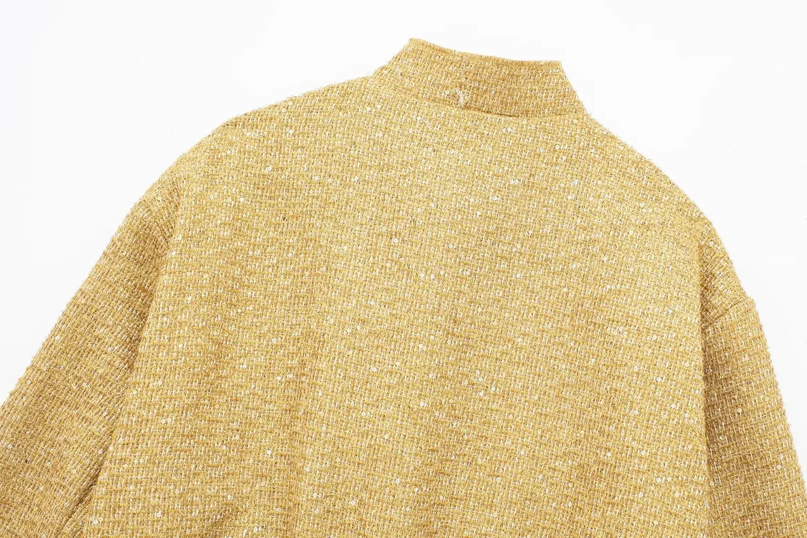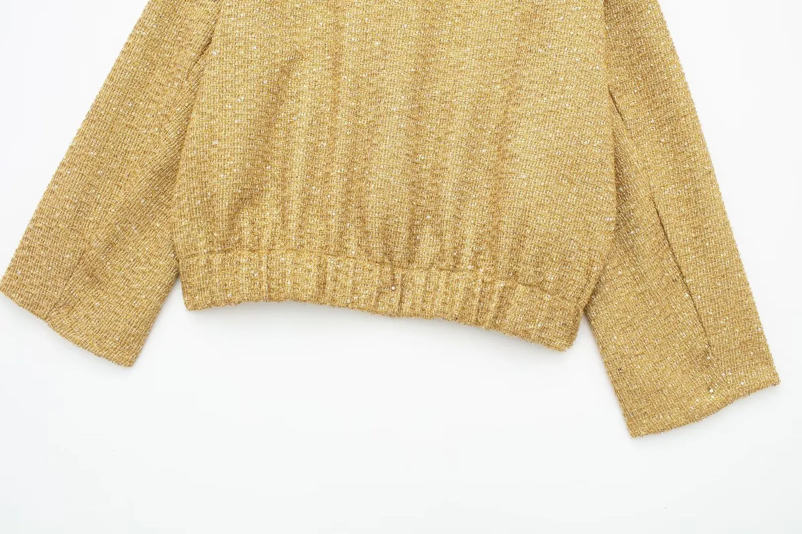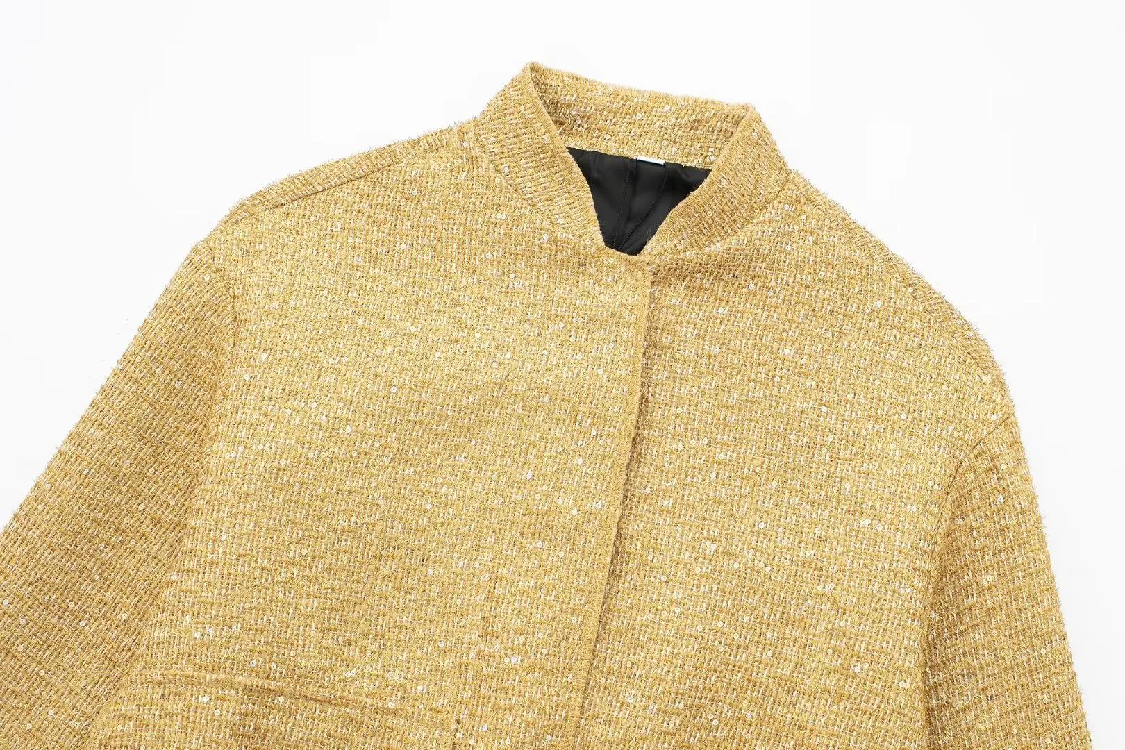 TRAFZA Women Trend Gold Sequin Decoration Loose Short Jacket Woman New Fashion Coat Versatile Warm Chic And Elegant Female Coats