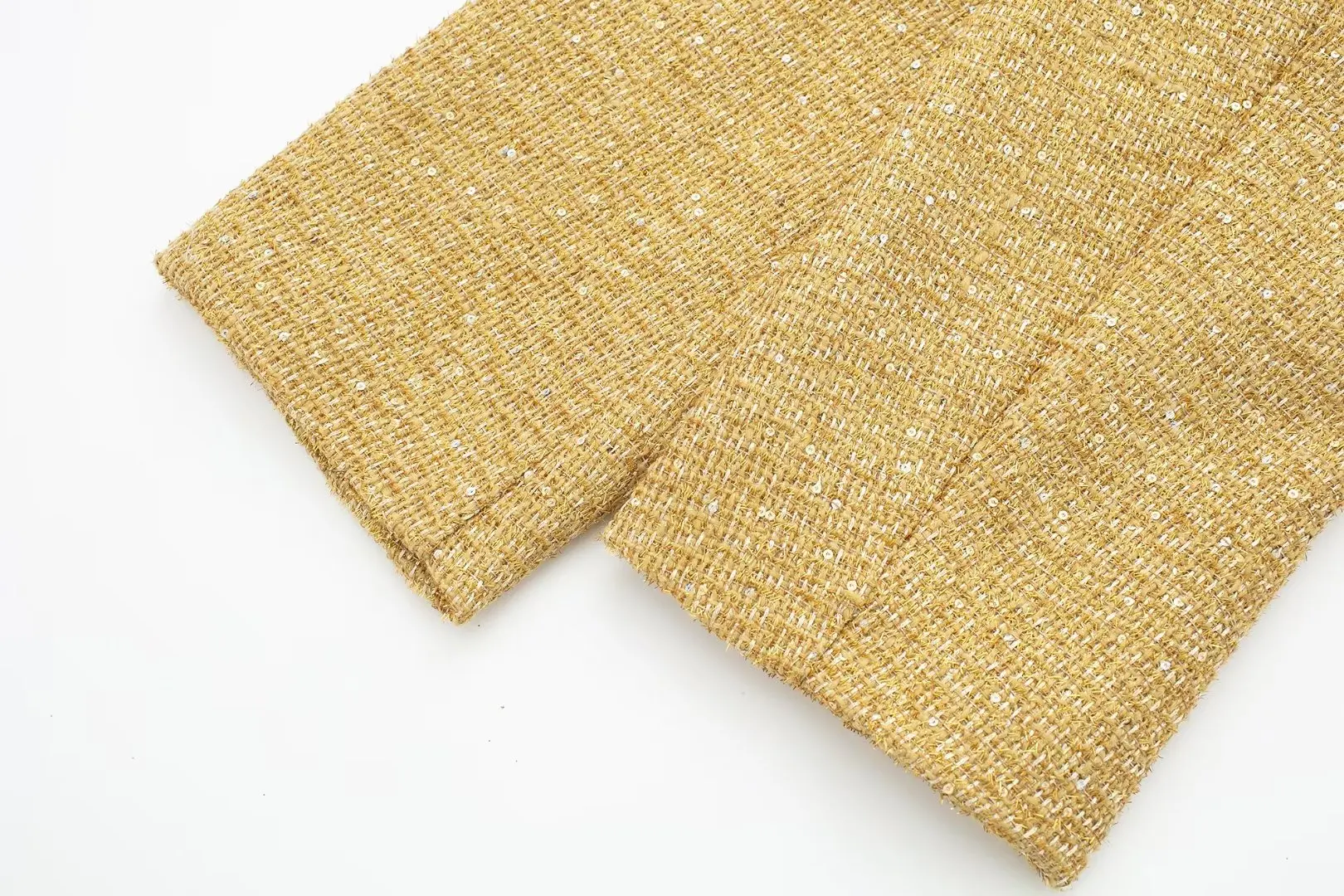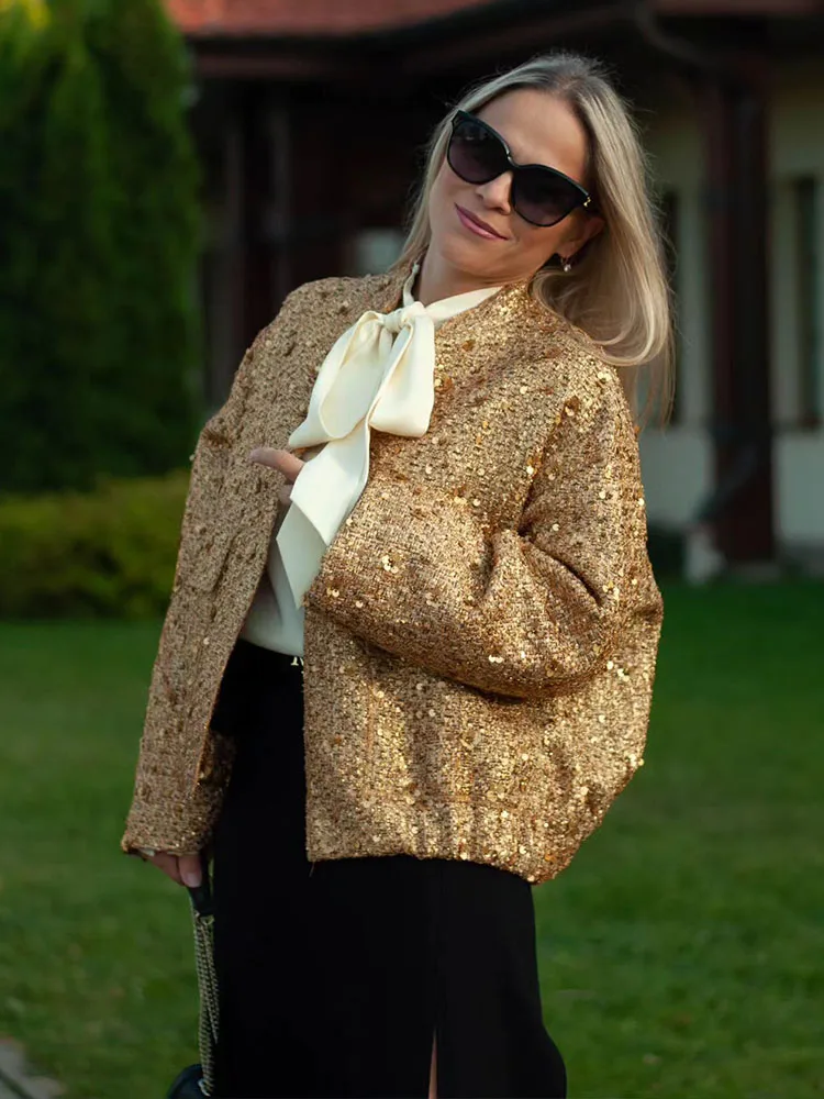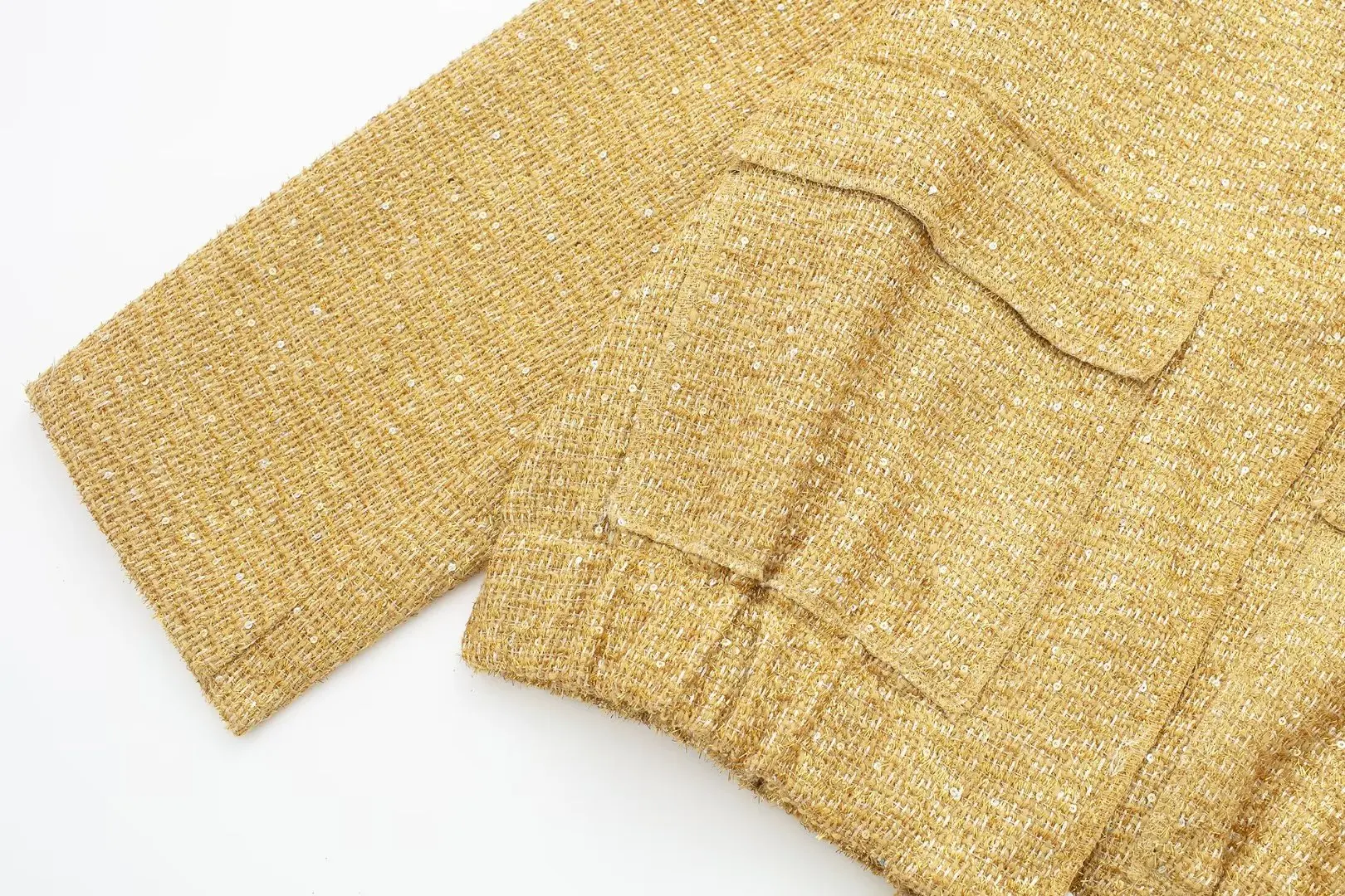 TRAFZA Women Trend Gold Sequin Decoration Loose Short Jacket Woman New Fashion Coat Versatile Warm Chic And Elegant Female Coats
