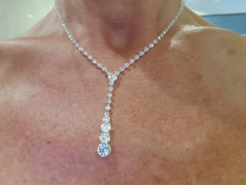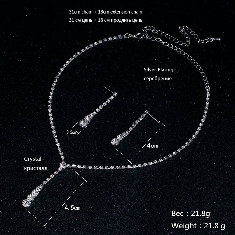 TREAZY Silver Plated Celebrity Style Drop Crystal Necklace Earrings Set Bridal Bridesmaid Wedding Jewelry Sets