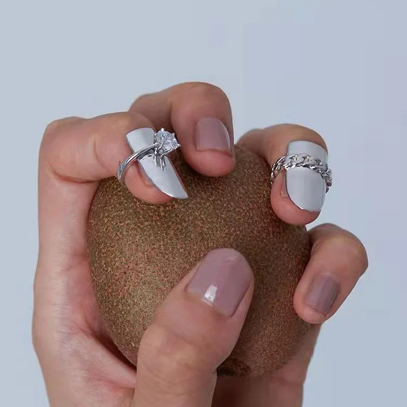 Trendy Geometric Rhinestone Adjustable Nail Ring Fashion Temperament Delicate Fingertip Ring Personality Jewelry Accessories
