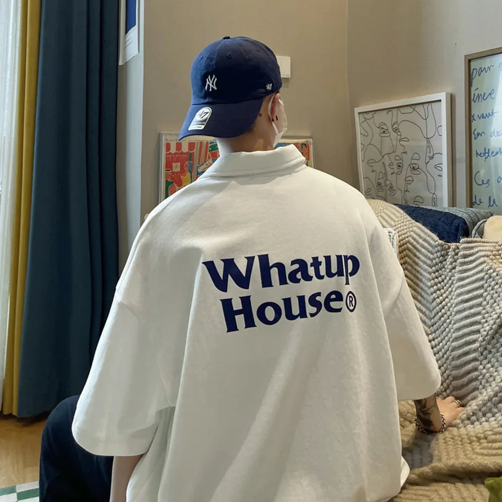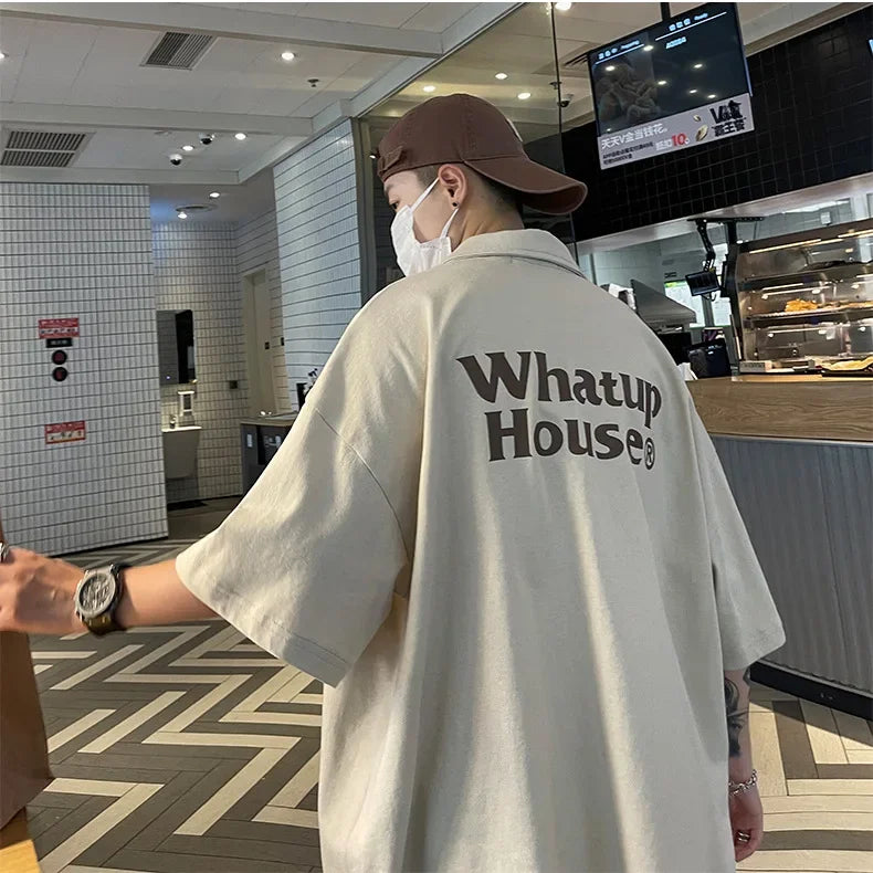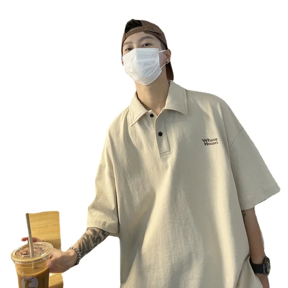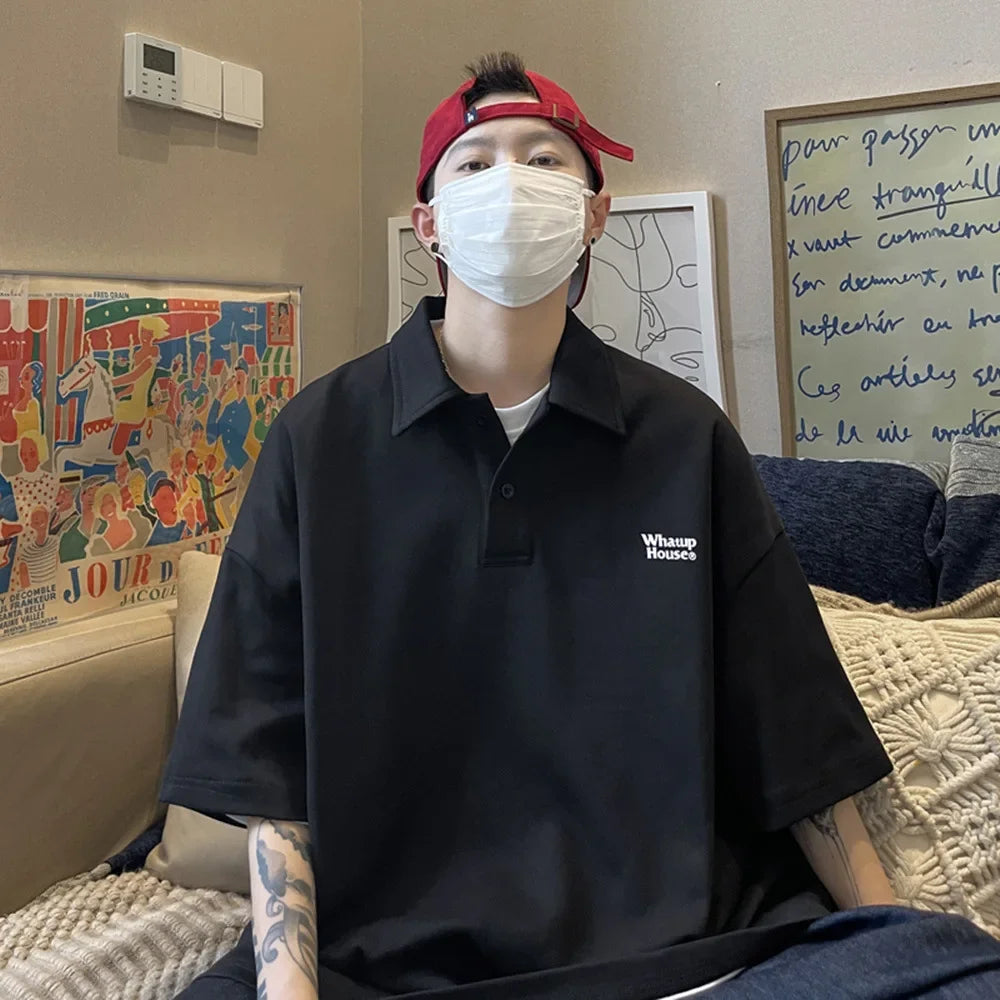 Trendy Polo Shirt Loose Fit Casual Men's Lapel Top Hk Style Hip Hop Short Sleeve T-shirt Fashion Outerwear