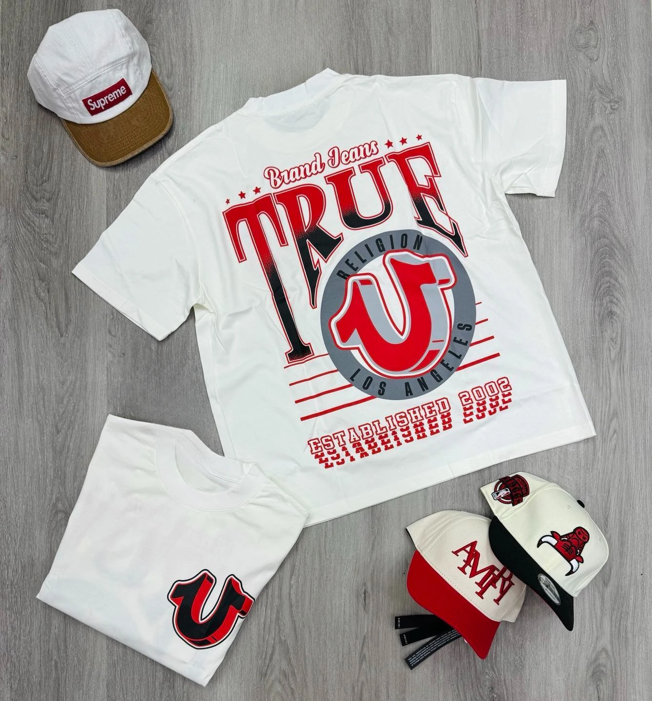 True Religion T-shirt Graphics T-shirt Men Cotton Graphic Crew Neck T-shirt Printed Short Sleeve Comfortable Breathable Top