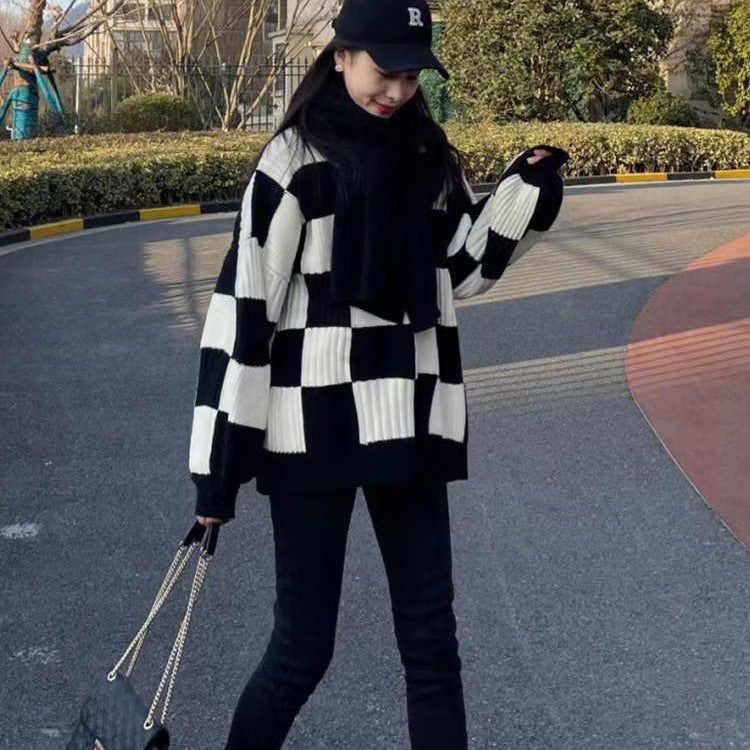 Color: plaid sweater, black shark pants, plaid sweater+black shark pants
