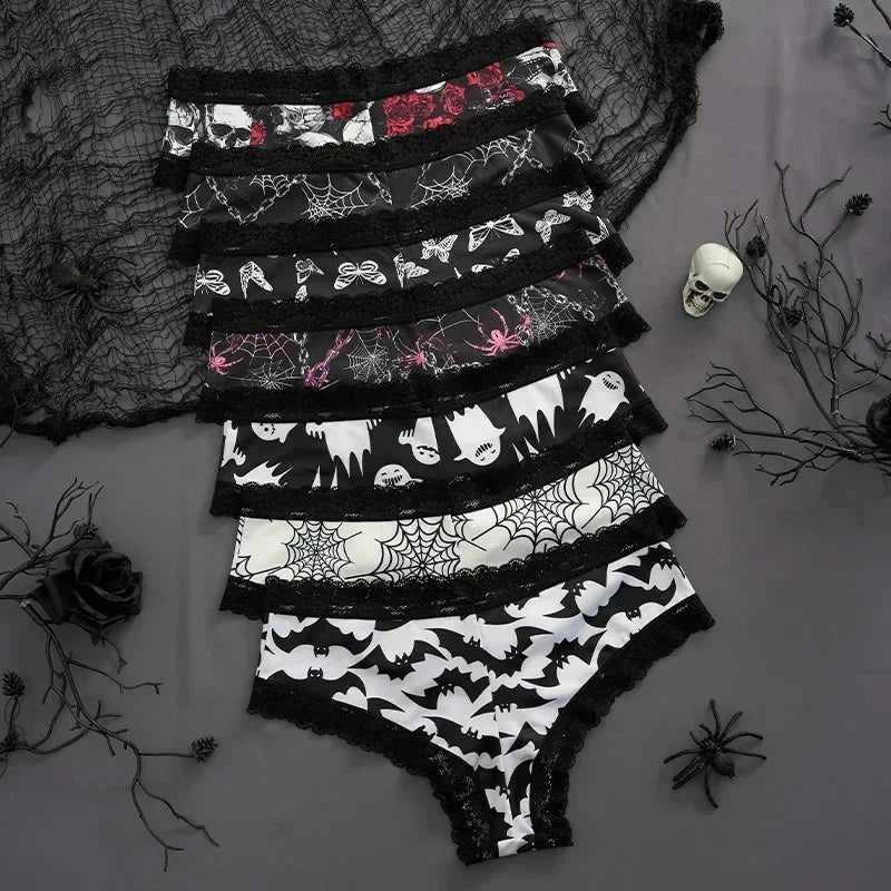 Underwear Women's Lace Edge Sexy Panties Gothic Style Lingerie Rose Skull Personalized Comfortable Breathable Triangle Pants