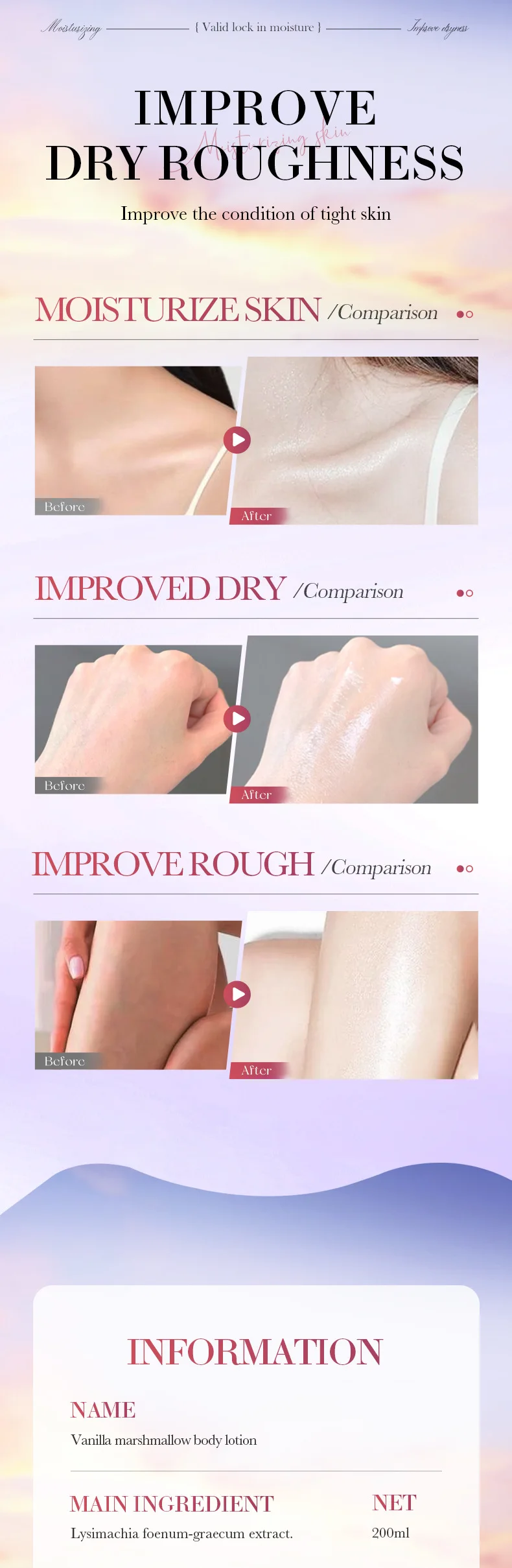 Vanilla Body Lotion 200ml Moisturizing And Nourishing for Autumn And Winter Cotton Candy Scented Body Milk