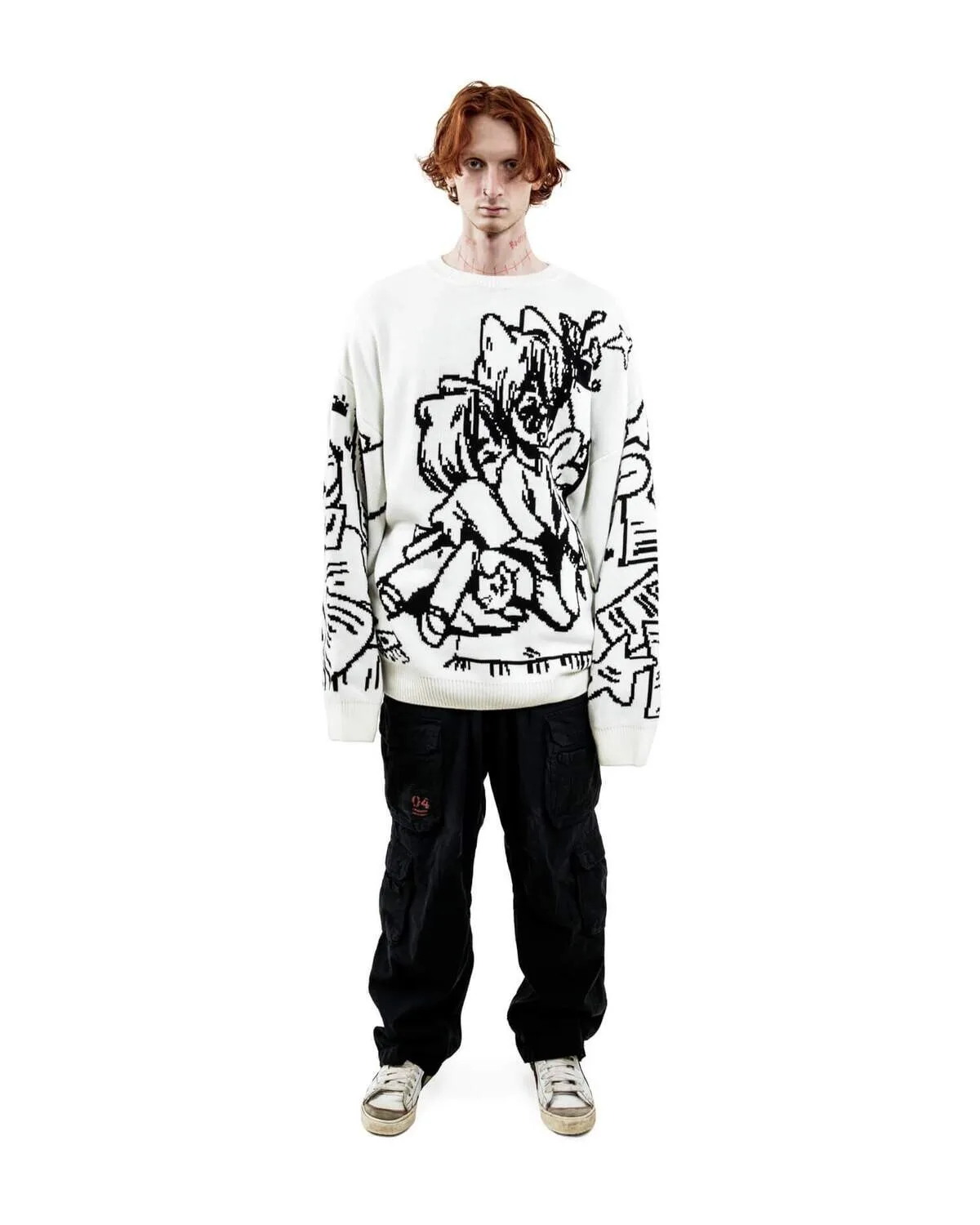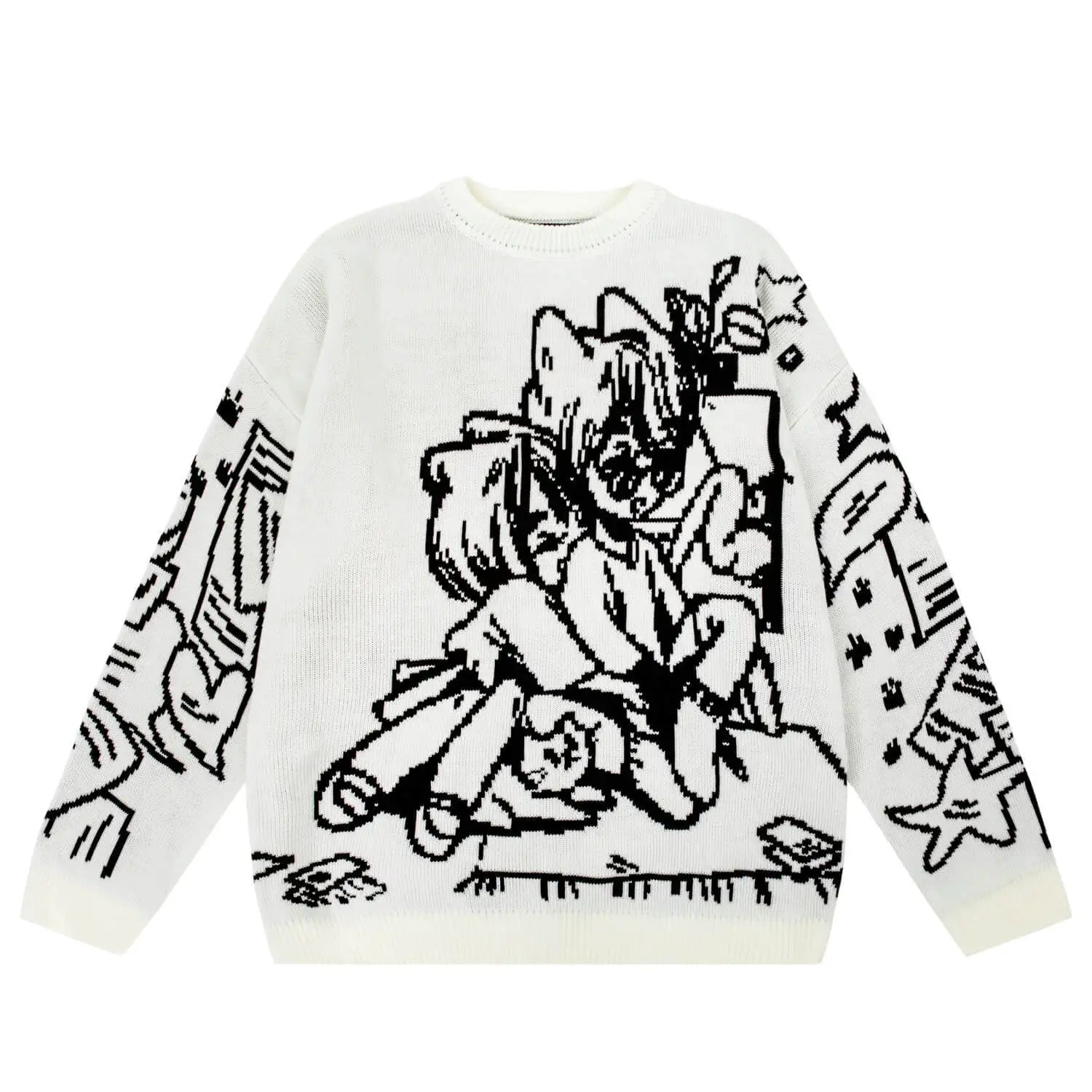 Vintage Cartoon Knitted Sweaters Men Casual Oversized Fashion Women Streetwear Tops Harajuku Pullover Y2k Aesthetic Clothes Goth