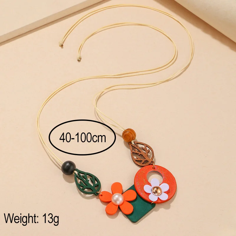 Vintage Ethnic Geometric Wooden Bib Necklace Women Wood Leaves Flower Collar Handmade Adjustable Choker Long Necklaces Pendants