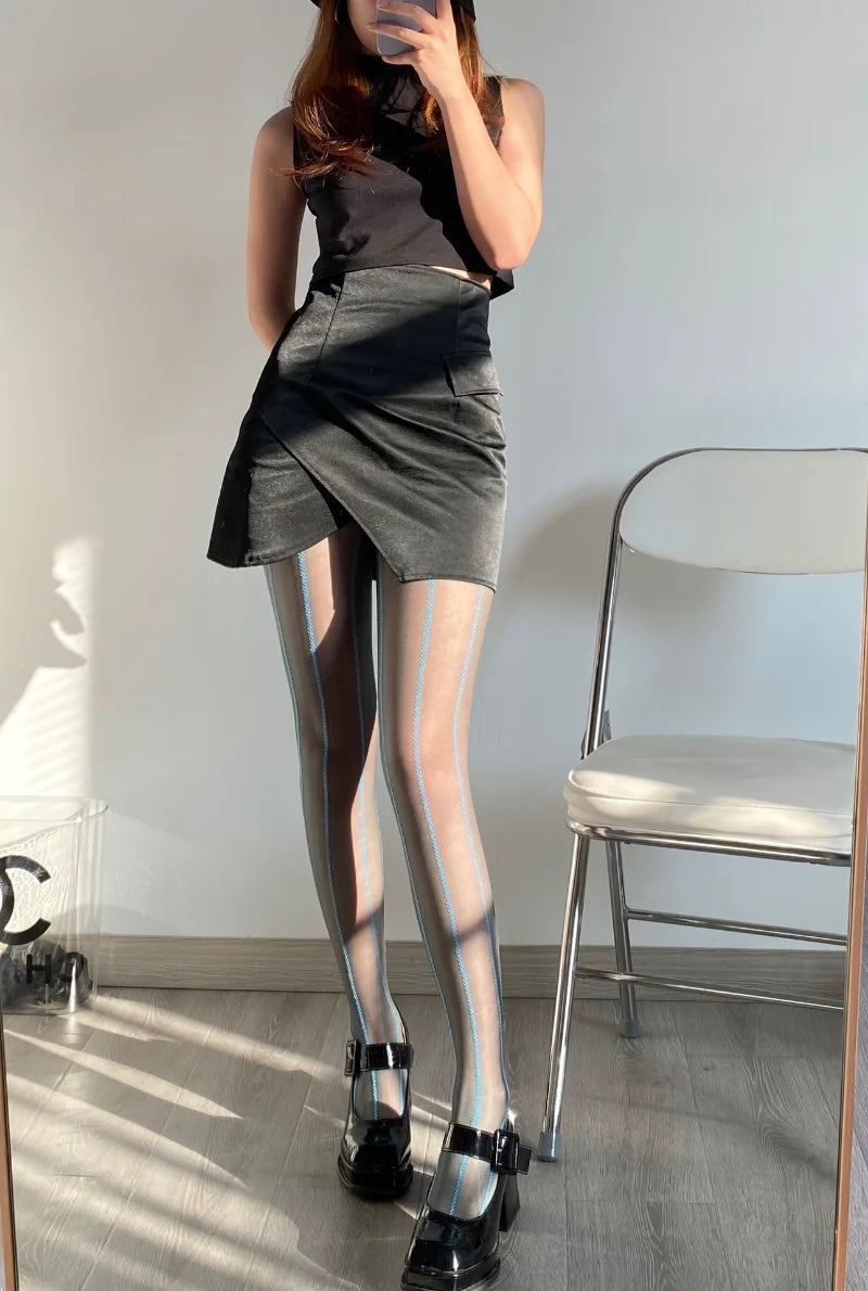 Vintage Sexy Black Vertical Stripes Pattern Stretchy Tights Pantyhose Women's Stockings Gothic Clothes Sexy Women's Underwear