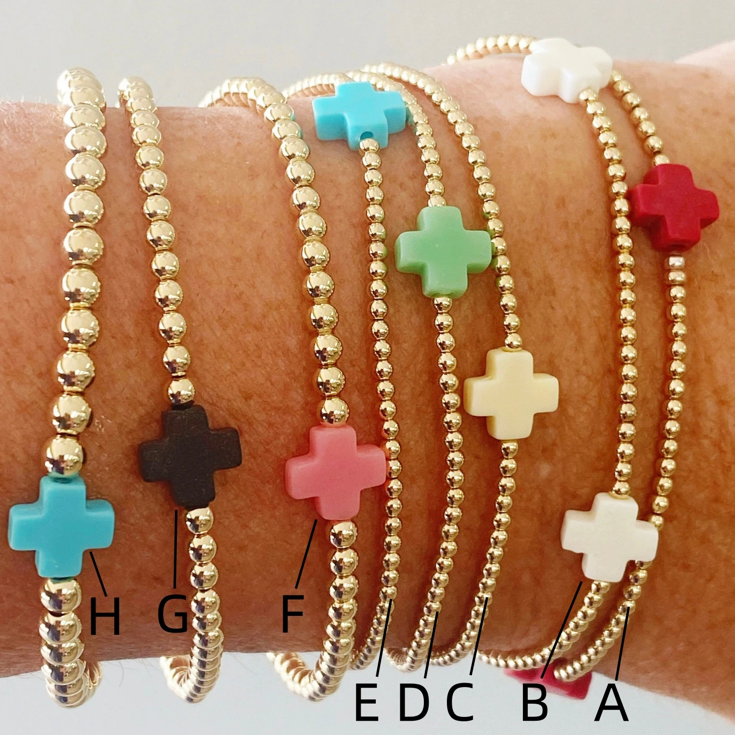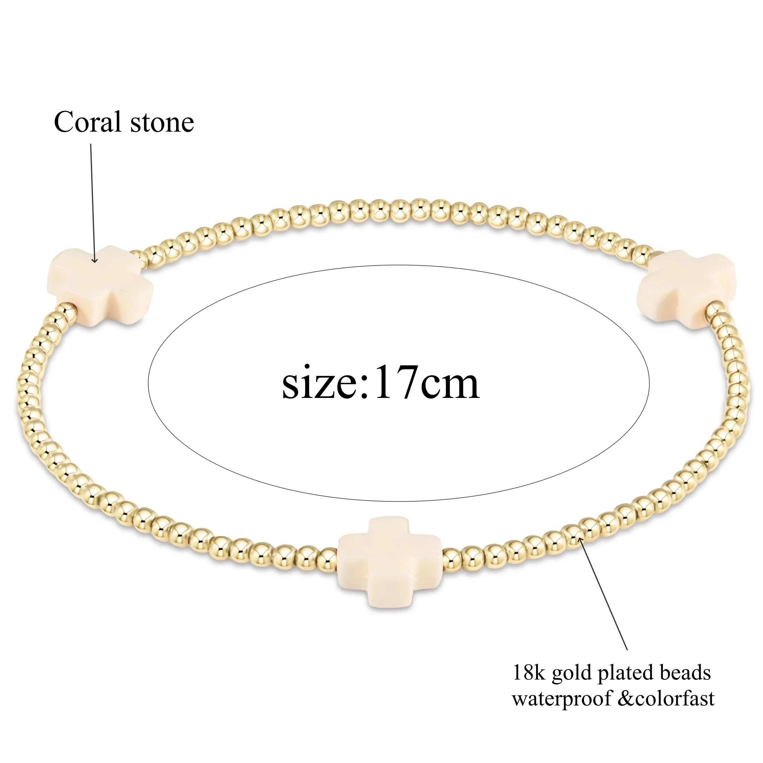 Vlen Cross Bracelet Stackable Gold Plated 18 K Waterproof Designe Bracelets for Women Jewelry Natural Stone Boho Summer Pulseras