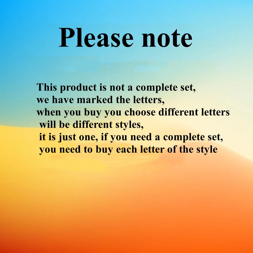 This product is not a complete set, we have marked the letters, when you buy you choose different letters will be different styles, it is just one, if you need a complete set, you need to buy each letter of the style
