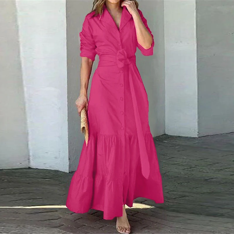 VONDA Plus Size 5XL Long Sleeve Shirt Dress Elegant Women Ruffled Sundress Buttons Solid Color Casual Lapel Belted Party Vestido