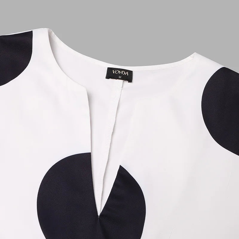 VONDA Plus Size 5XL Women Dress 2024 Summer Bohemian Polka Dot Maxi Long Dress V Neck Party Sundress Vestido Beach Robe Elegant