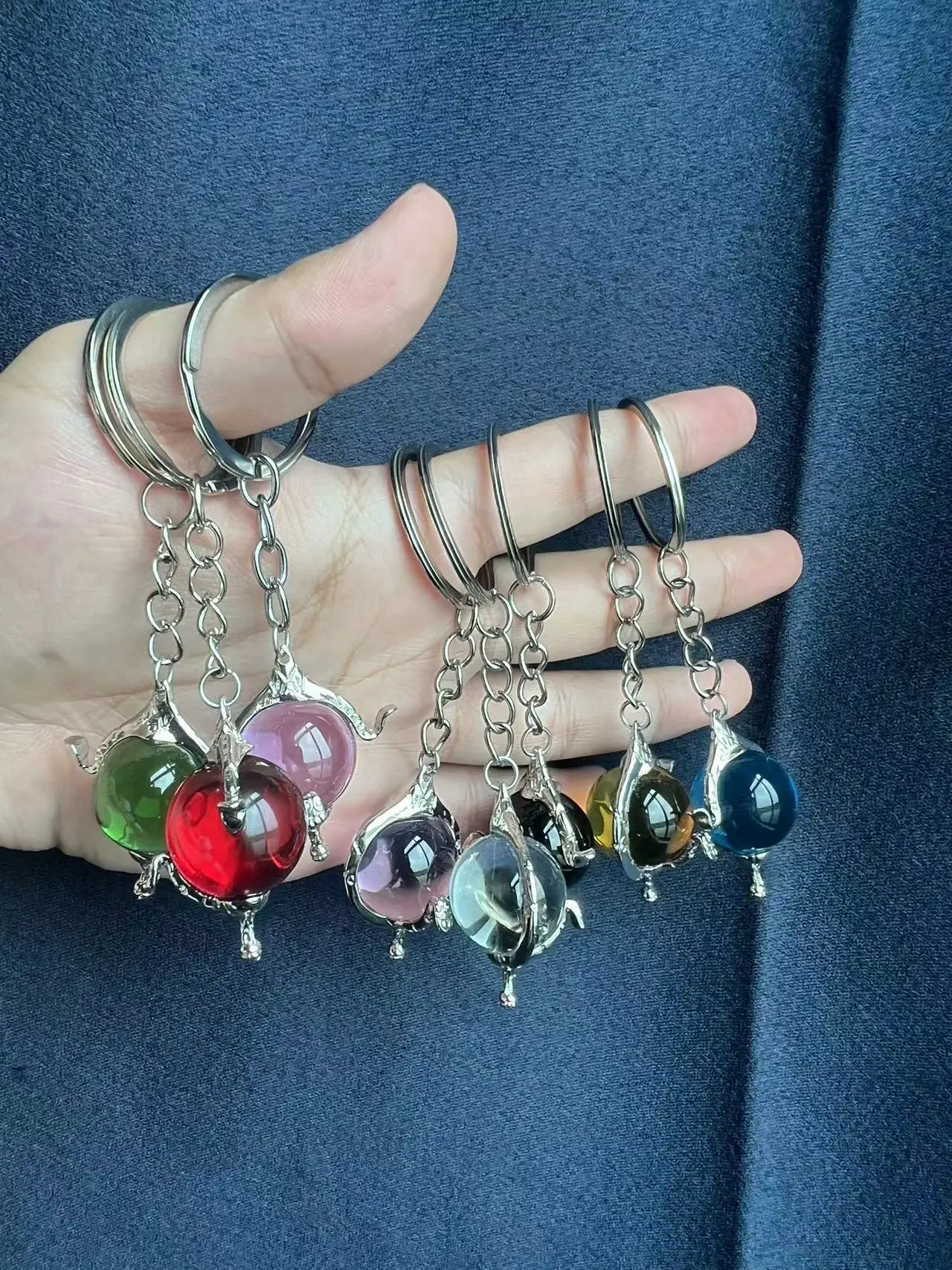 W.I.T.C.H. Color Crystal Heart of Kandrakar Keychain Exquisite Pattern Carved Crystal Ball Pendant Chain Magic Elf Same Jewelry