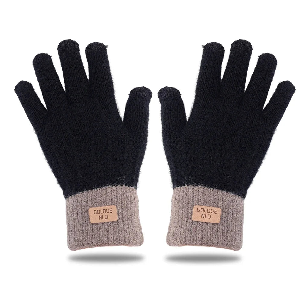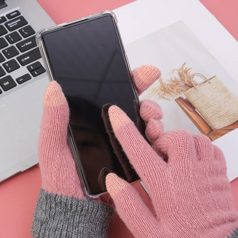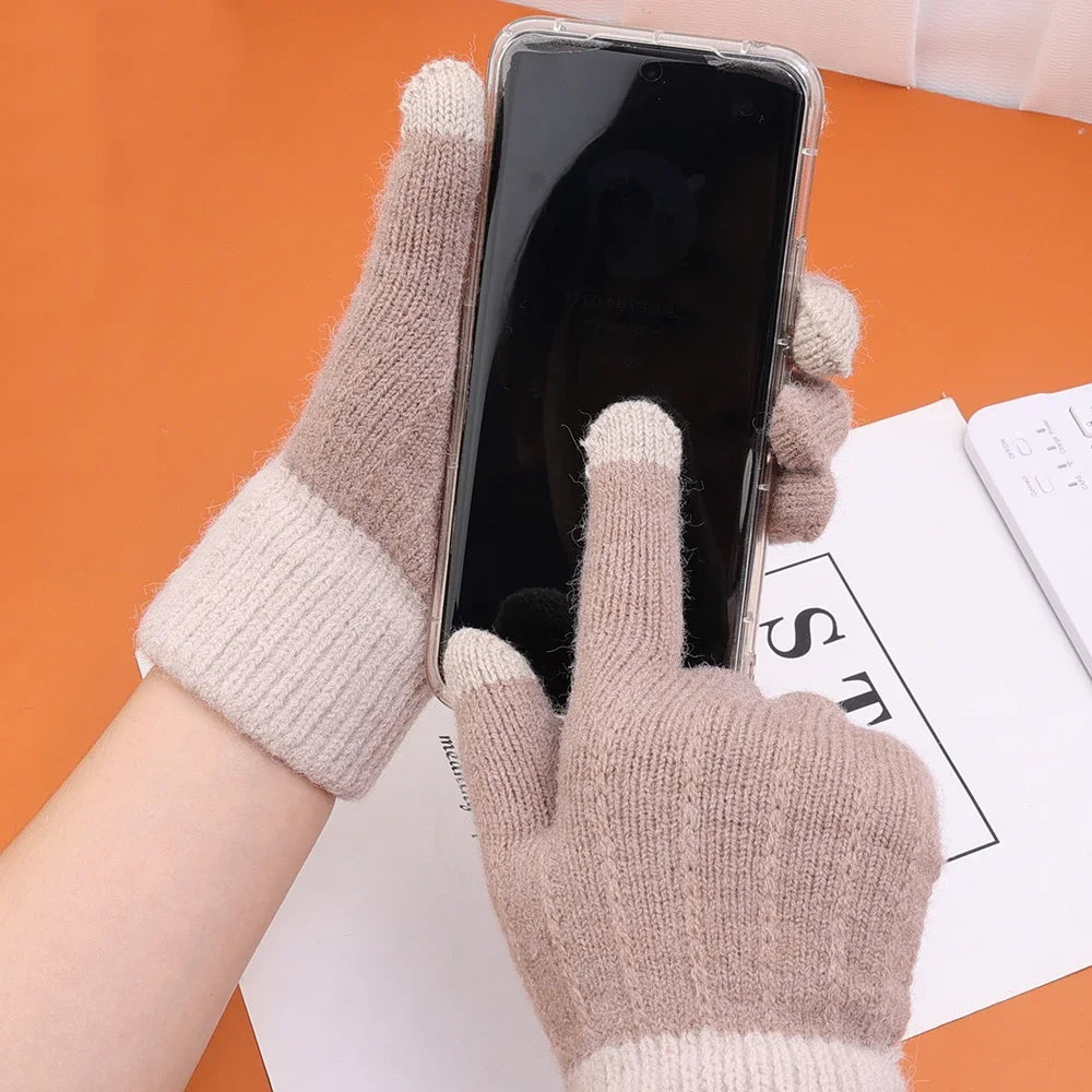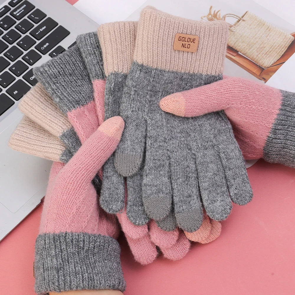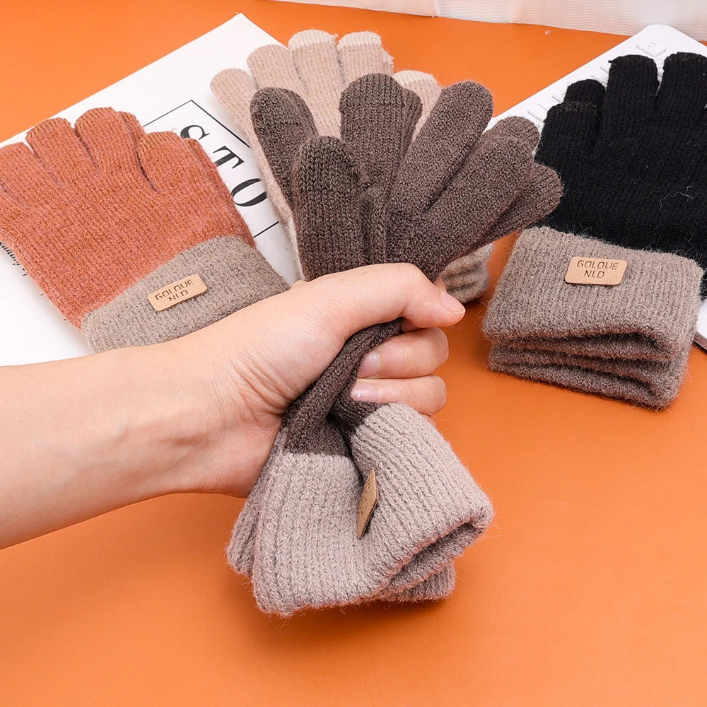 Warm Thick Plush Knitted Gloves Winter Touchscreen Plush Gloves Woman Thickening Fleece Thickened Cycling Driving Skiing Gloves
