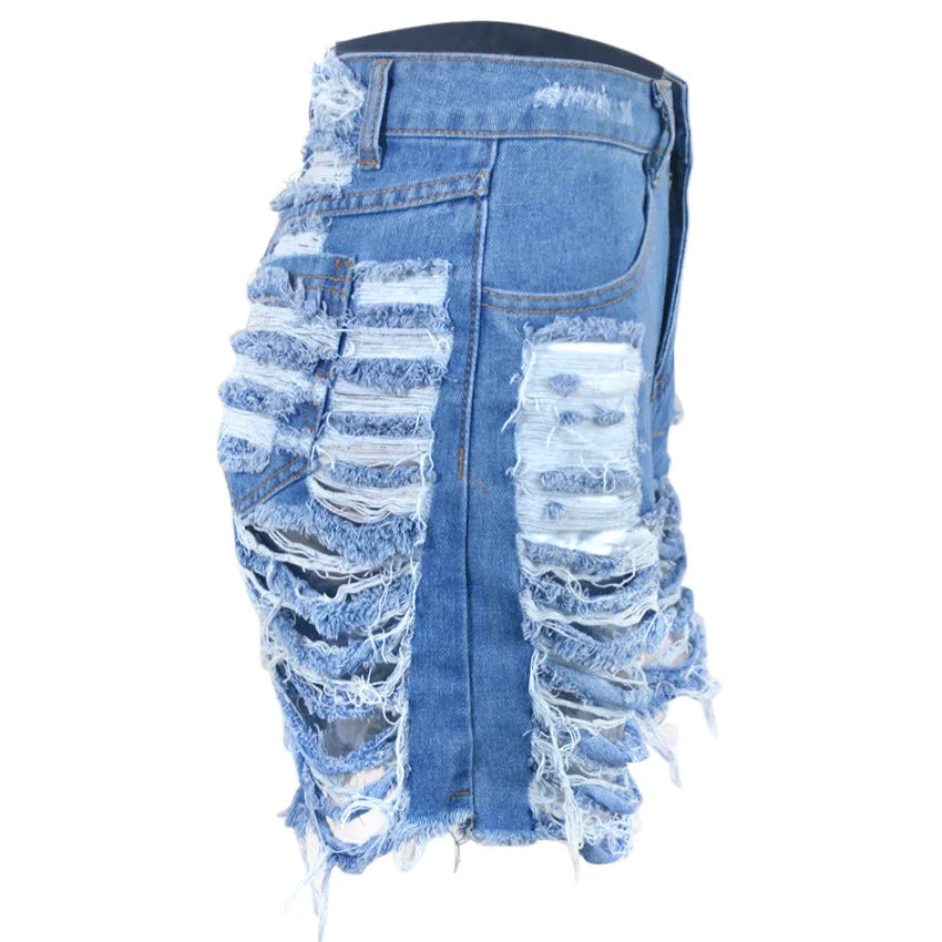 Waterarea S-5XL Women Summer High Waist Zipper Fly Hollow Out Sexy Hole Denim Shorts Casual Tassel Hem Short Jeans