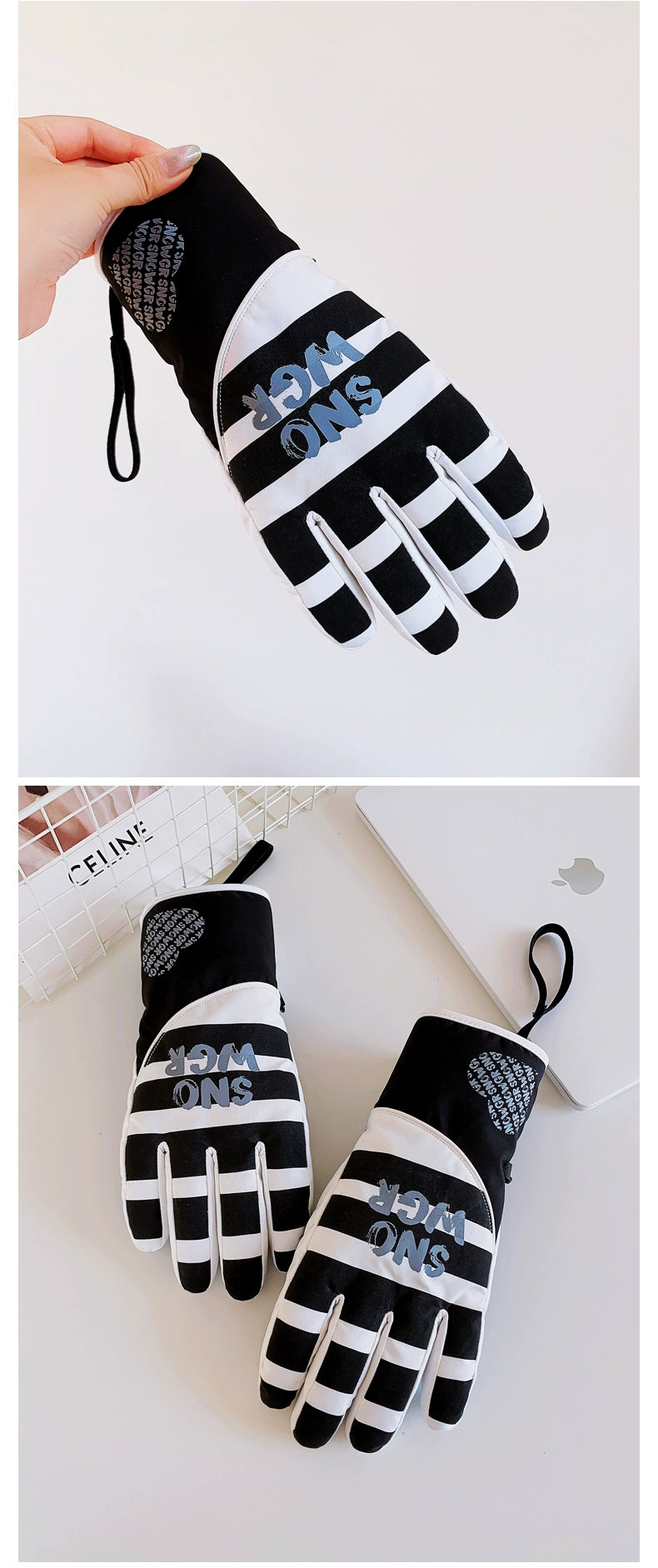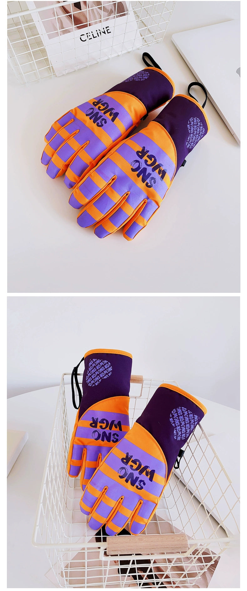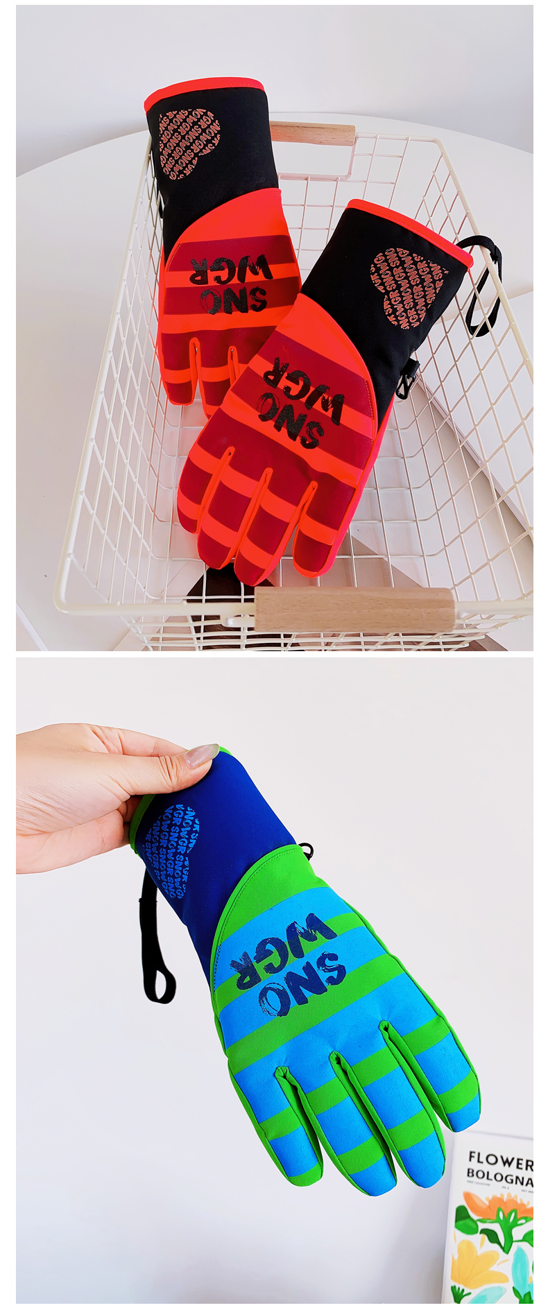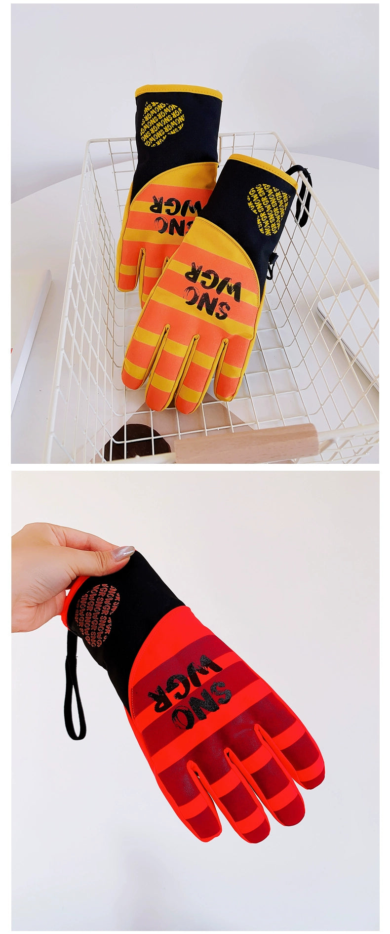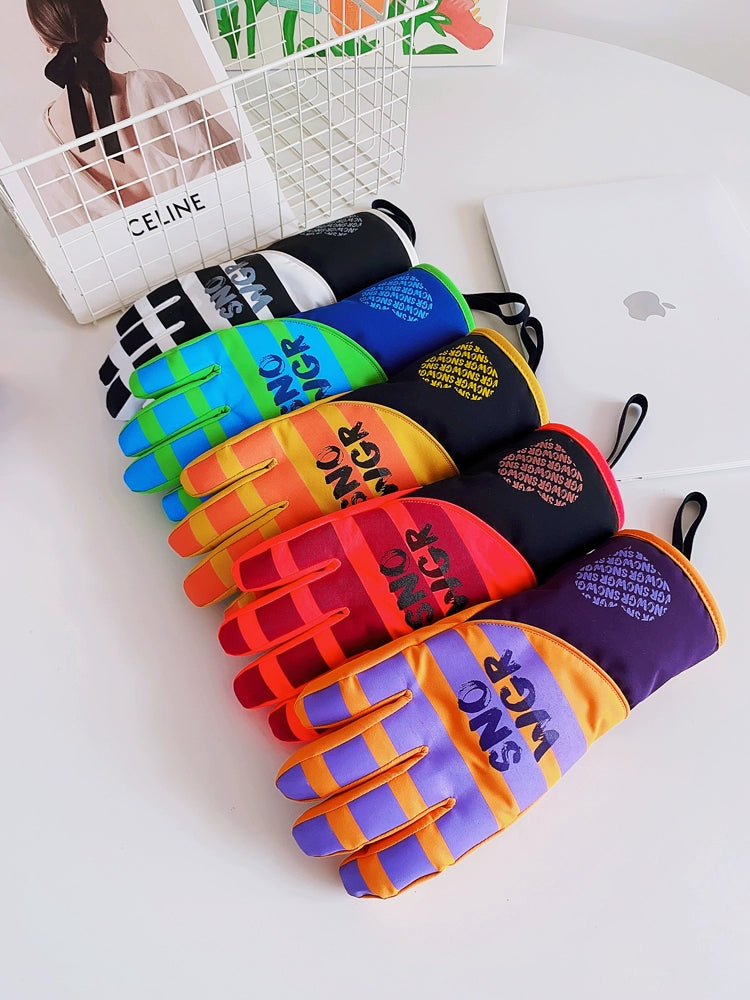 Waterproof Ski Gloves for Women Winter Fleece-Lined Thickened Cotton Students Warm-Keeping Cold-Proof Windproof Touch Screen Cycling Motorcycle Men