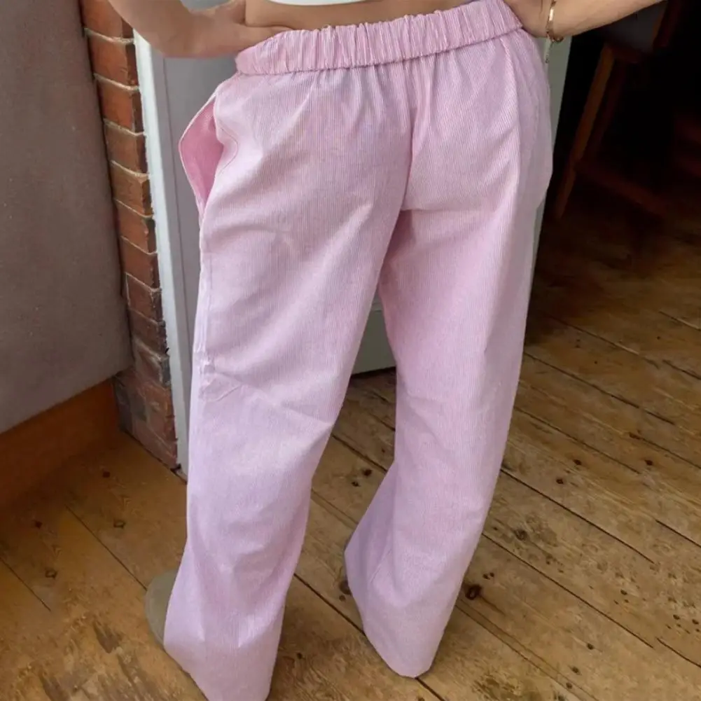 Wide Leg Loose Fit Pants Women Casual Pants Stylish Women's Casual Wide Leg Pants with Elastic Waist Pockets for Streetwear